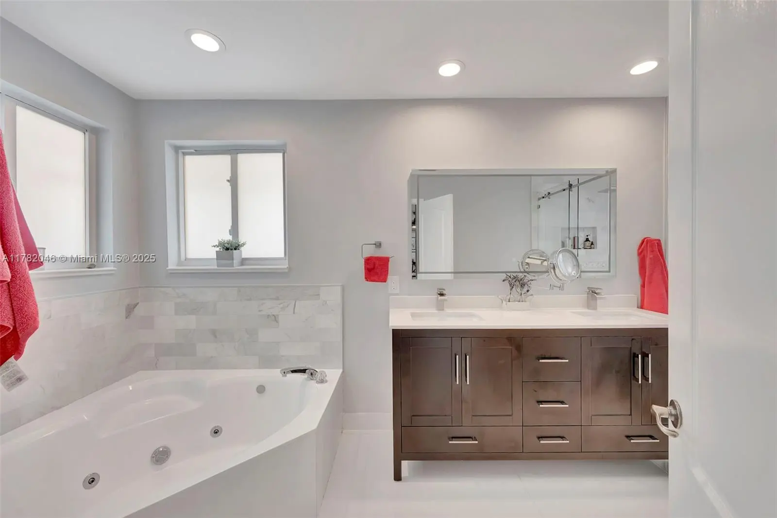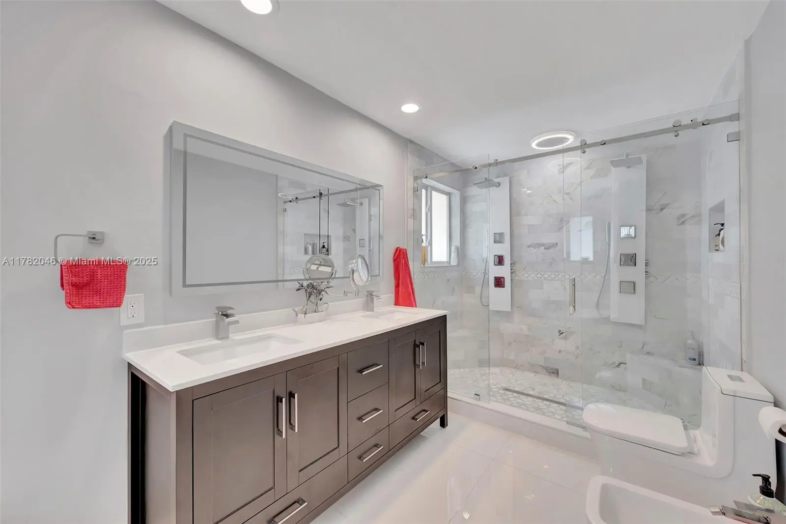 WOW! LOOK NO FURTHER! COMPLETELY RENOVATED LARGE POOL HOME. EVERYTHING WAS DONE AT THE HIGHEST LEVEL. FEATURING AN OPEN AND SPECIOUS LAYOUT, LOTS OF NATURAL LIGHT. NEW PORCELAINE FLOORING THROUGHOUT, HARD WOOD STAIRS. LUXURY KITCHEN WITH COMBINATON OF WOOD AND QUARTS COUNTER TOPS, FREE STANDING ISLAND, NEW STAINLESS STEEL APPLIANCES. LARGE PRIMARY BEDROOM WITH NEW MARBLE TILE IN BATHROOM. NEW TILE ROOF INSTALLED IN APRIL 2025. SMART HOME EQUIPPED WITH EV PLUG, SMART LIGHTING, SMART DOOR LOCK, SMART AC THERMOSTAT. TRIPLE IMPACT WINDOWS AND DOORS, PLANTATION WINDOW TREATMENTS. AMAZING BACK YARD, CLIMATE CONTROL POOL AND JACUZZI, NEW POOL AND PATIO TRAVERTINE DECK, FOR YOUR ENJOYMENT AND HOSPITALITY. A MUST SEE!