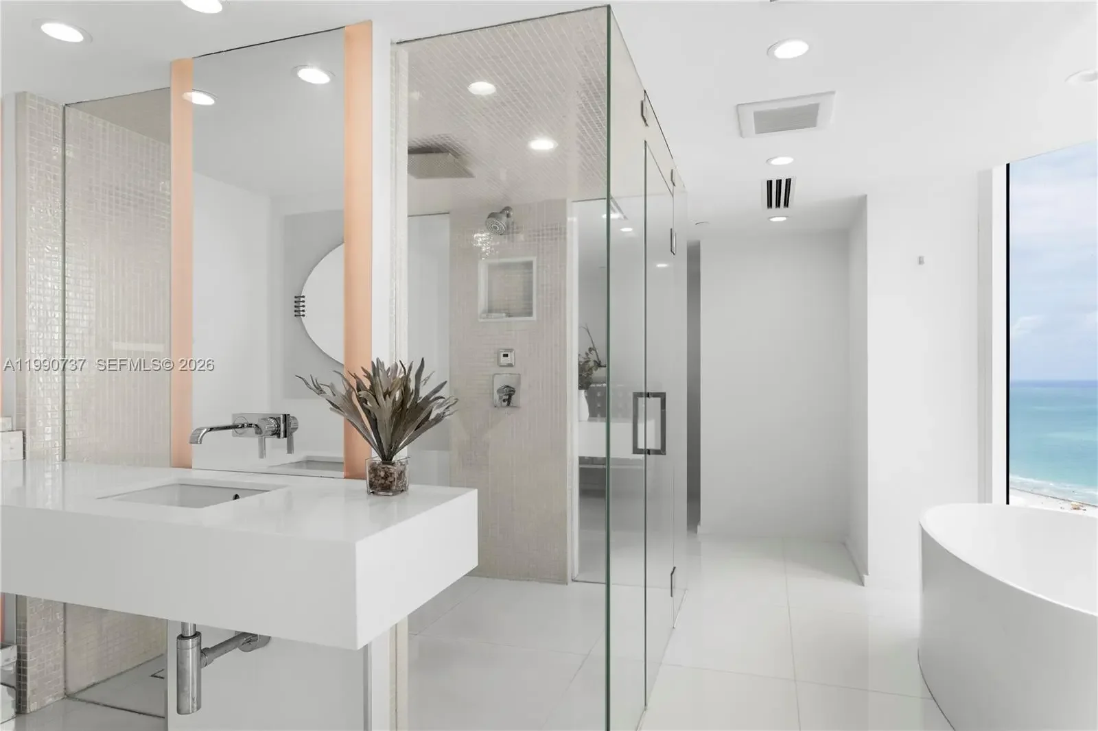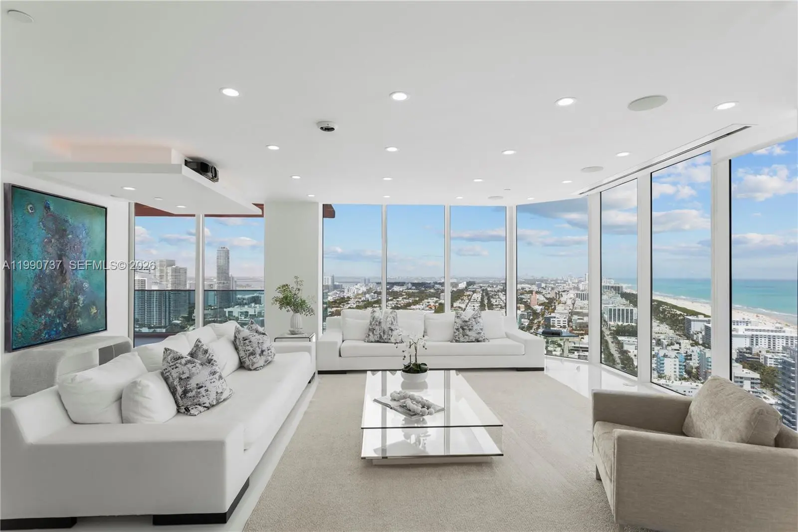 South Beach sky mansion commanding the entire private 34th floor, offering 4,723 SF (5,352 total) of refined living with exceptional privacy and breathtaking 270° panoramic views. Floor-to-ceiling glass walls showcase sweeping vistas of the ocean, bay, skyline, and park, extending seamlessly to four expansive terraces. A private elevator opens to beautifully reimagined interiors, where a grand open-concept living space flows into a bespoke Bulthaup chef’s kitchen with a sculptural waterfall island, custom cabinetry, and top-tier appliances. The residence features two luxurious primary suites, spa-inspired bathrooms, and no shared walls, creating a true sense of exclusivity. Residents enjoy Portofino’s $60M transformation, including a redesigned lobby, resort-style pools, spa, tennis courts, and fitness center. Ideally located in South of Fifth, moments from the beach and top dining. Recently renovated and furnished, this is a rare offering of scale, sophistication, and prestige.