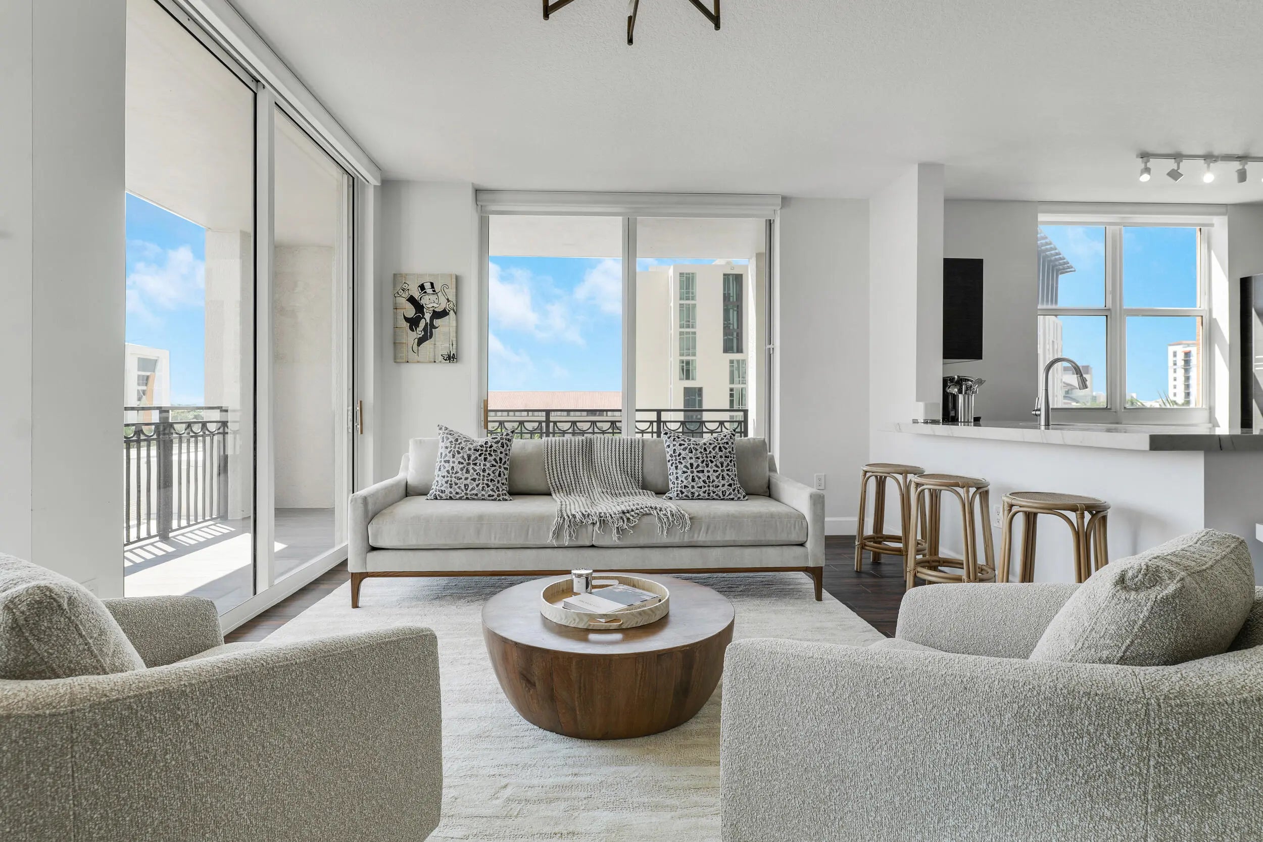 Experience elevated living in this pristine, light-filled 3-bedroom corner residence at CityPlace South Tower, one of Downtown West Palm Beach's premier full-service buildings. Thoughtfully designed for both comfort and style, this fully furnished,residence features wood-look porcelain tile, quartzite countertops, custom electric shades, impact windows, and a split floorplan A spacious wraparound terrace invites seamless indoor-outdoor living, while the rare same-floor covered parking space offers unmatched everyday convenience. CityPlace South Tower delivers a true luxury lifestyle with a full suite of resort-style amenities, including 24-hour concierge and valet services, a state-of-the-fitness center, elegant club room, summer kitchen pavilion, and a stunning pool and spa deck.