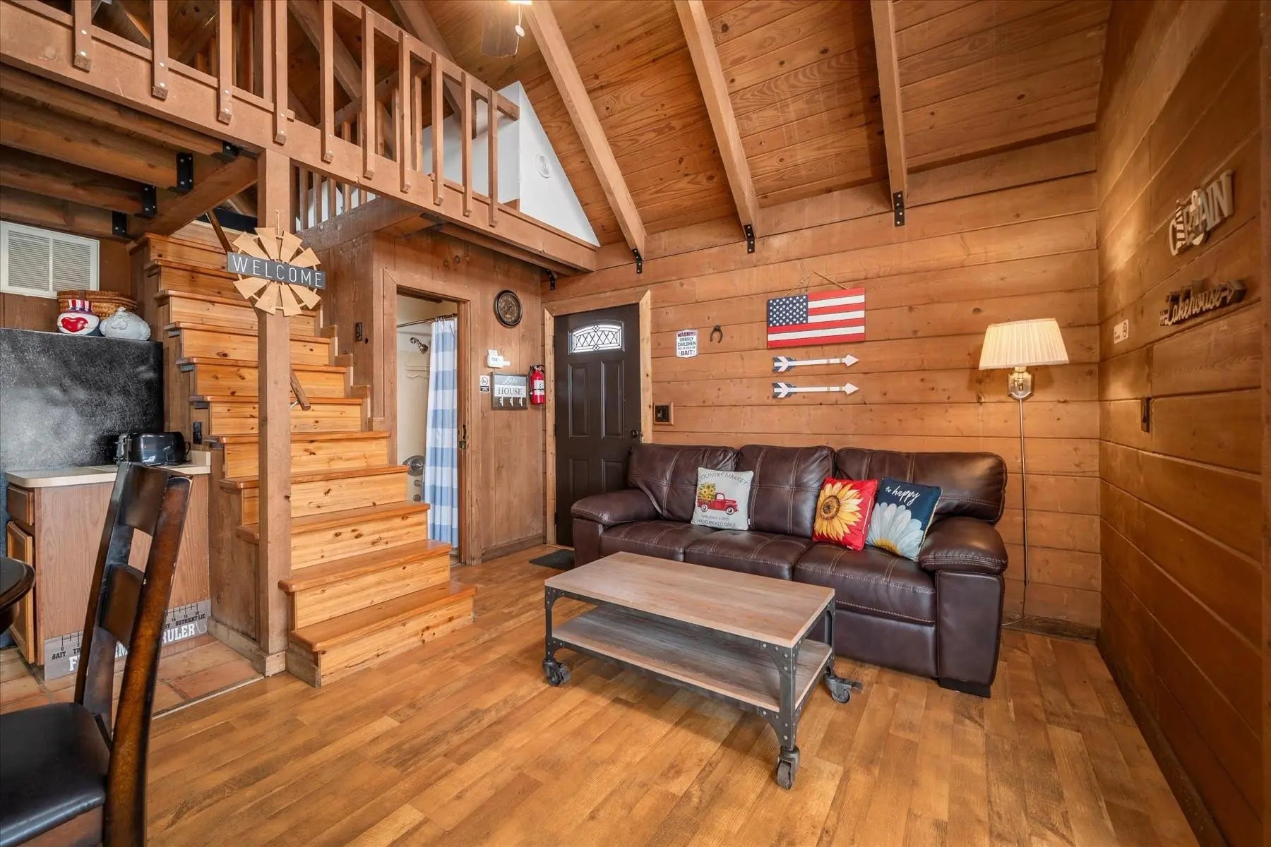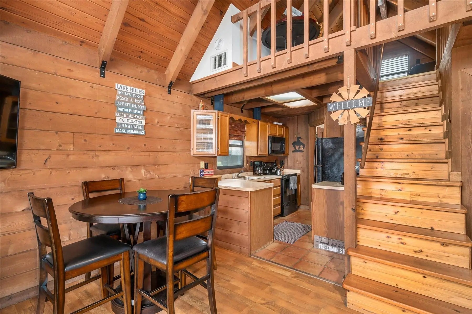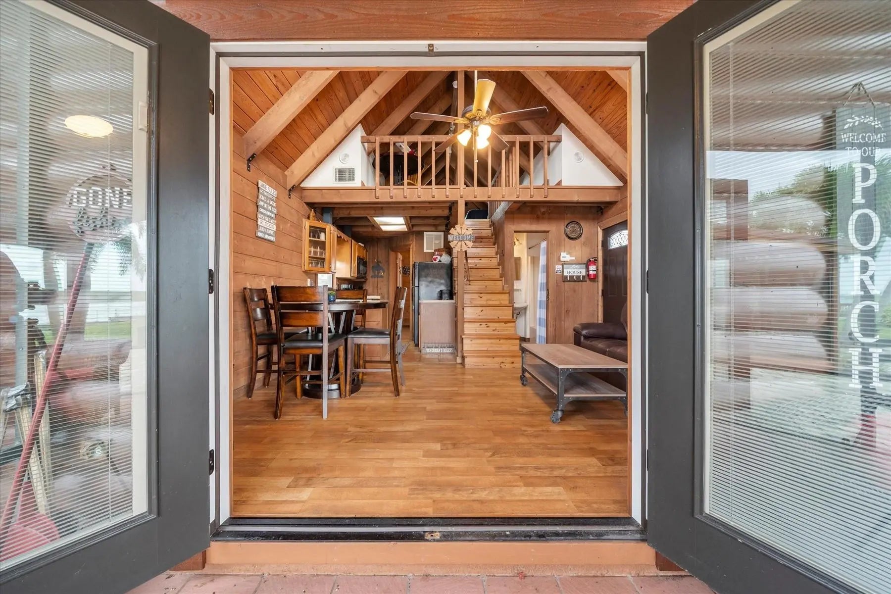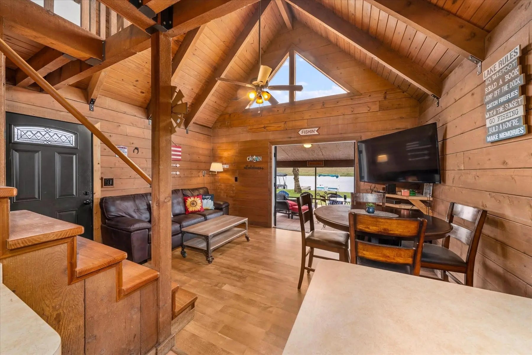 Whether you are escaping the hustle and bustle of the city or looking for a turn-key investment, look no further. This charming, authentic log cabin is situated on the water in a small fishing-focused community. The cabin offers two bedrooms, one on the main floor and a second in the loft, one full bathroom with tub and shower. A new water heater, newer roof, new water filtration system, newly paved driveway that fits two vehicles, and screened-in patio which over-looks breathtaking sunsets. The community features a heated pool with whirlpool, docks for boats (first-come, first-served), fish-cleaning station, community deck, fire pits, and community laundry room. The cabin is already rented for most of the upcoming winter season, which can be transferred to the new owner or canceled.