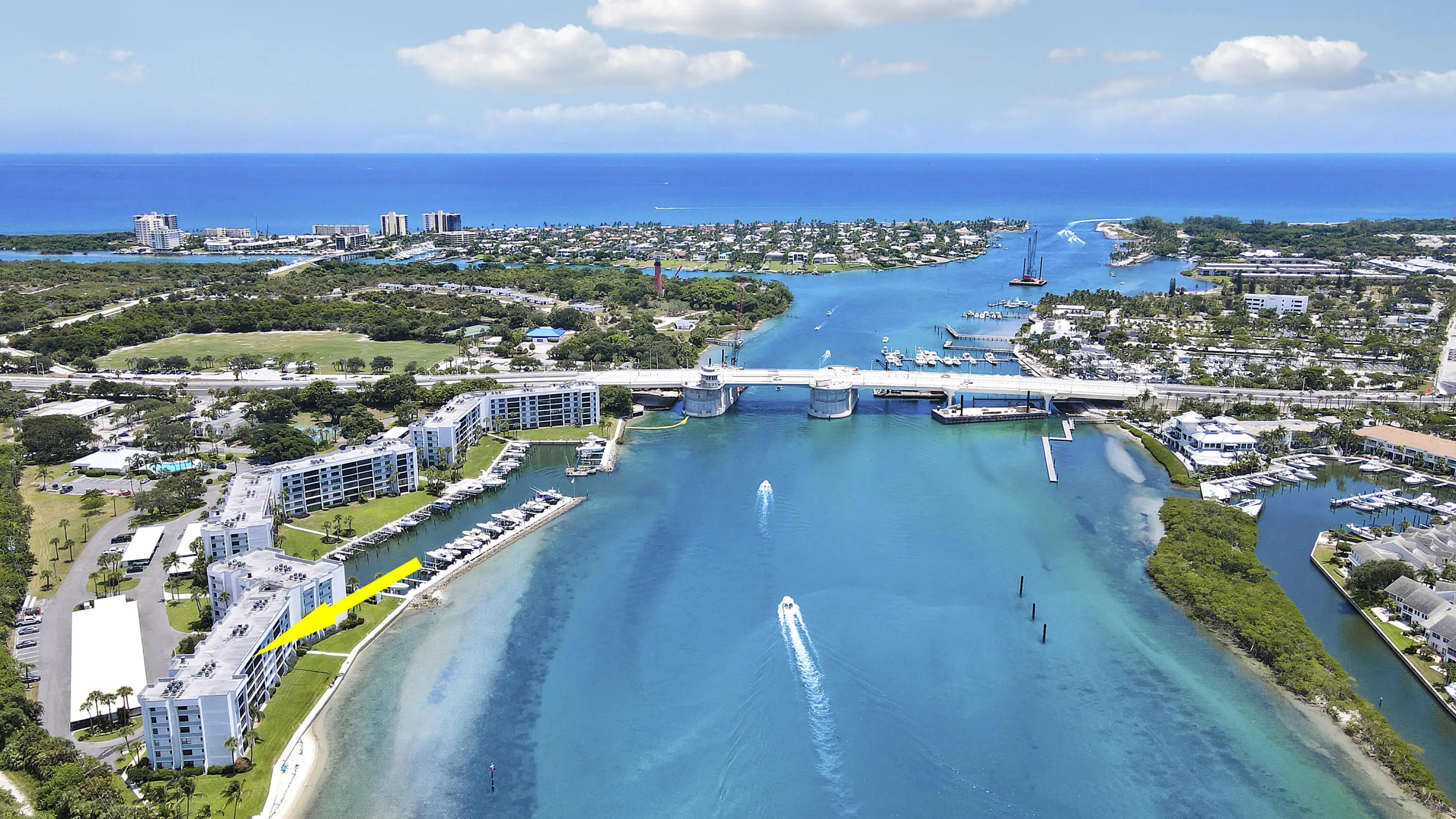 Amazing unobstructed views of blue water tides, ocean and river, sunrise and sunsets. Watch the dolphins and turtles and manatees swim by! THE BEST waterfront building in THE BEST waterfront community in Jupiter. Split Bedroom plan, Private marina with up to 40'+ dock spot available for rent or purchase, when available. Gated Entry; Carport Parking with 3' x 8' (+/-) Storage unit...plus extra storage on 6th floor storage unit. Private Tiki, Tennis, CLUB House & Community Pool and so much more. Second bedroom photos digital stage.
