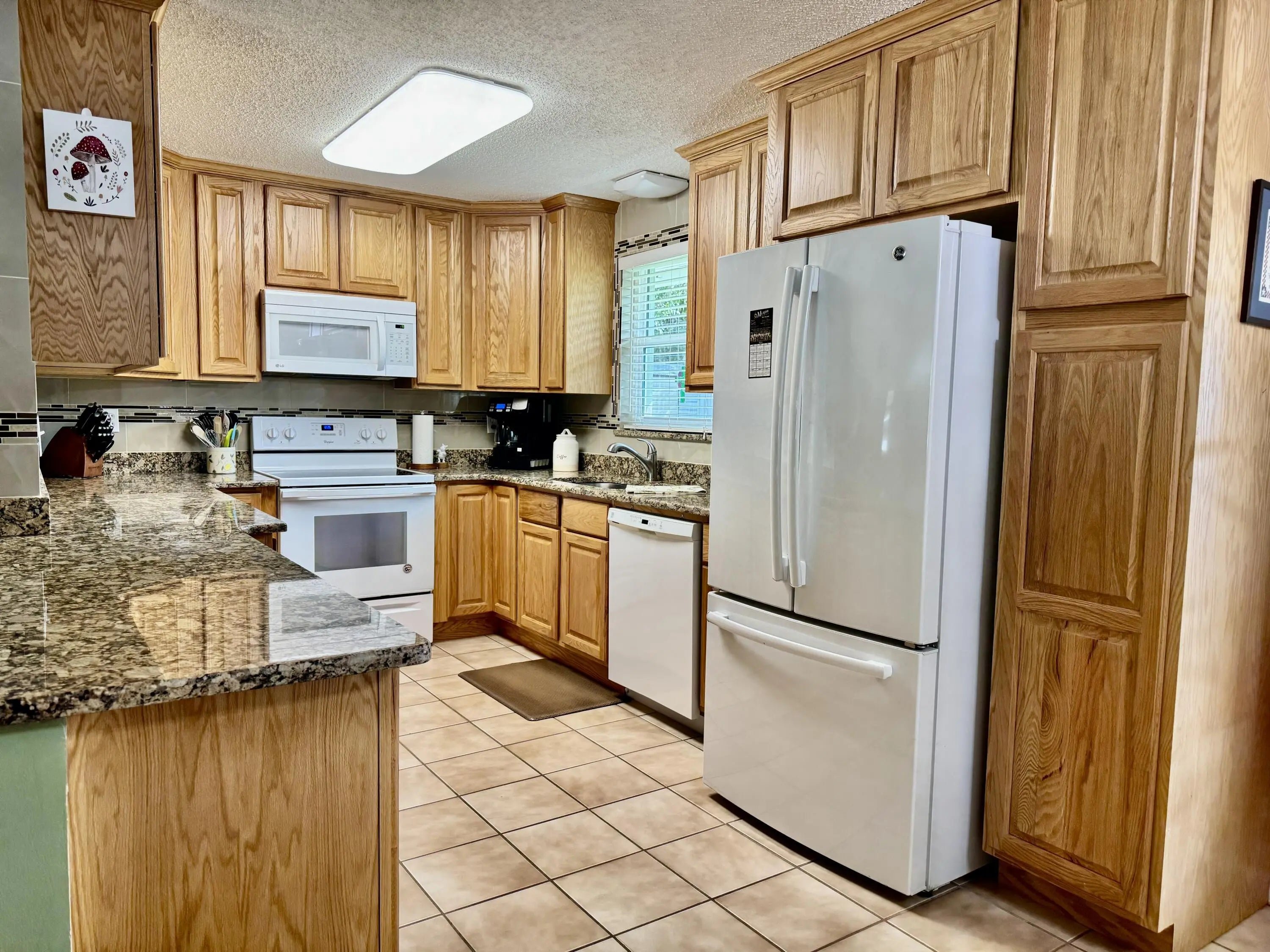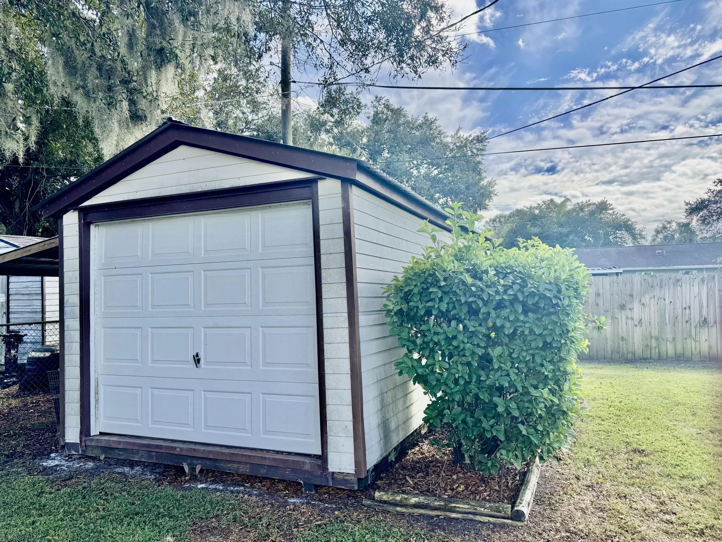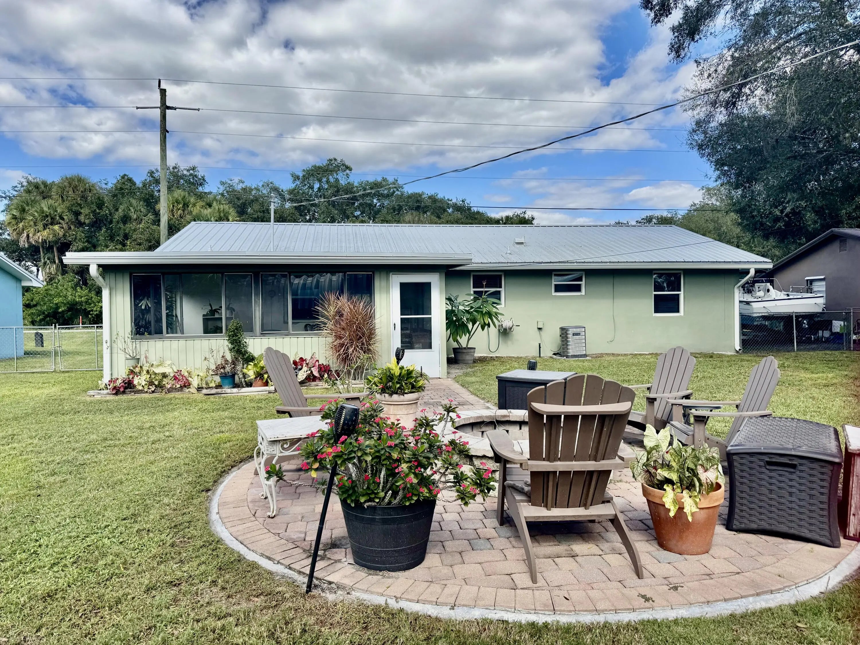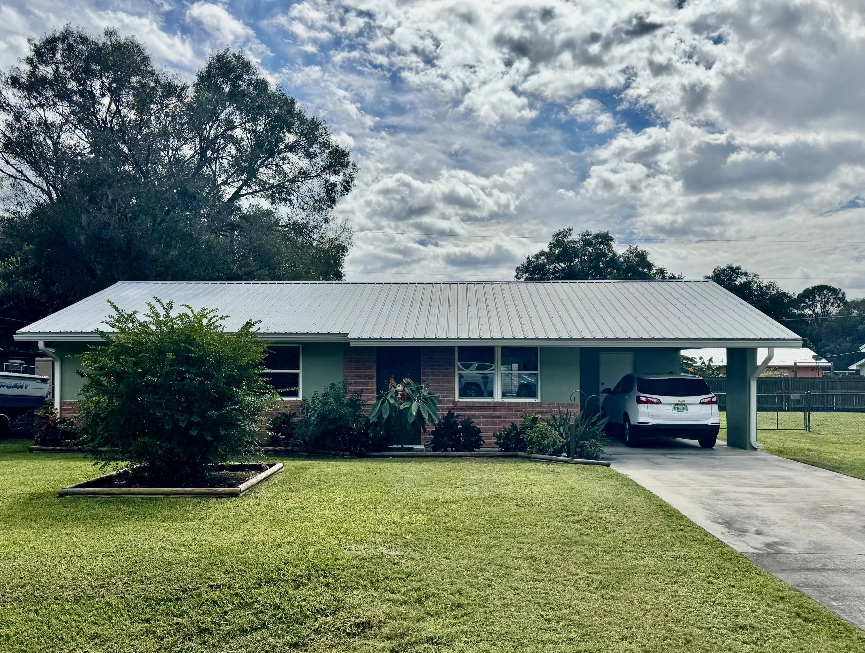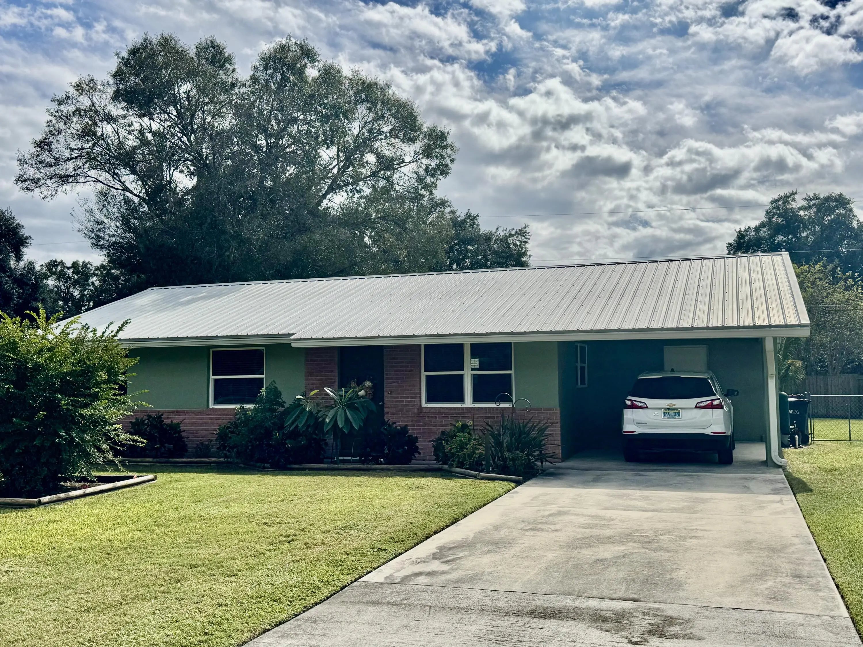 OAK PARK~Beautifully updated and polished! 3 Bd/ 1 Ba/ carport. CBS home. Open concept. Gorgeous kitchen, solid wood cabinets, granite countertops, pantry w/ pullout shelves, lazy Susan. New bath w/ full tiled shower. Utility room. 20x14 Florida room. FirePit with paver seating and walkway. 10x20 Shed, fenced yard. Metal roof, Impact windows, Well and irrigation. Initial sewer fee is paid. A HONEY of a HOME! Dimensions are approximate, must measure for exact