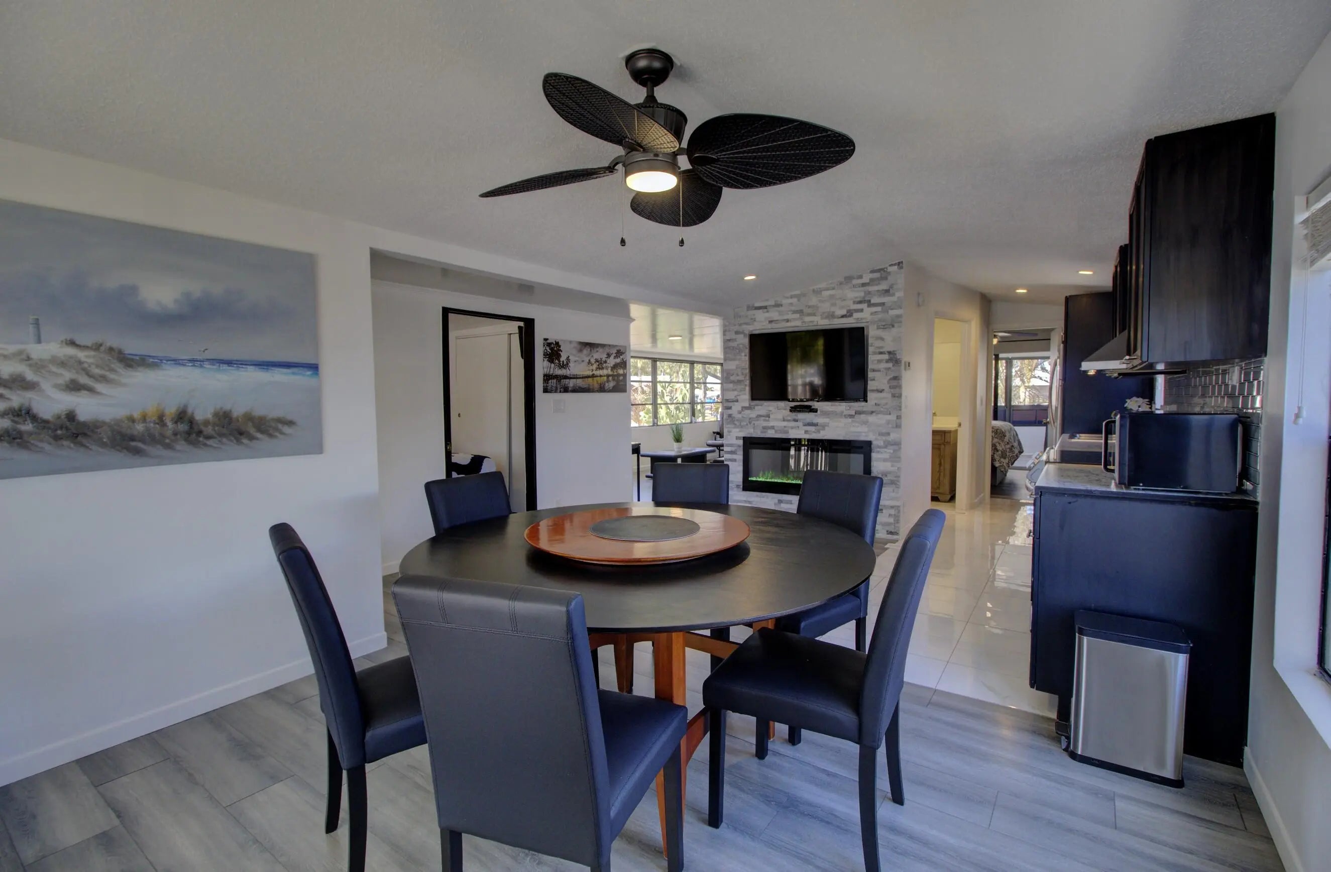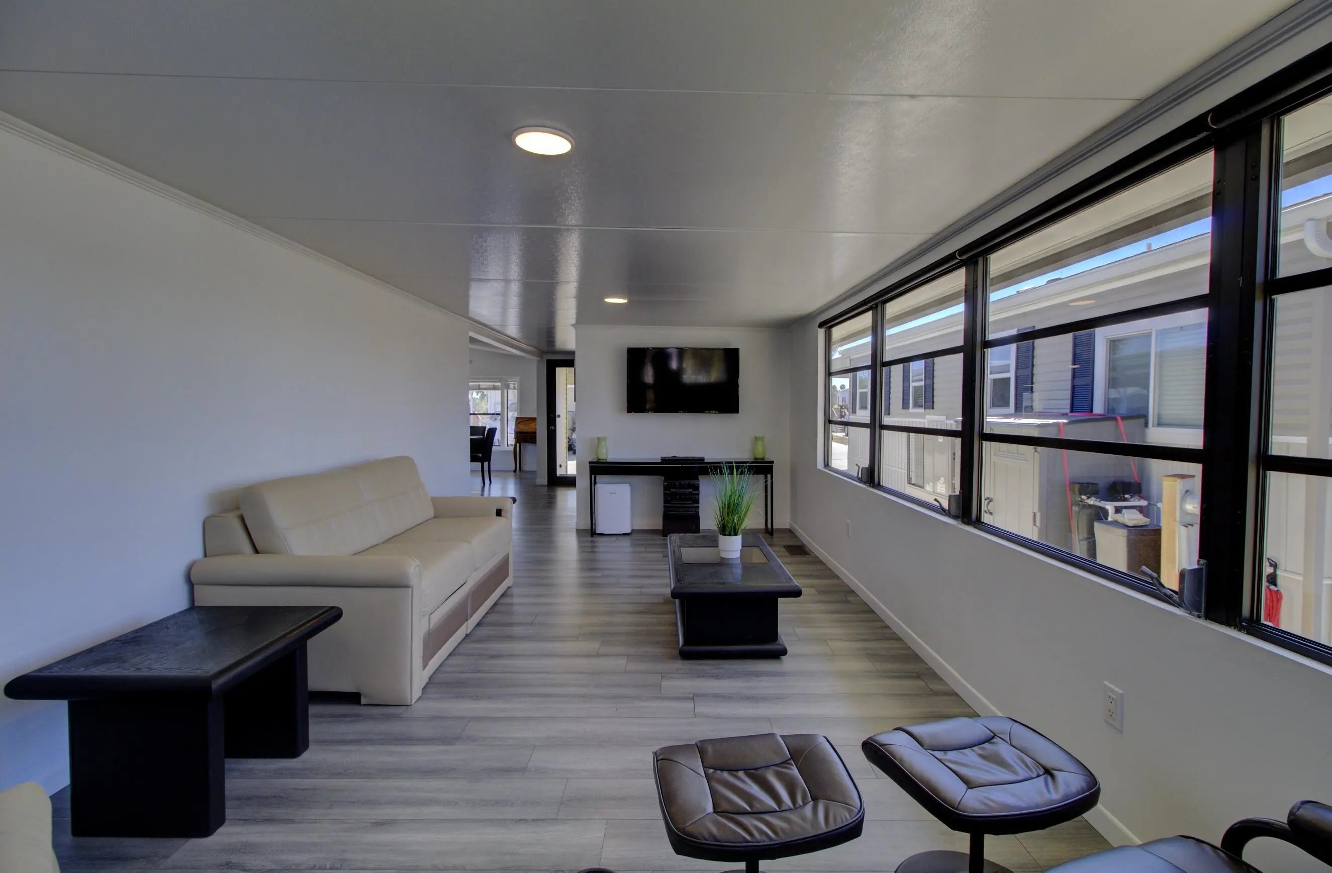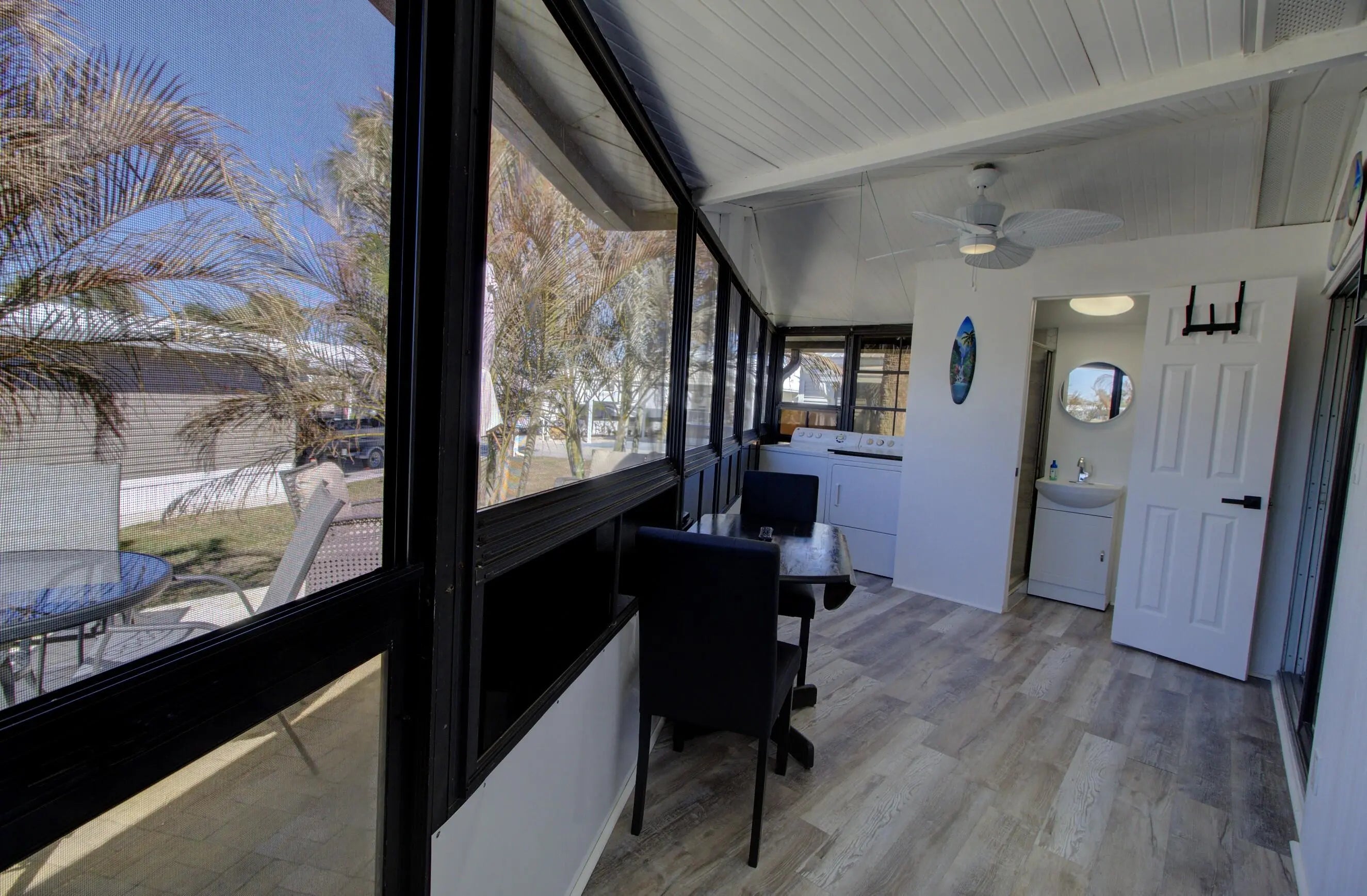 Water view living in the gated 55+ Ancient Oaks! This well-maintained 1989 home sits on owned land and offers breathtaking sunset views. Inside features 2 spacious bedrooms, 2 full baths, and an open floor plan filled with natural light and beautiful modern design. Updates include remodeled kitchen, new flooing, improved insulation, vapor barrier, and drywall throughout. Relax on the large lakeside terrace, screened porch, or covered front porch. Sold furnished with multiple TVs and major appliances. Outside storage and more. Active community offers pool, spa, clubhouse, marina with access to Lake Okeechobee, and more. Call today for more details and to schedule a tour