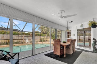 Welcome to this beautifully maintained single-family home in the gated community of Turtle Creek, nestled in the highly sought-after Village of Tequesta. Set in a quiet and peaceful setting, this residence offers the perfect blend of privacy, comfort, and convenience. Designed with a desirable split-bedroom floor plan, the home features 3 bedrooms with a quaint flex office space and 2 full bathrooms, providing ideal space for both family living and guests. The spacious primary suite features light-filled windows, a large walk-in closet, and sliding glass doors that open to a serene private garden. The kitchen is both functional and inviting, offering newer appliances, a convenient seating counter, and a pass-through window—perfect for effortless indoor-outdoor entertaining. More: Relax under the expansive covered patio or enjoy year-round swimming in the electric heated private pool, all within a screened enclosure. The fenced yard provides exceptional privacy and even offers room for a boat or RV storage. Additional highlights include a 2009 roof and the security of a manned guard gateall with no HOA fees. Residents enjoy walking and biking throughout the community, and optional membership is available at Turtle Creek Club, a premier private golf club with exceptional amenities. Ideally located just minutes from top restaurants, shopping, golf courses, marinas, pristine beaches, the Jupiter Inlet, and Palm Beach International Airport, this is Tequesta living at its finest.