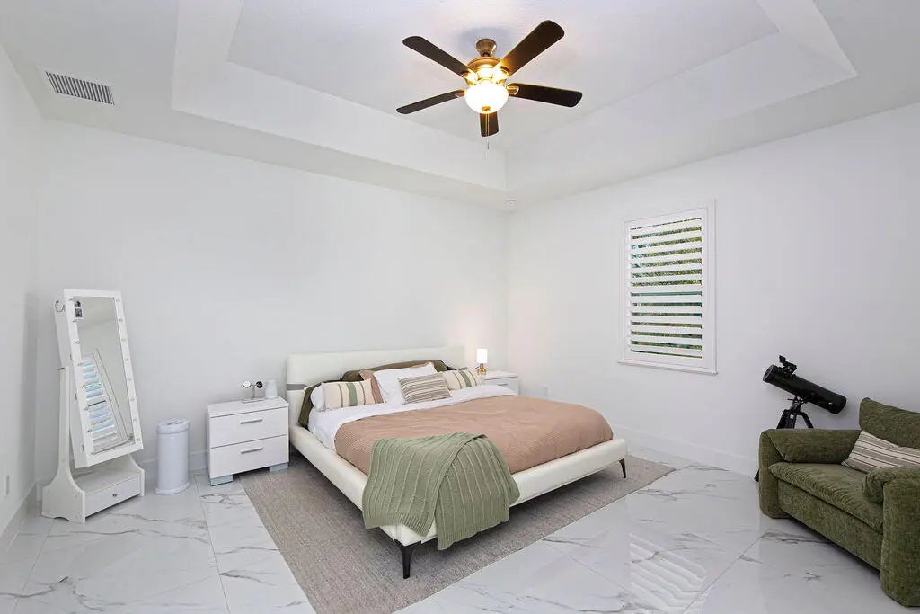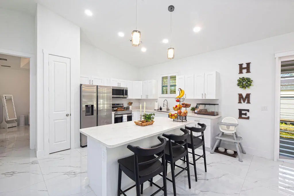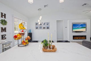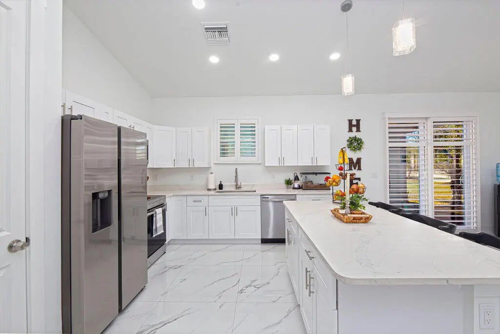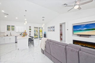 This stunning 3-bd, 2-ba home on oversized .36 acre lot is packed with custom upgrades far beyond standard builder grade. Soaring 10-foot ceilings, 8-foot doors, plantation shutters, and gorgeous 36-inch tile flow throughout the home. The open-concept living area features a vaulted ceiling and decorative fireplace, creating a bright yet inviting space. The kitchen shines with solid wood, soft close cabinetry, quartz countertops, and stainless-steel appliances. The spacious primary suite offers a tray ceiling, custom walk-in closet, and a beautifully tiled shower with river rock flooring. Impact windows and doors, spray foam insulation, and an on-demand water heater provide excellent energy efficiency. Enjoy the 21x10 covered lanai, brick paver driveway, gutters, and more.