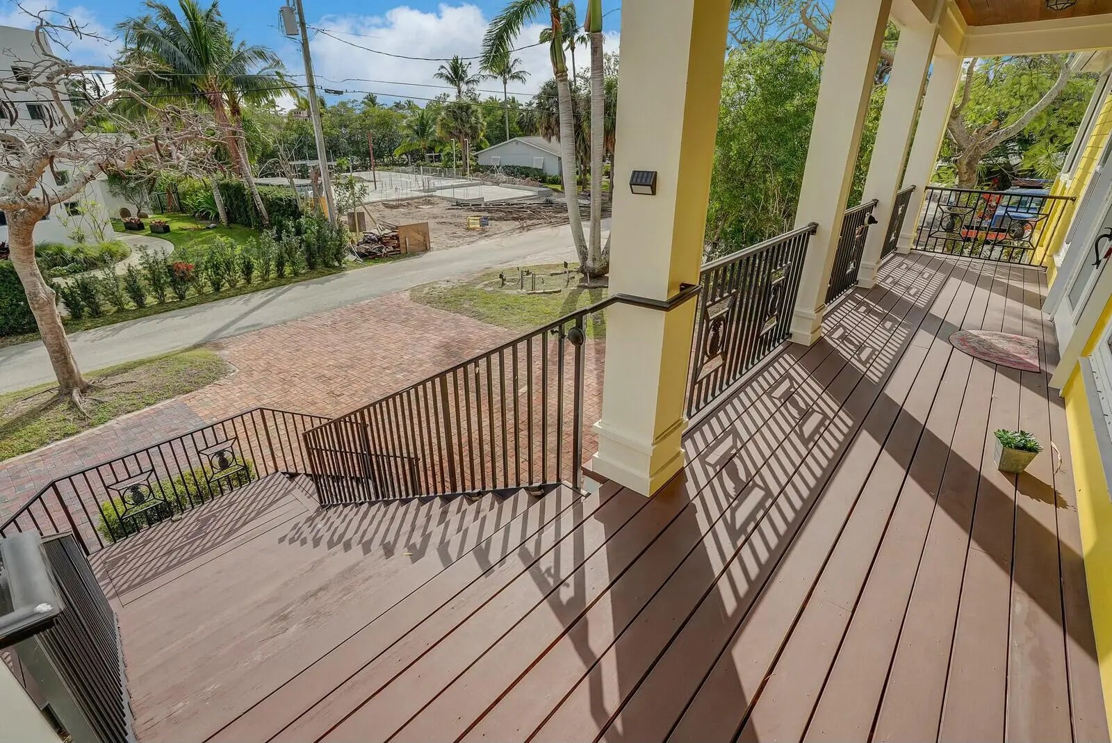 This timeless three-story waterfront home features strong poured concrete construction with five beds and four baths, designed in British-French Colonial style on a spacious 15,000 sf lot. Located in a desirable Non-HOA unincorporated Martin County cul-de-sac, it boasts luxurious interiors with pecky wood ceilings and Brazilian teak balconies overlooking a tropical canal and private dock. The property offers 100 feet of navigable waterfront and one of the largest private docks in the area, providing direct ocean access for vessels up to 35 feet without bridge obstructions. Additional features include a rooftop sun deck, in-ground pool, summer kitchen, Generac generator, newer metal roof, and solar panels, offering a unique chance for buyers to customize their private waterfront residence