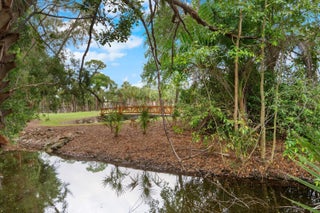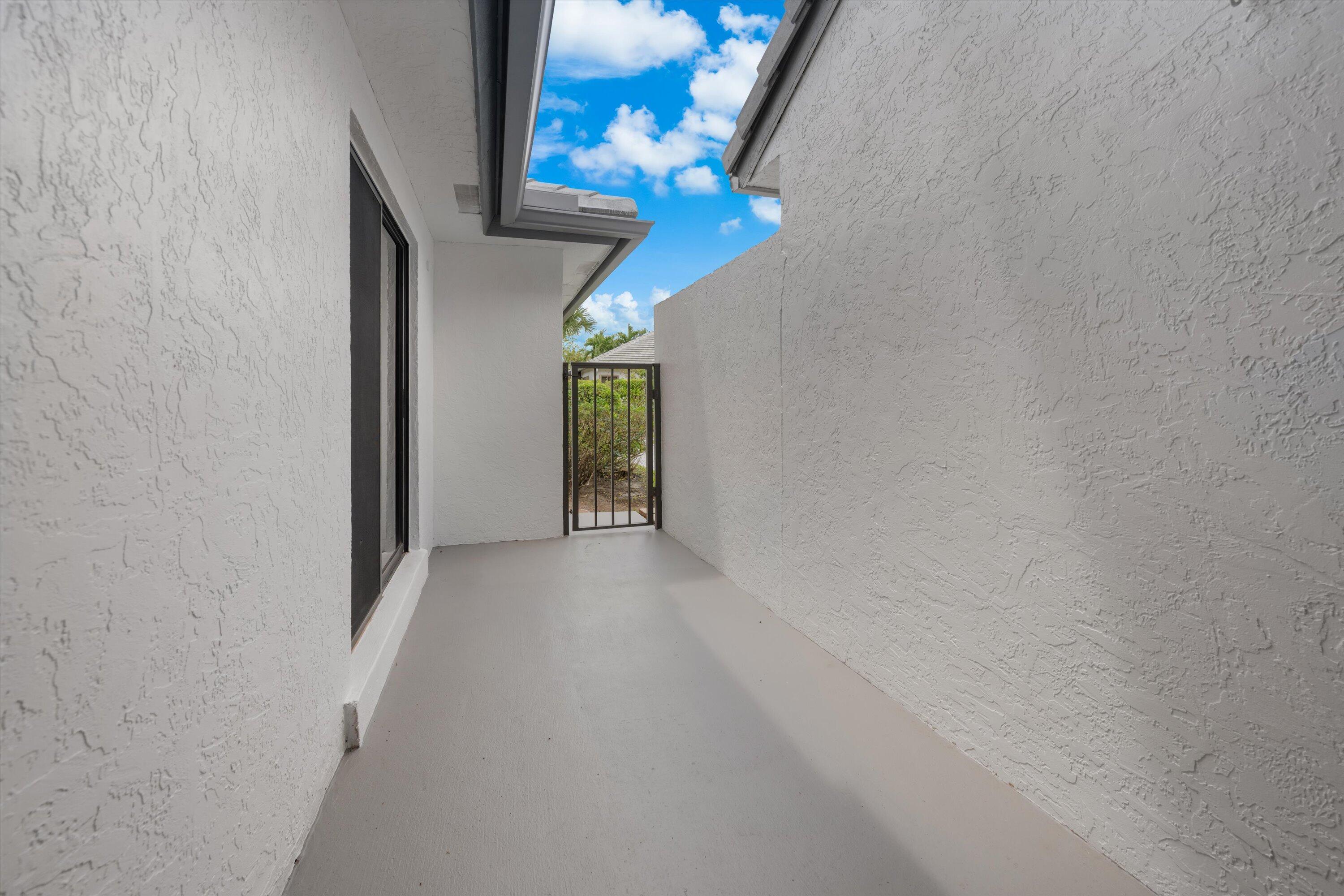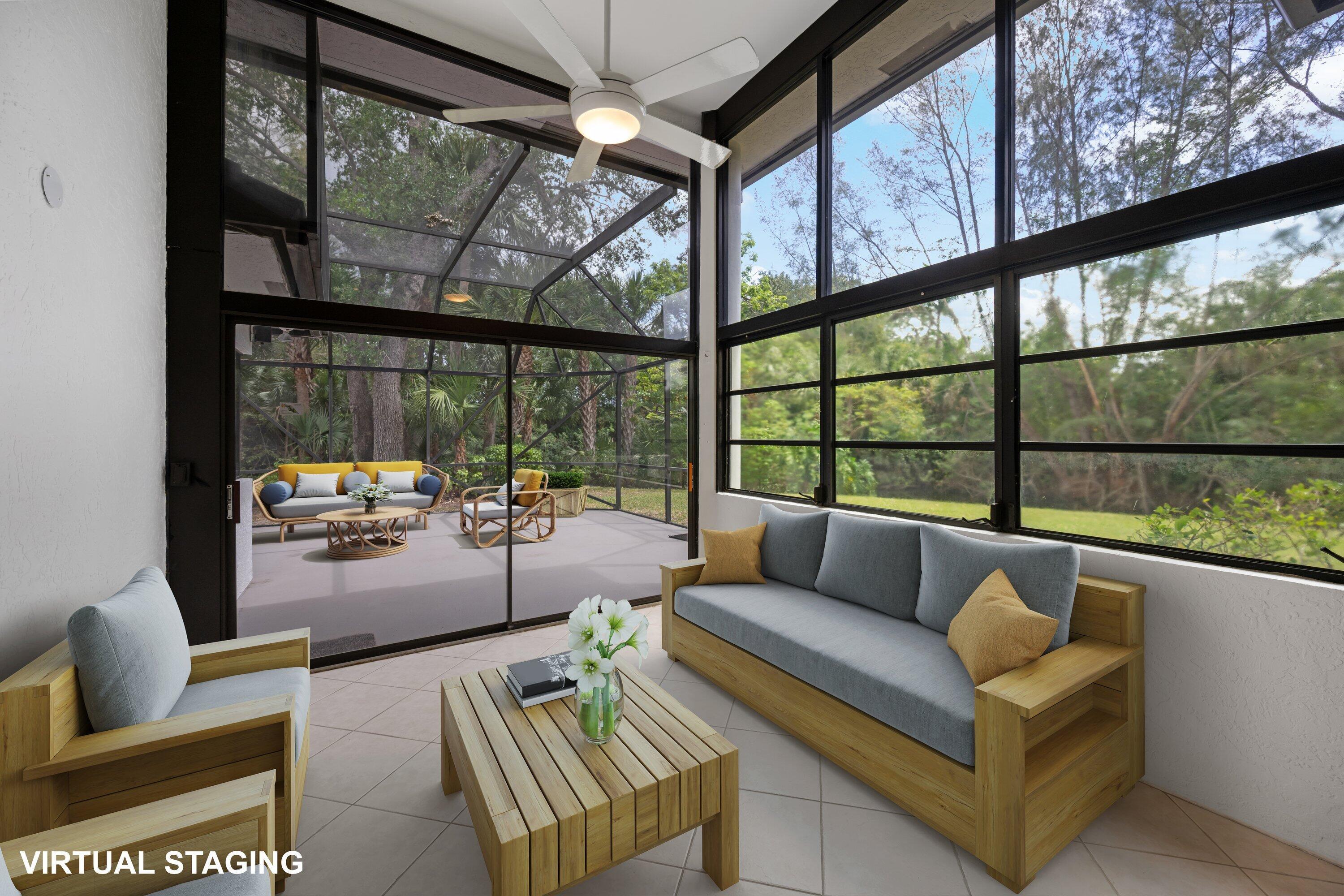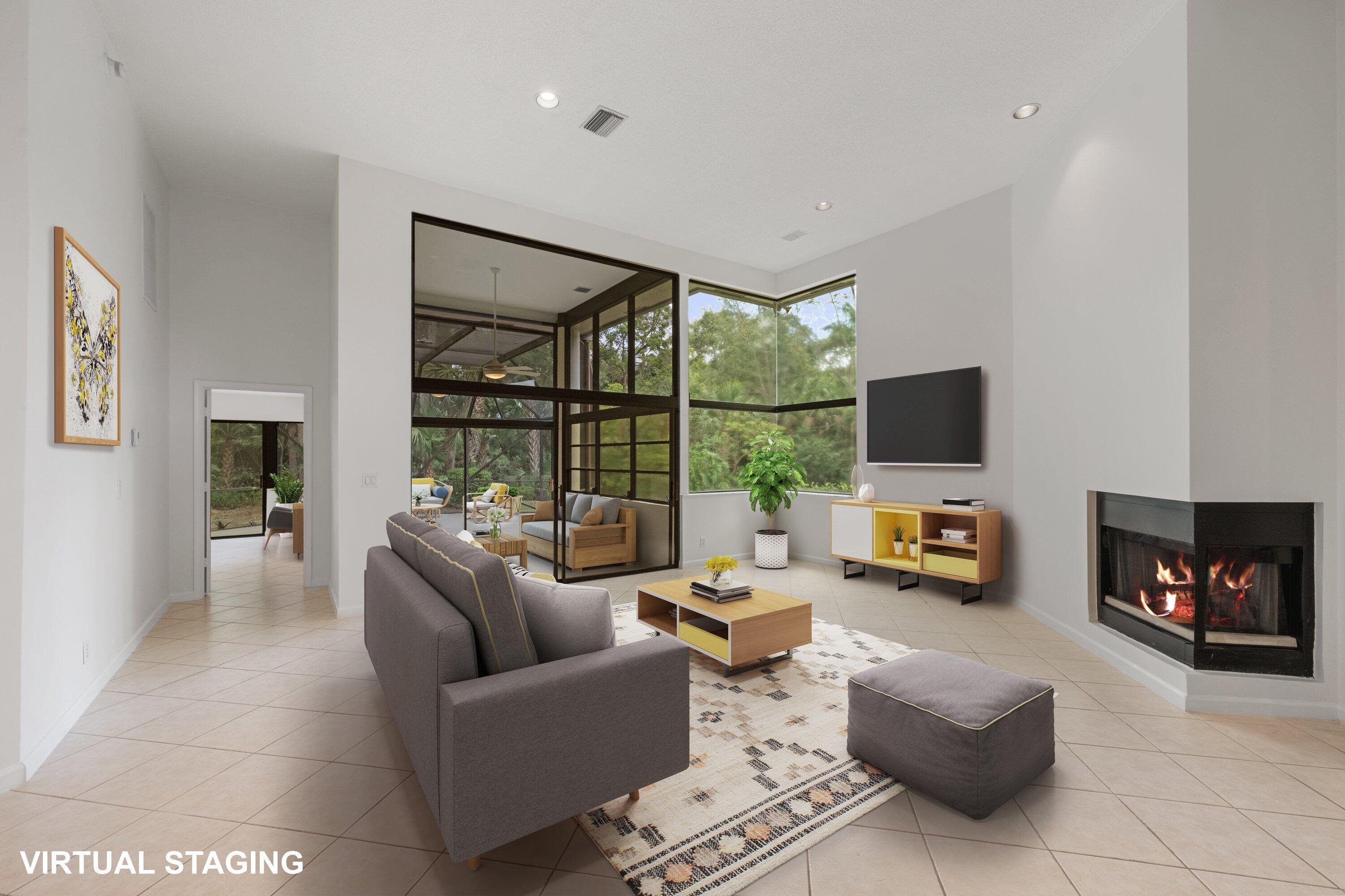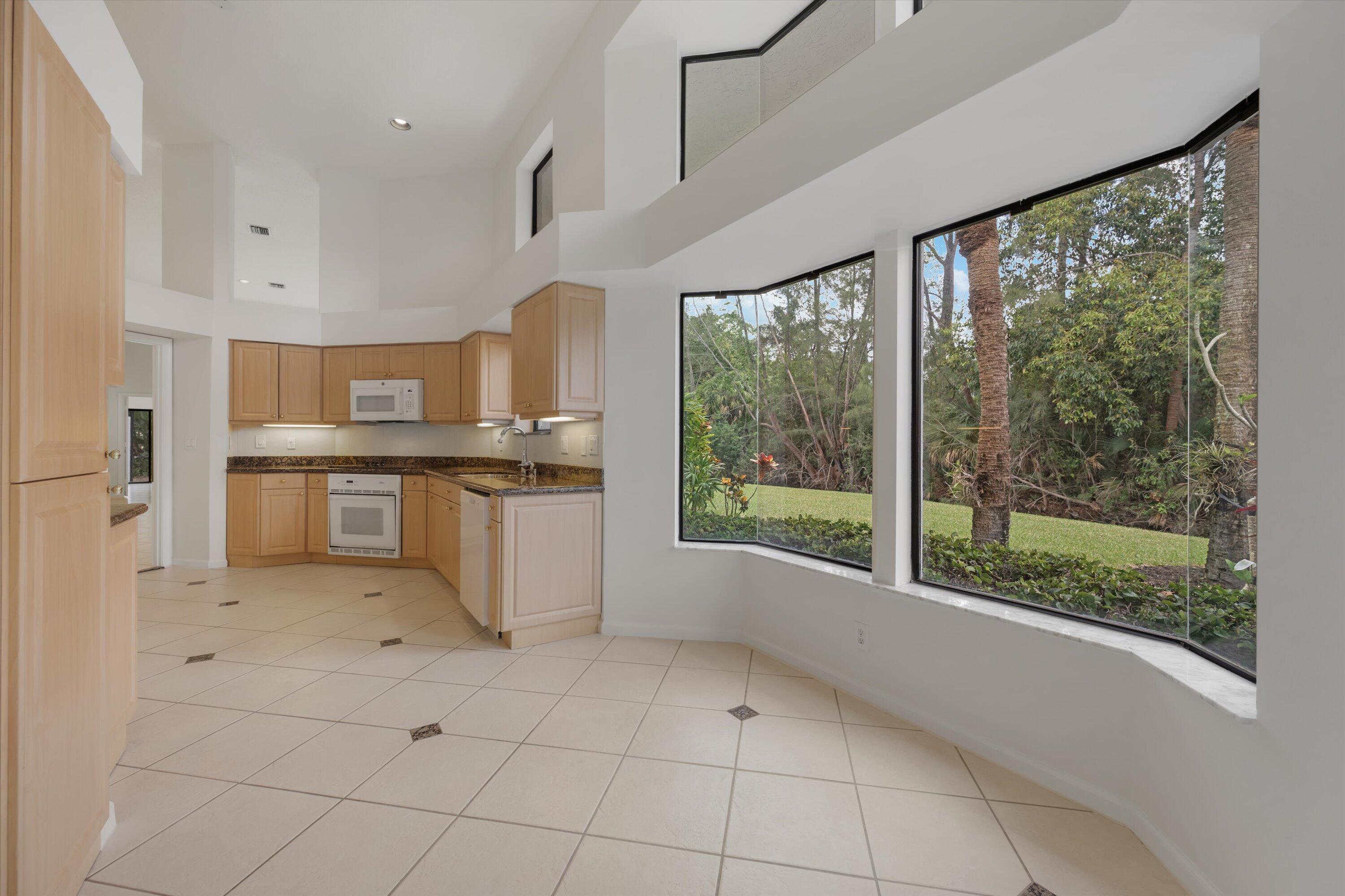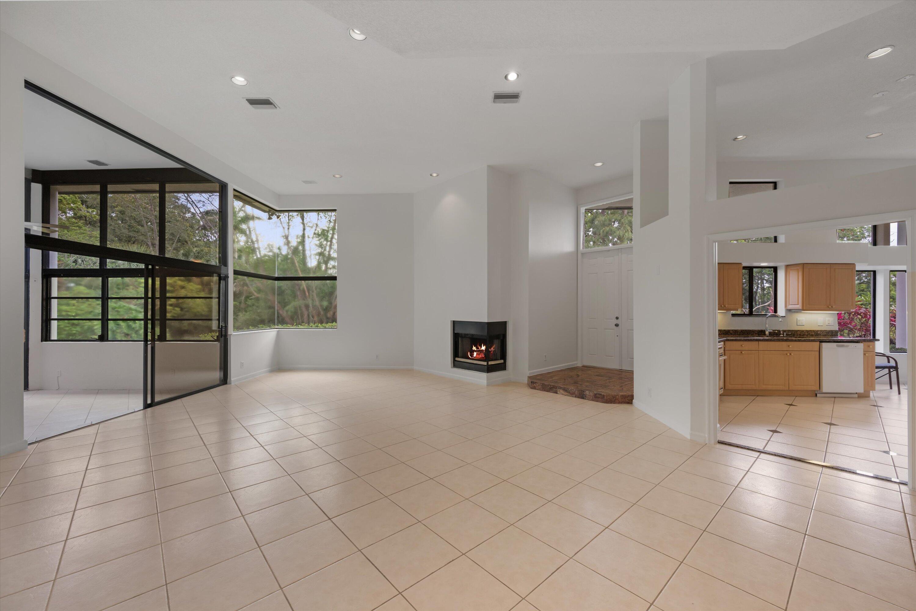 NEWLY PRICED=BUYER'S OPPORTUNITY! Located in beautiful BREAKERS WEST on a secluded corner lot surrounded by native Florida palms, oak trees and water, this private location is like no other! Spacious 1-story home has a NEW TILE ROOF with 3 Bedrooms + Florida Room, 2 Baths and large 2-car garage. Impressive 13 ft ceilings in main living areas and 8ft sliding doors with 4ft transom windows above offers both spaciousness and great natural light. Living Room has tile floors, a modern designed fireplace and opens the octagonal shaped Dining Area. The spacious eat-in kitchen has ample counter space, a pantry closet and seamless glass window in the Breakfast nook. Conveniently located off the kitchen is a separate Laundry Room with utility sink and cabinets above.The light filled Florida Room offers space an Office or even an art studio. Large screen enclosed patio has complete privacy for outdoor entertaining, bird-watching or a quiet spot for reading a book. Freshly painted interior in 2025 and exterior painted in 2024. AC replaced in 2020. A unique benefit of living in Breakers West is the Golf or Social/Sport club memberships are available BUT are not mandatory at either Breakers West (including Summer access to The Breakers Resort's Beach Club or Ocean Golf Course) or at Mayacoo Lakes CC. HOA fee includes: homeowner's insurance on building's exterior, lawn care, irrigation maintenance, roof repairs, Wifi/internet and basic cable from Comcast, 2 manned guard gates and roving patrol, alarm system monitoring and common area maintenance. Breakers West is centrally located in Palm Beach County--convenient to downtown West Palm Beaches' Cityplace, Kravis Center, Norton Art Museum, Palm Beach's fabulous shopping, PBI airport and Wellington equestrian amenities.