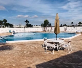 LIGHT, BRIGHT AND SPACIOUS 1 BEDROOM 1 1/2 BATH CORNER VILLA. OPEN CONCEPT KITCHEN WITH BREAKFAST BAR, STORAGE CLOSETS. ENCLOSED BACK PATIO, AND PRIVATE BARBECUE AREA, CUSTOM LANDSCAPING, AIR SITTING AREA IN THE FRONT. PROTECTED HURRICANE ACCORDIAN SHUTTERS. NEW ROOF 2024, NEW AC. THIS EXCEPCIONAL COMMUNITY OFFER CLUBHOUSE FEATURES GAMES, BINGO, ACTIVITIES, CARDS. HEATED SWIMMING POOL, EXERCISE ROOM, BILLIARDS AND MUCH MORE!!! CLOSE TO SHOPPING, RESTAURANTS, SUPERMARKET, I-95, TURNPIKE, MINUTES AWAY TO AIRPORT AND BEACH. YOU MUST SEE IT..!