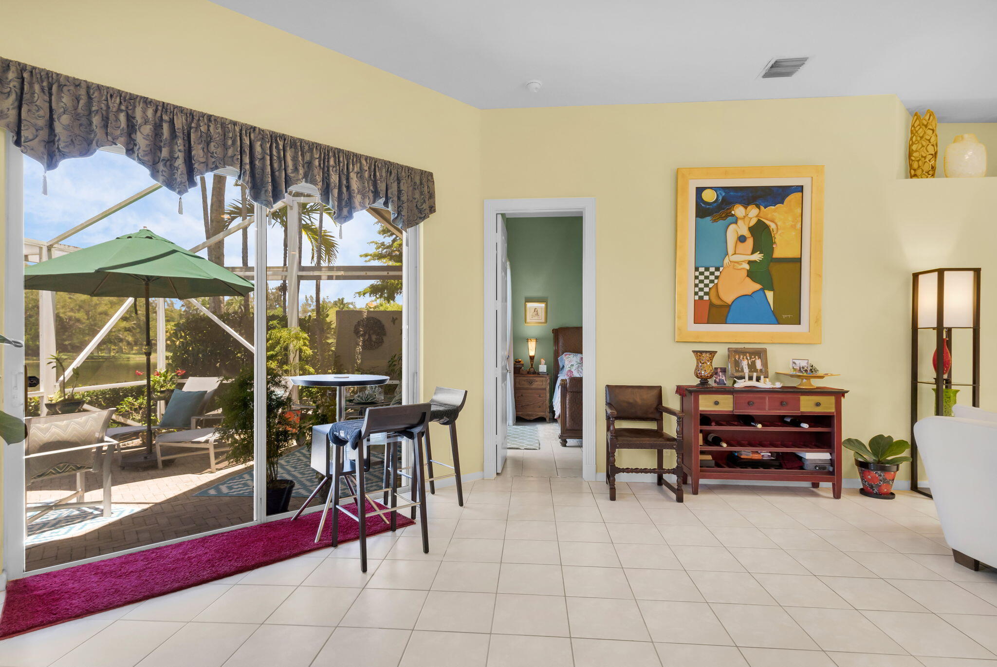 Looking to downsize into a super cute villa with awesome water views?!? It's ALL ABOUT the location with real estate and this home has it all! This model last sold for $550k with NO VIEW! Check out the NEW virtually staged pictures! Amazing what a little paint and furniture placement can do. Location! Location! Location! Open and spacious 3 bedroom or 2 bedroom + den villa w/ over 1,700 square feet and tons of natural light! Great room layout, high ceilings, and versatile floorplan. The great room and dining area are interchangeable. How would you use the space? NEW WATER HEATER! This home is tucked away, offering extra privacy and unbelievable water views! Enjoy your morning coffee or evening cocktail in your screened patio watching the Ibis birds flock to the trees....across the serene lake in your backyard. Peaceful and relaxing! Roof was installed in 2014 and the home is protected with accordion hurricane shutters. Larkspur Landing is a lovely neighborhood with paver brick roads, lush landscaping and a private community pool/spa. Larkspur is also within walking distance to the club and near the side entrance making this a wonderful location in Ibis.