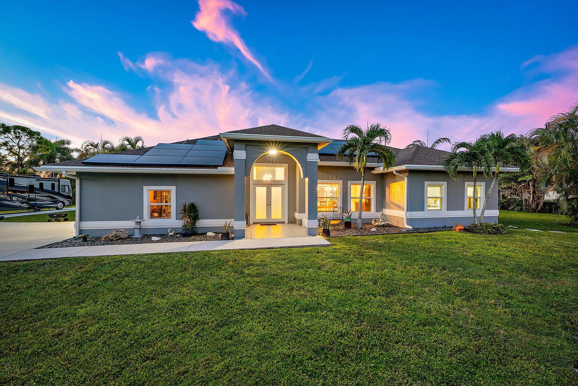 Motivated seller - They have found their forever home and are looking for a quick sale! Welcome to your very own peaceful retreat with pastoral charm! Extremely well-maintained, recently renovated, and expanded with an 1,100+/- square-foot solid CBS addition featuring 10-foot ceilings, this four-bedroom residence, spanning 3,511+/- total square feet, combines classic country living with thoughtful updates and room to grow. Appointed with wood cabinetry, granite counters and stainless-steel appliances, the kitchen functions as the ''heart of the home,'' flowing effortlessly with the living room, dining room and family room. The spacious living room offers three banks of sliding glass doors that access the pavilion with a hot tub, with the dining lanai nearby.Placed separately for privacy in a split-bedroom plan, the primary suite comprises two walk-in closets and a bathroom with dual sinks, soaking tub and walk-in shower with a pebble-stone floor. Completing the floor plan are a new powder room with an instant hot-water heater, laundry room and a two-bay garage. Amenities include city water service, central air and Daikin multi-zone mini-split air conditioning system, solar panels, impact-resistant windows and doors, and remote-controlled blinds that reduce heat and light. Whether imagining a dream of hobby farming, entertaining farm-style, or launching a home-based business, this hidden gem offers the flexibility and freedom to live your vision! Dreaming of a farm? This is it! Set on 2.04± fully fenced acres of expansive lawns, this lush property offers endless possibilities - whether new owners wish to enjoy it as it is -- a peaceful rural retreat -- or if they envision installing a lap pool, raising farm animals, or building a guest house or business workshop. Perfect for gardening and farming enthusiasts, the land includes two productive raised vegetable beds, and sugarcane grows alongside a thriving mix of fruit-bearing trees already in bloom. They include four varieties of mango, fig, Florida and Barbados cherry, banana, papaya, coconut, mulberry, dragon fruit and exotic Jaboticaba. A ready-to-use chicken coop awaits its happy flock, and there are also a 50-amp hookup for an RV or motor home and an extra-large shed to keep an ATV, lawn mower and gardening tools. Delivering value and flexibility, unincorporated West Palm Beach blends suburban ease with South Florida charm. Located just beyond the city limits, the area offers larger parcels of land along with a diverse range of homes, from rural equestrian estates to newly built gated communities. All while benefiting from a quieter, more relaxed setting, residents enjoy easy access to top-rated schools; downtown West Palm Beach's dining, shopping and culture venues; the Florida Turnpike, Interstate 95 and the Palm Beach International Airport. DISCLAIMER: Information published or otherwise provided by the listing company and its representatives including but not limited to prices, measurements, square footages, lot sizes, calculations, statistics, and videos are deemed reliable but are not guaranteed and are subject to errors, omissions or changes without notice. All such information should be independently verified by any prospective purchaser or seller. Parties should perform their own due diligence to verify such information prior to a sale or listing. Listing company expressly disclaims any warranty or representation regarding such information. Prices published are either list price, sold price, and/or last asking price. The listing company participates in the Multiple Listing Service and IDX. The properties published as listed and sold are not necessarily exclusive to listing company and may be listed or have sold with other members of the Multiple Listing Service. Transactions where listing company represented both buyers and sellers are calculated as two sales. "No payments made until title passes" Some affiliations may not be applicable to certain geographic areas. If your property is currently listed with another broker, please disregard any solicitation for services. Information published or otherwise provided by seller, listing company or its representatives is deemed reliable but are not guaranteed and subject to errors, omissions, or changes without notice. Copyright 2025 by the listing company. All Rights Reserved.