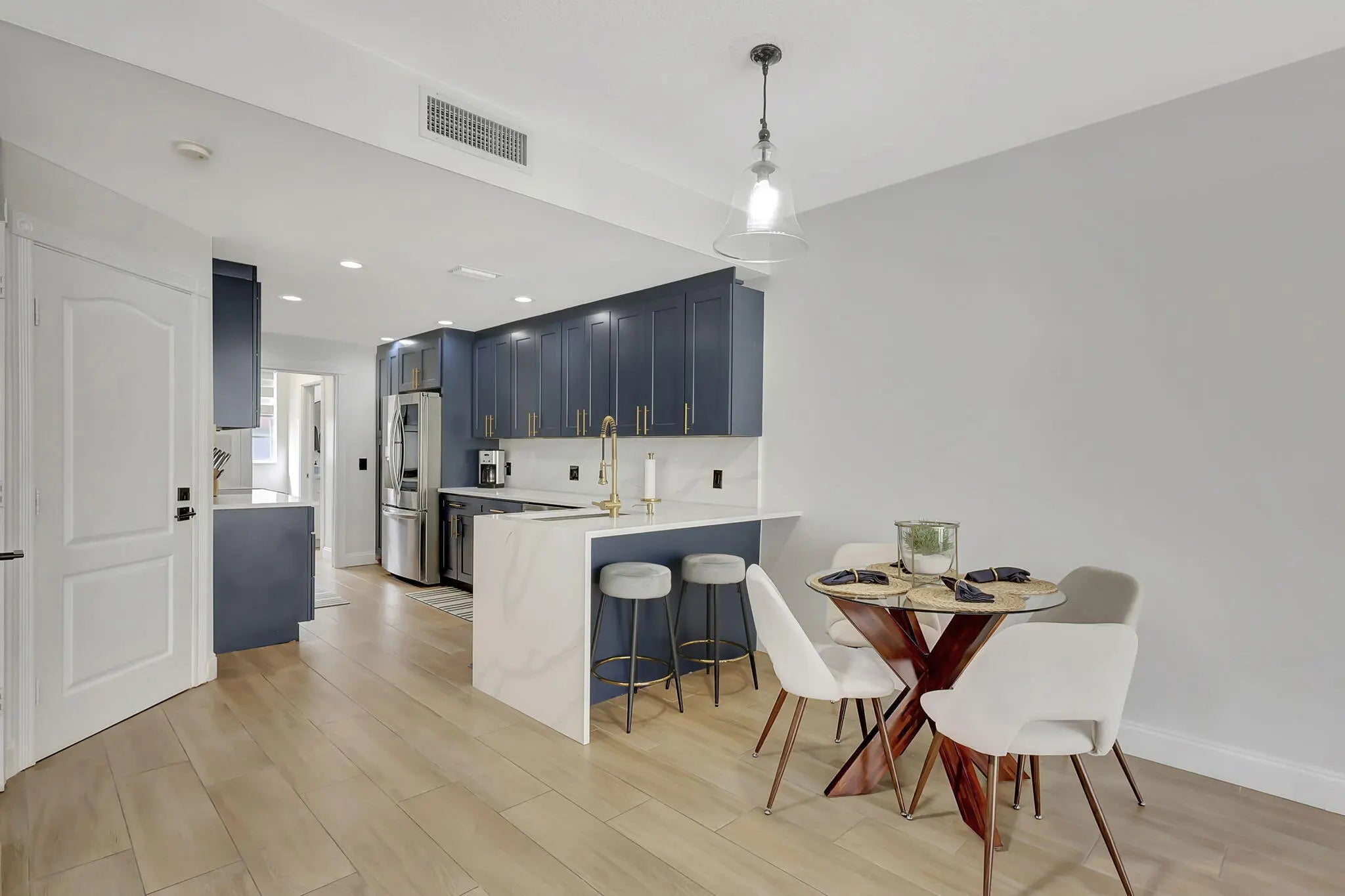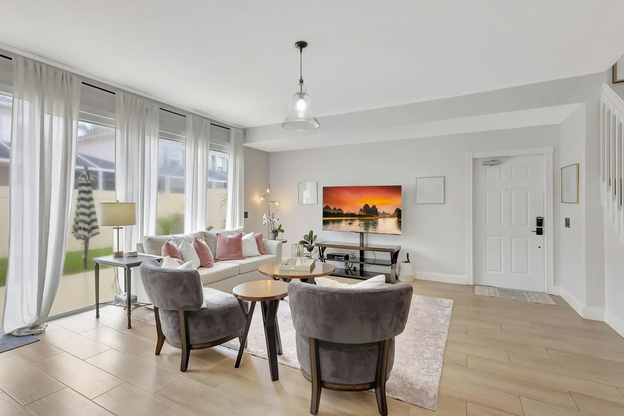 Beautifully updated 3 bedroom 2 bath townhouse with 1 car garage in Riverwalk in West Palm Beach! Wood-look tile floors throughout, gourmet kitchen with white marble countertops, fenced yard with open patio, custom lighting, all white paint, end unit that is full of light and bright. AC is 2018. NEW water heater just installed February 2026. Owner has contracted for roof to be replaced. Community offers 3 pools, tennis, pickleball, gym, clubhouse space, walking paths and more. HOA fee includes internet and WiFi! Quick access to I95, Turnpike, Palm Beach Airport the areas best beaches. A short drive to lively downtown West Palm Beach, Palm Beach Island, great restaurants. See it today!