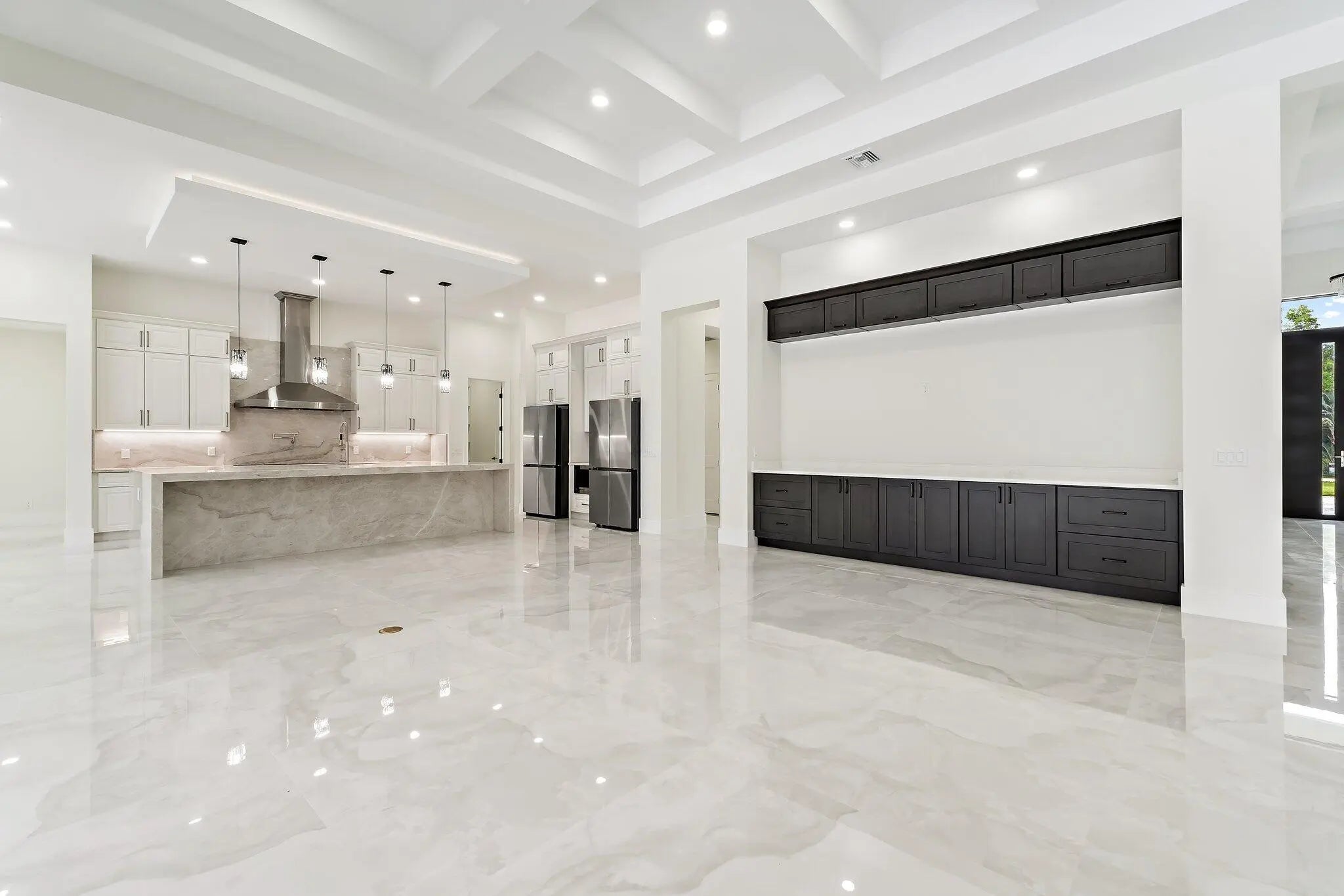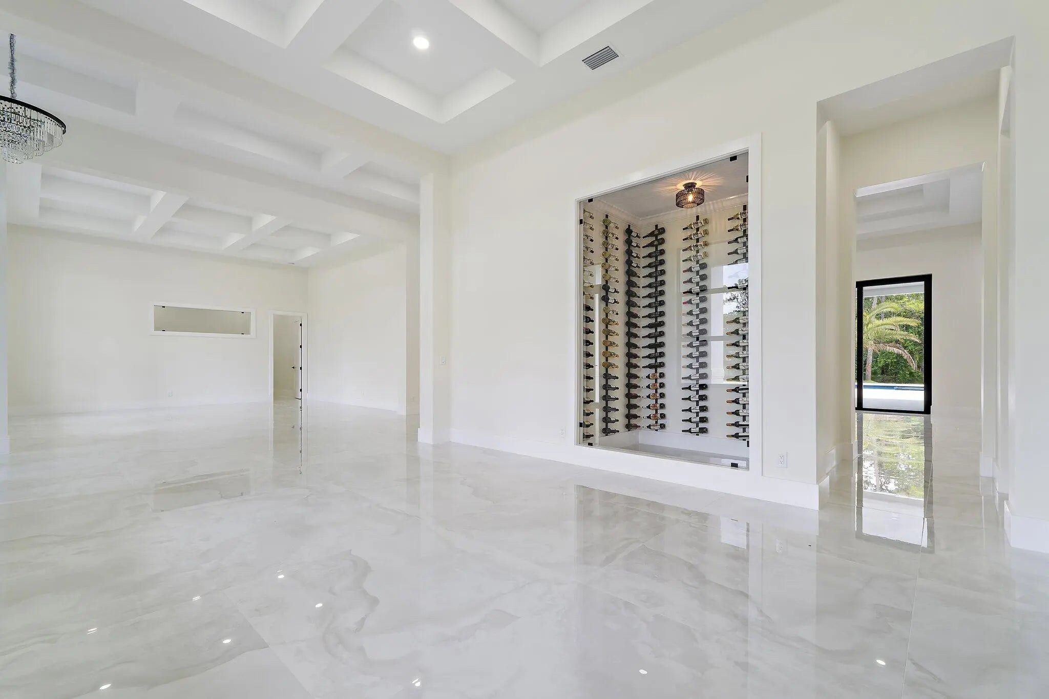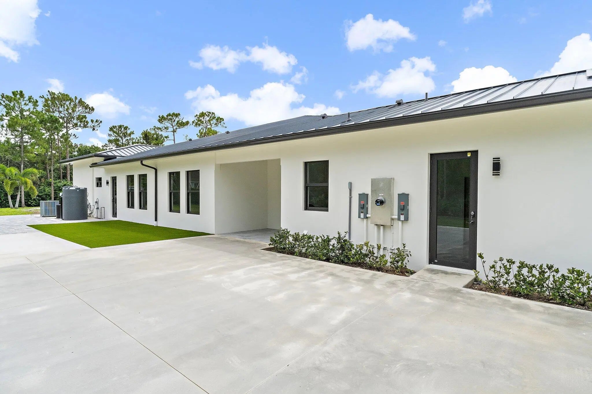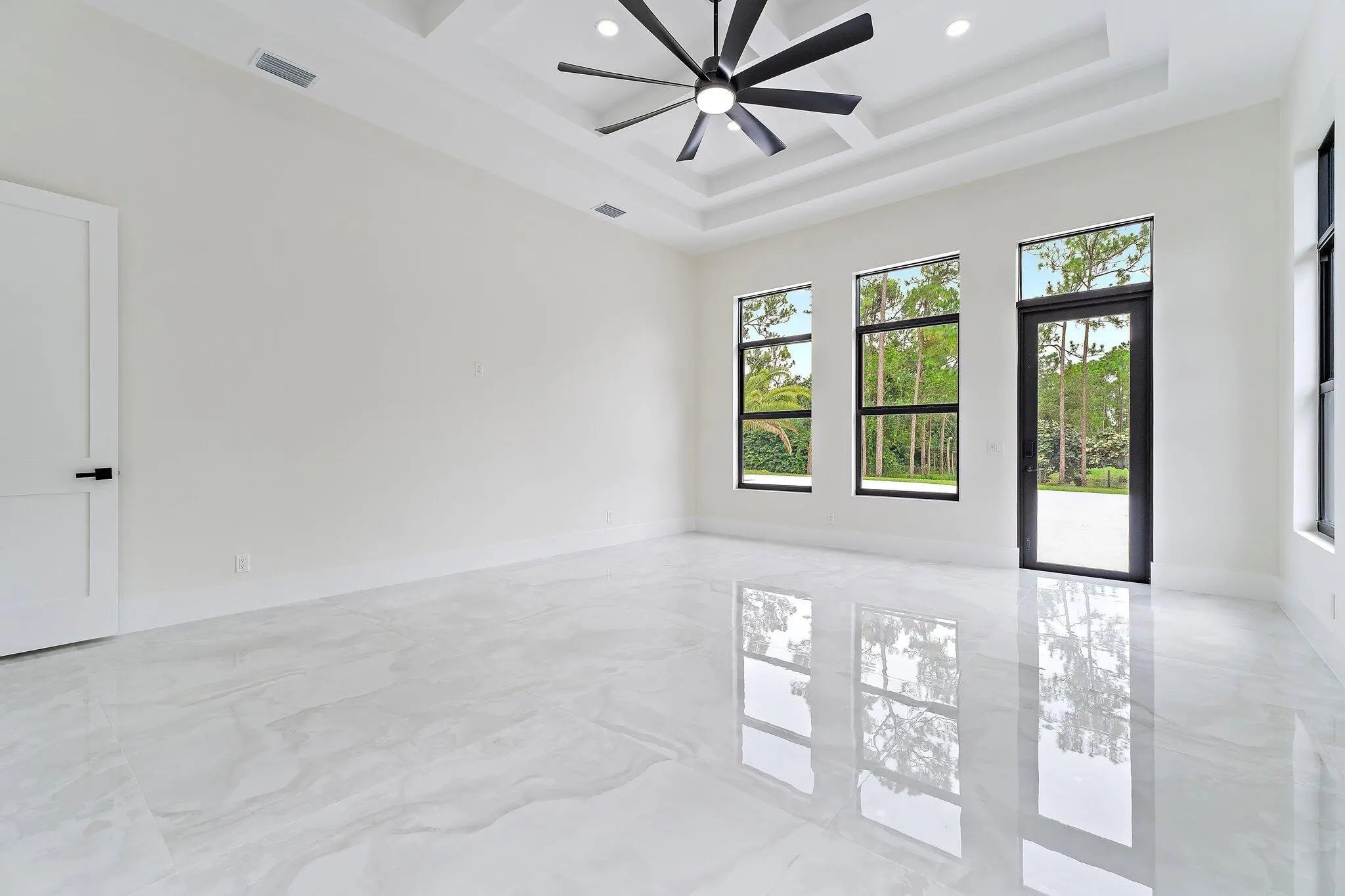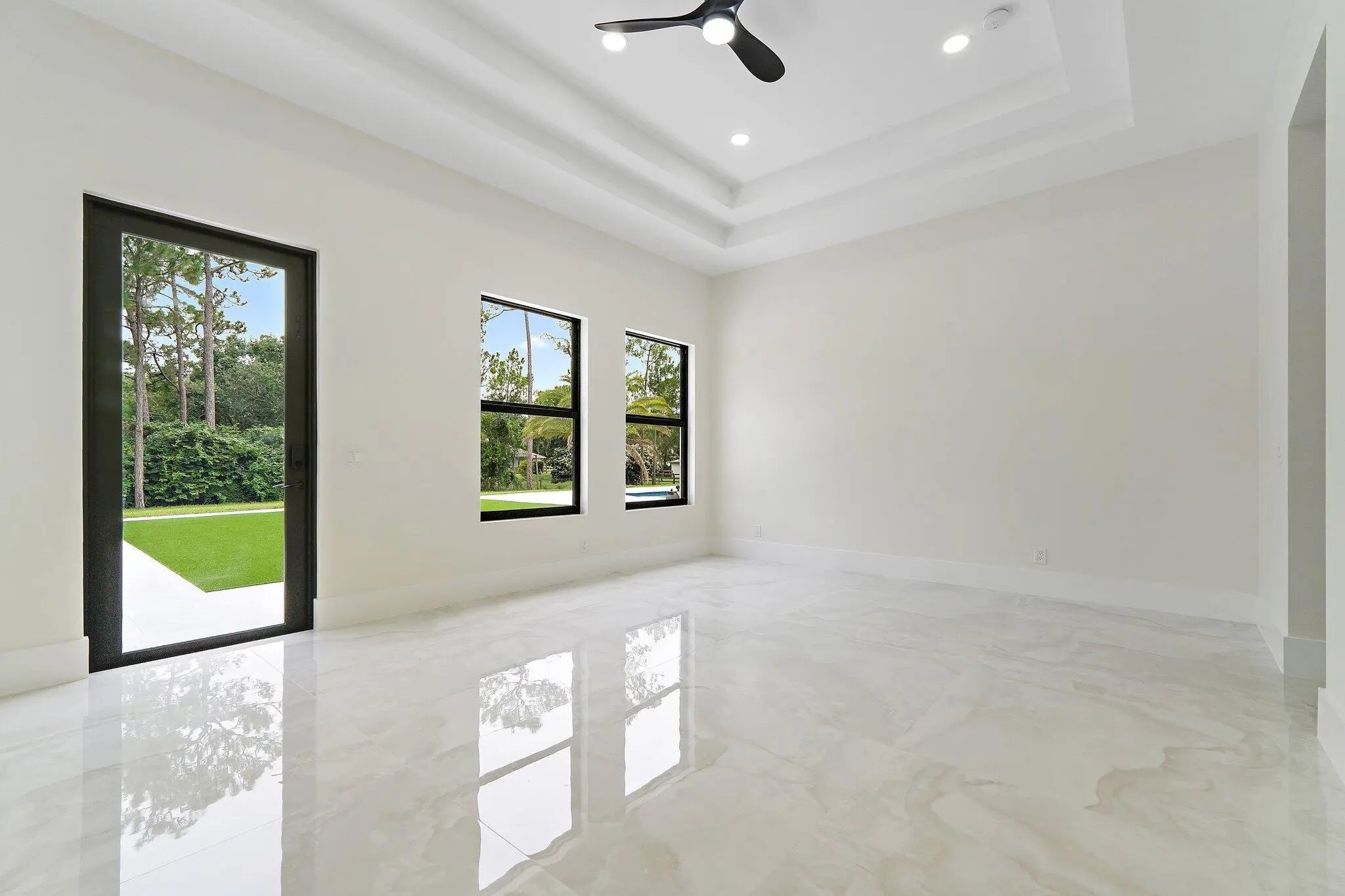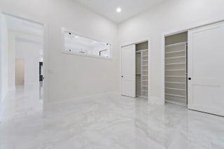 Brand-new 2025 luxury estate on 2.5 acres in Jupiter Farms. Offering 8,230 sq ft of living space + guest house, 6 bedrooms, 8 full & 2 half baths, and over 10,900 total sq ft under roof. Built with uncompromising quality: steel-reinforced CBS construction, impact glass, charcoal metal roof, and foam insulation. Interiors feature 48x48 marble-look tile, soaring 10-16 ft ceilings, custom closets, and level 5 finishes. Gourmet kitchen with dual refrigerators, double ovens, pot filler, wet bar, and 10' cabinetry. Resort-style pool with 6,250 sq ft marble deck, summer kitchen, sauna, gym, billiards, media room, and wine cellar. Guest house with full kitchen & living. Horses permitted, no HOA. A rare opportunity for modern luxury on acreage in Jupiter.