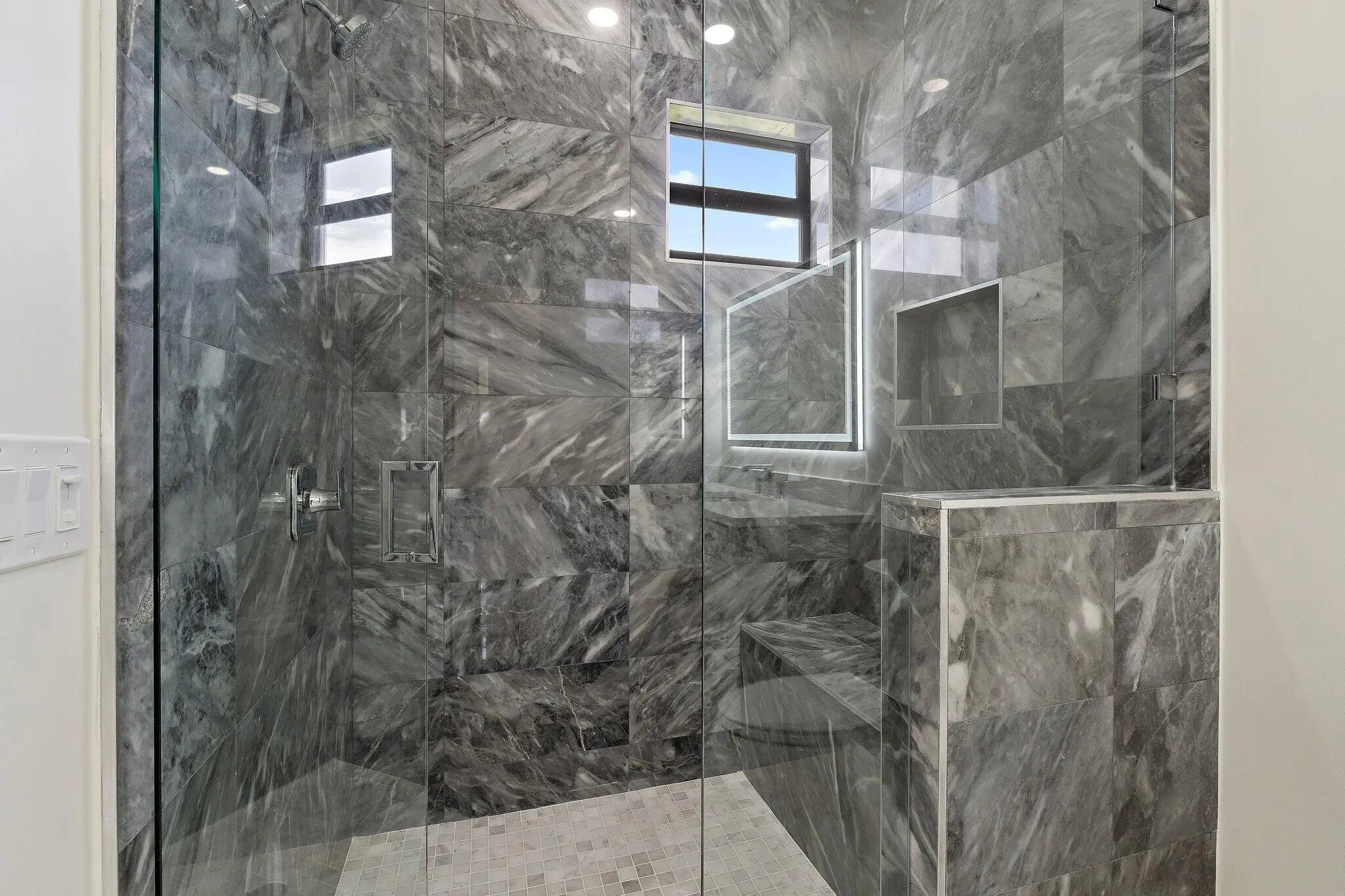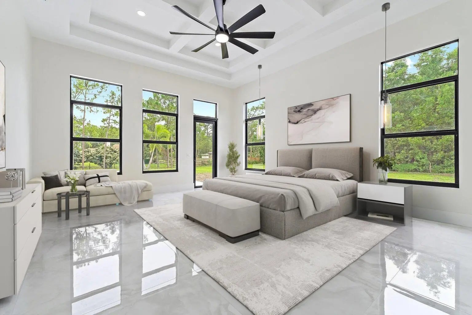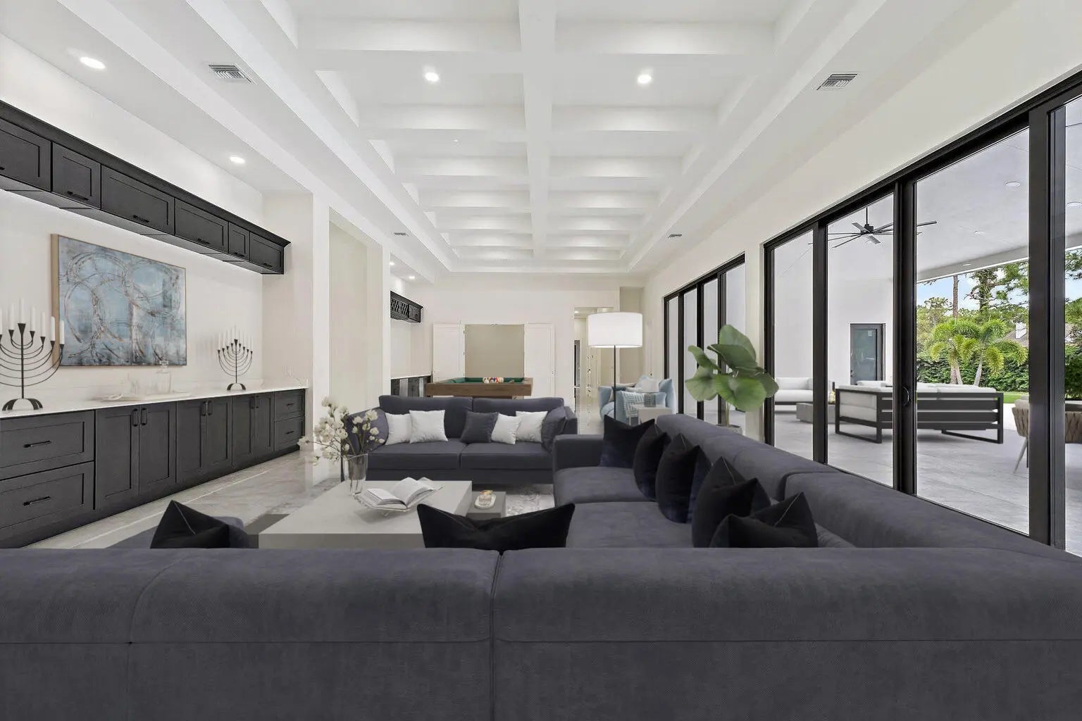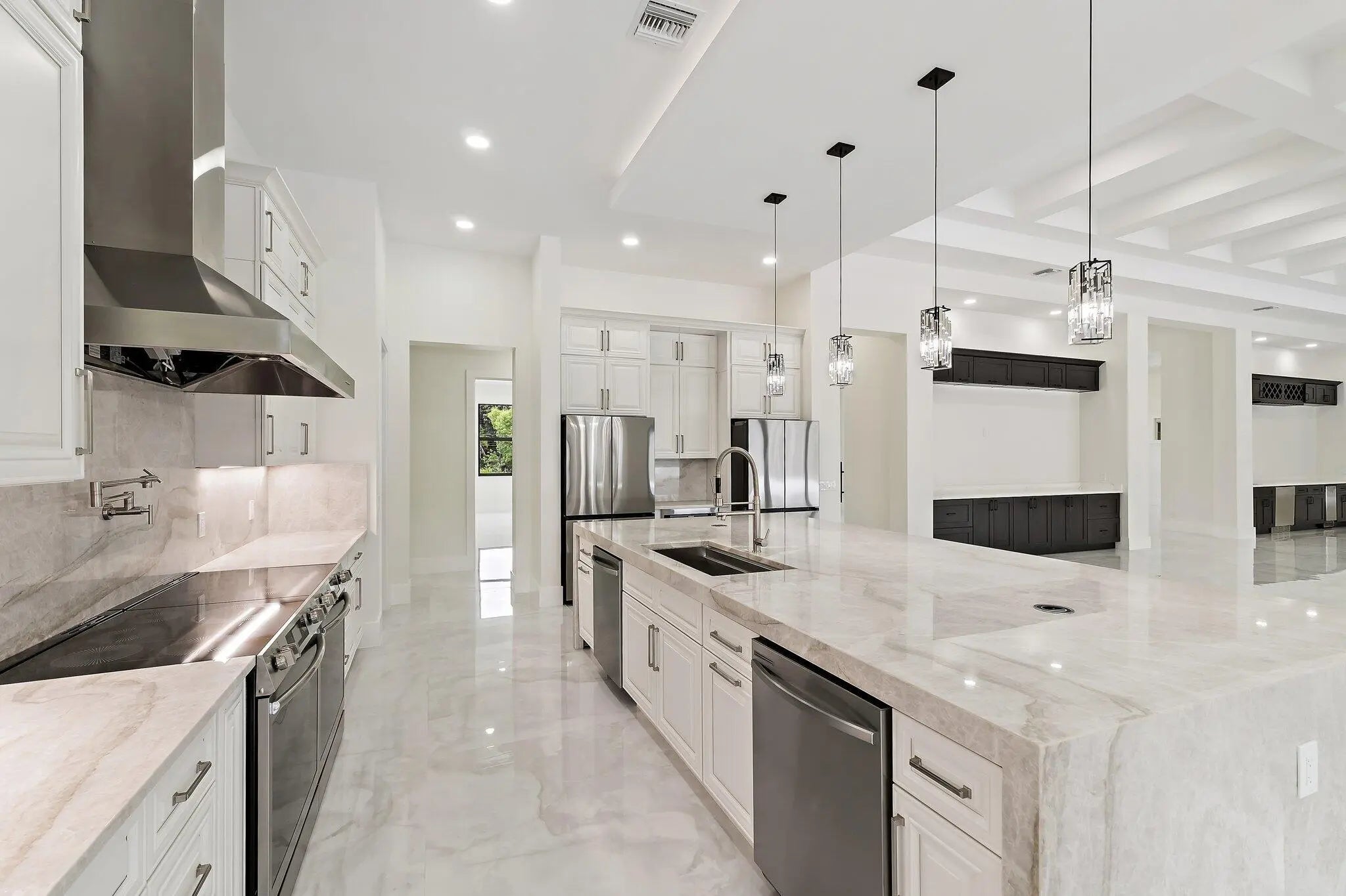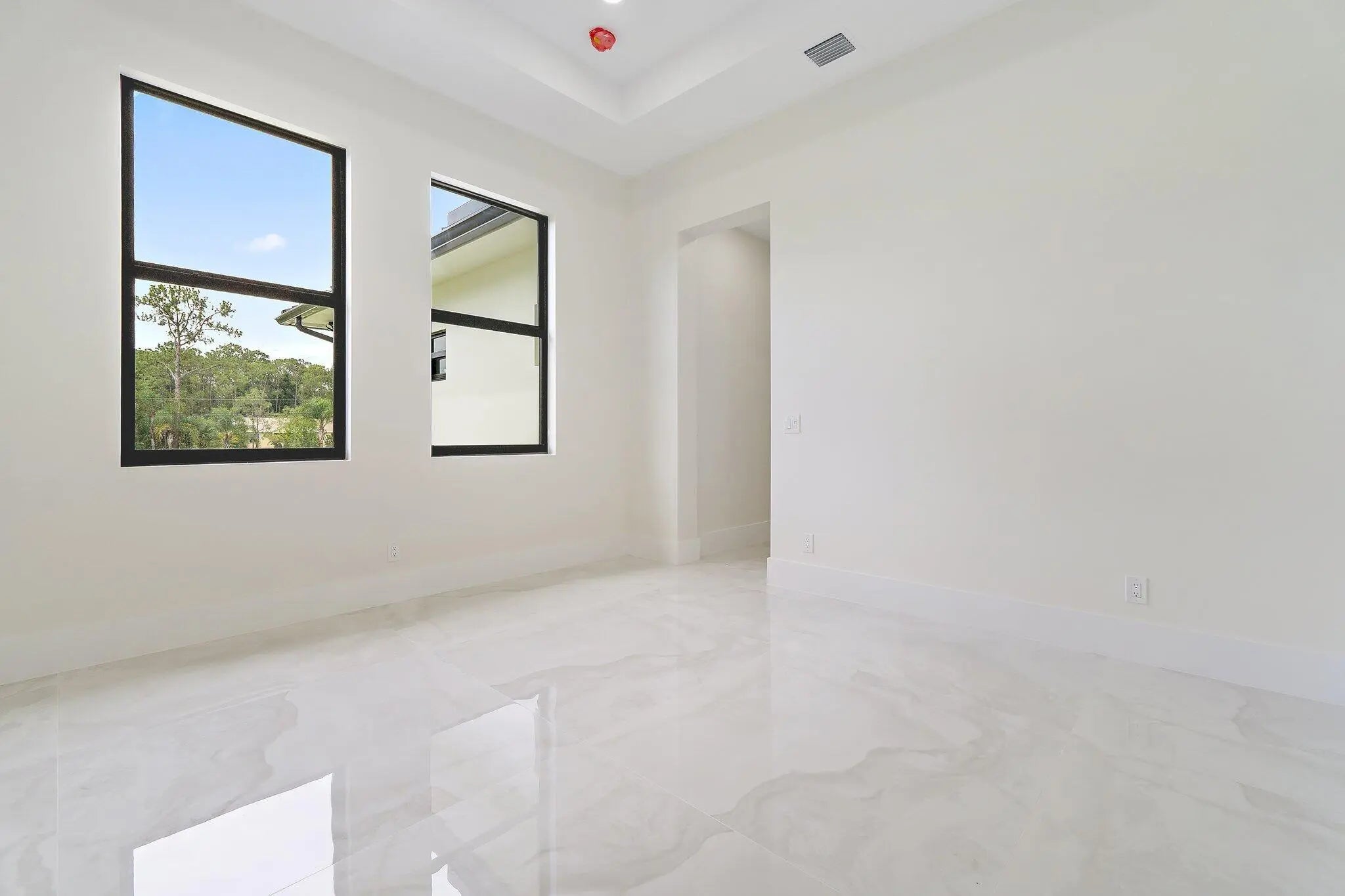 Brand-new 2025 luxury estate on 2.5 acres in Jupiter Farms. Offering 8,230 sq ft of living space + guest house, 6 bedrooms, 8 full & 2 half baths, and over 10,900 total sq ft under roof. Built with uncompromising quality: steel-reinforced CBS construction, impact glass, charcoal metal roof, and foam insulation. Interiors feature 48x48 marble-look tile, soaring 10-16 ft ceilings, custom closets, and level 5 finishes. Gourmet kitchen with dual refrigerators, double ovens, pot filler, wet bar, and 10' cabinetry. Resort-style pool with 6,250 sq ft marble deck, summer kitchen, sauna, gym, billiards, media room, and wine cellar. Guest house with full kitchen & living. Horses permitted, no HOA. A rare opportunity for modern luxury on acreage in Jupiter.