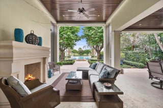 This exceptional 3-bedroom, 3.5-bath home situated on just under a half-acre, offers a stunning view of the 15th fairway. Throughout the home's open floor plan, you'll find custom features and luxurious finishes. The gourmet kitchen is outfitted with top-of-the-line appliances and includes custom cabinetry and an island designed for optimal organization. The spacious lanai features a gas fireplace and overlooks meticulously maintained grounds designed by an award-winning landscape architect. The outdoor area is showcased by a large infinity pool and firepit, offering an extraordinary area for relaxation and entertainment. This move-in ready home combines elegance, functionality, and beautiful outdoor views to create an unparalleled living experience.