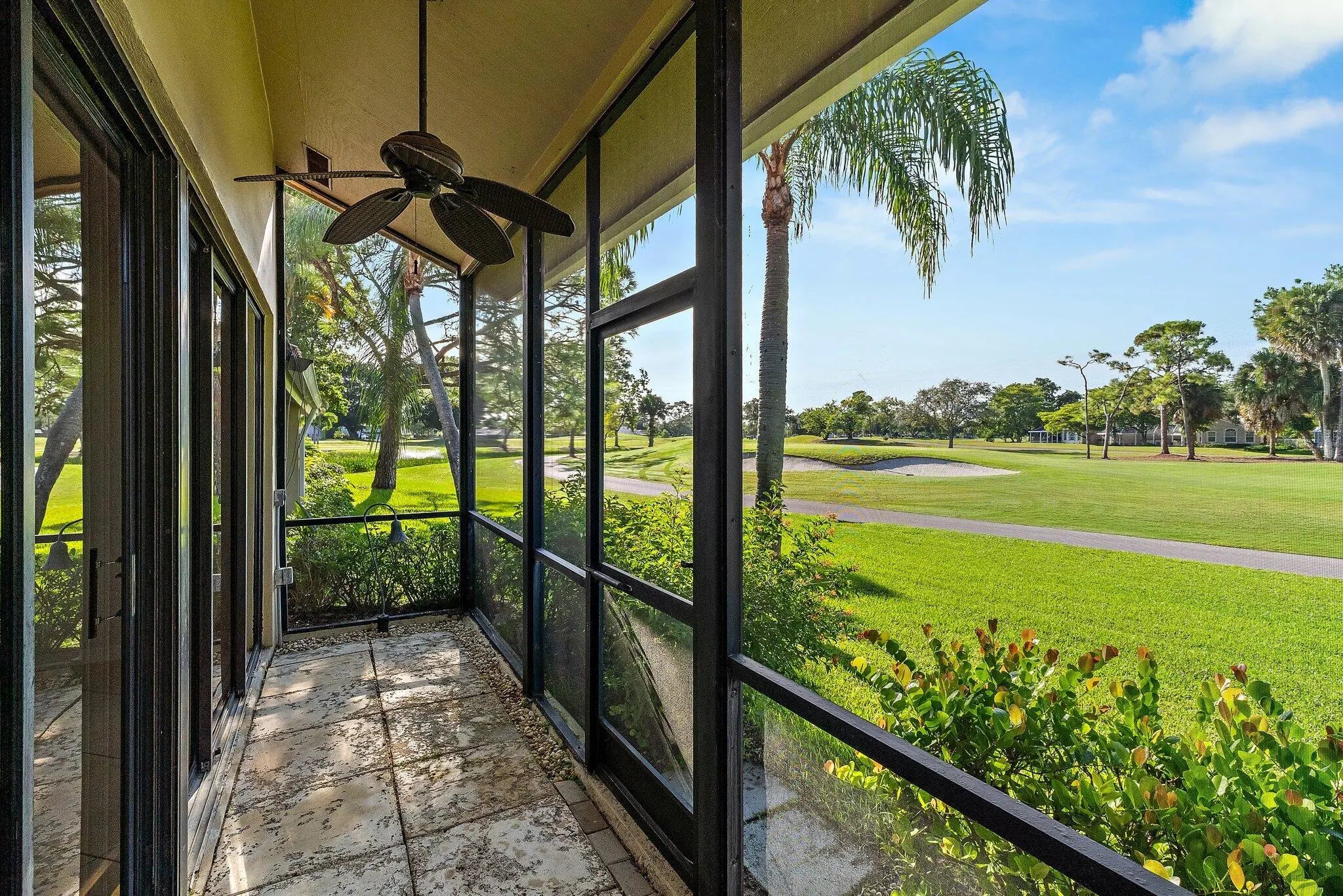 Location Location Location!!!Beautiful 2-bedroom 2-bathroom townhouse in the Patio Homes at the prestigious PGA National. Loft style unit with enclosed master bedroom suite upstairs and full guest bathroom and bedroom downstairs. Updated kitchen and master bathroom. Championship golf course view of the Fazio Course 10th hole at PGA National. Front open porch area with garage. spacious screened in patio with AMAZING golf view. Hot water heater and HVAC system in great shape both 2019. Could be a great full time or seasonal home or turnkey rental within a great rental market.