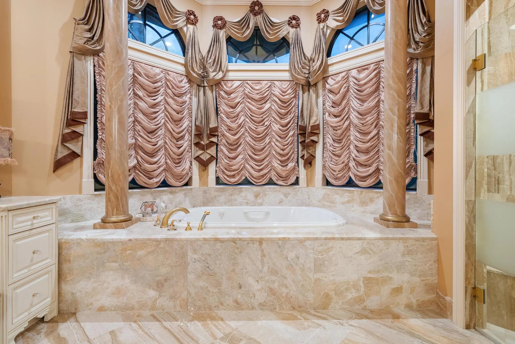Bar, Built-in Shelves, Closet Cabinets, Entry Lvl Lvng Area, Fireplace(s), Foyer, Pantry, Roman Tub, Volume Ceiling, Walk-in Closet, Wet Bar