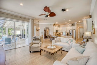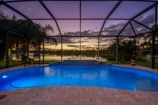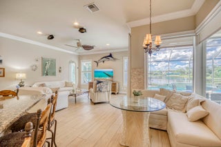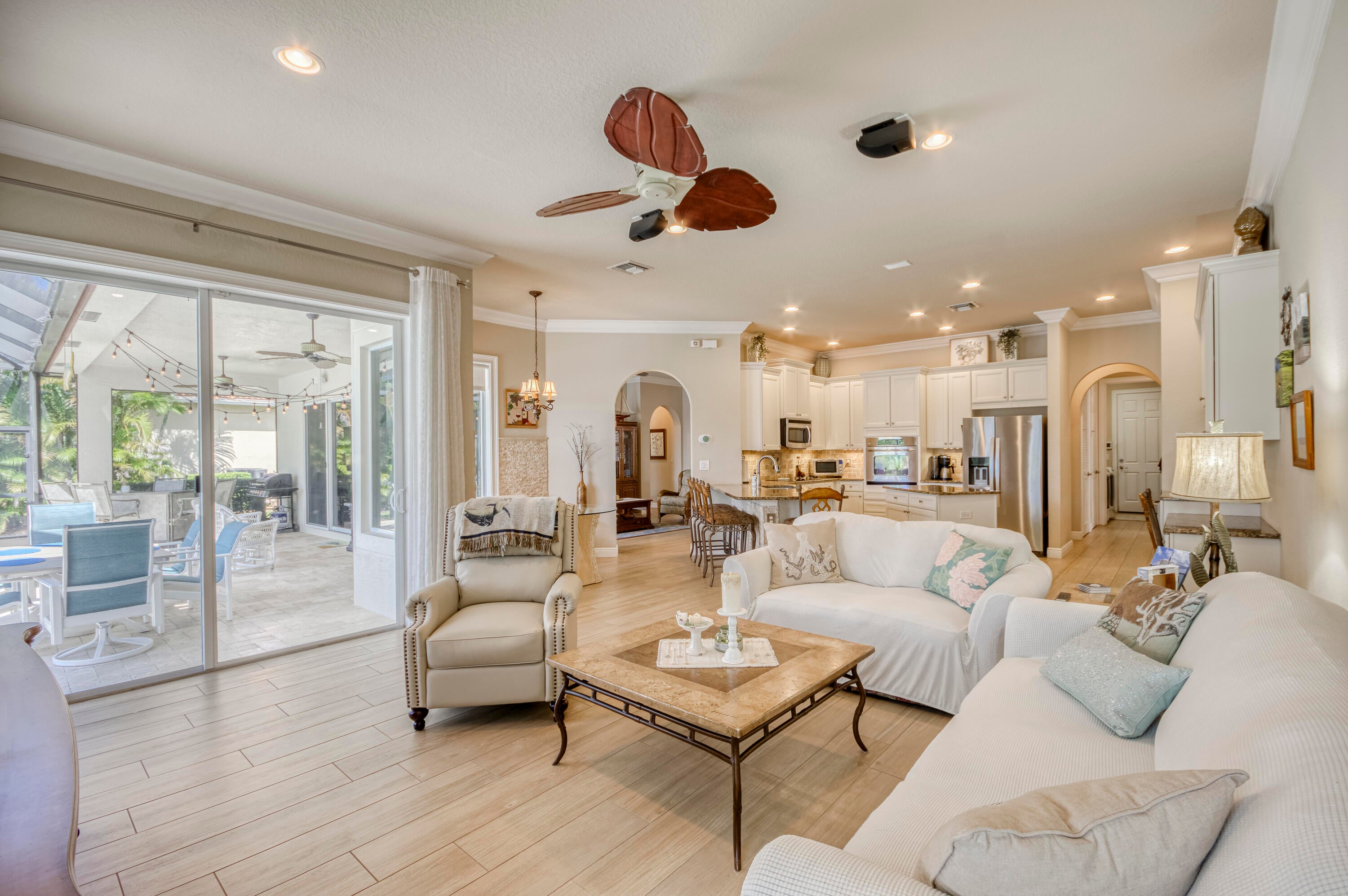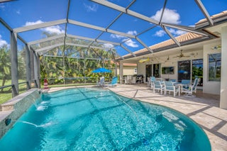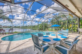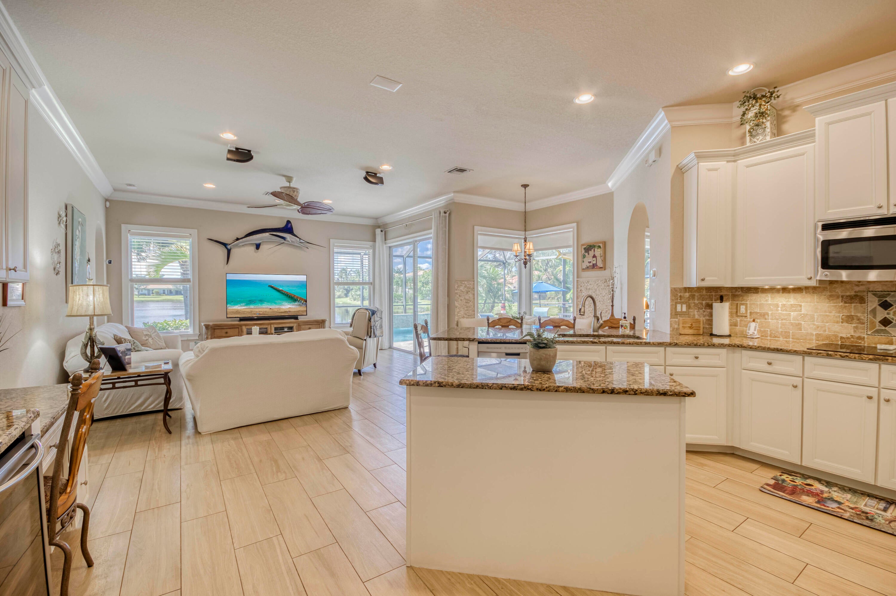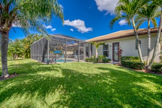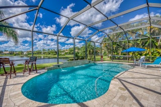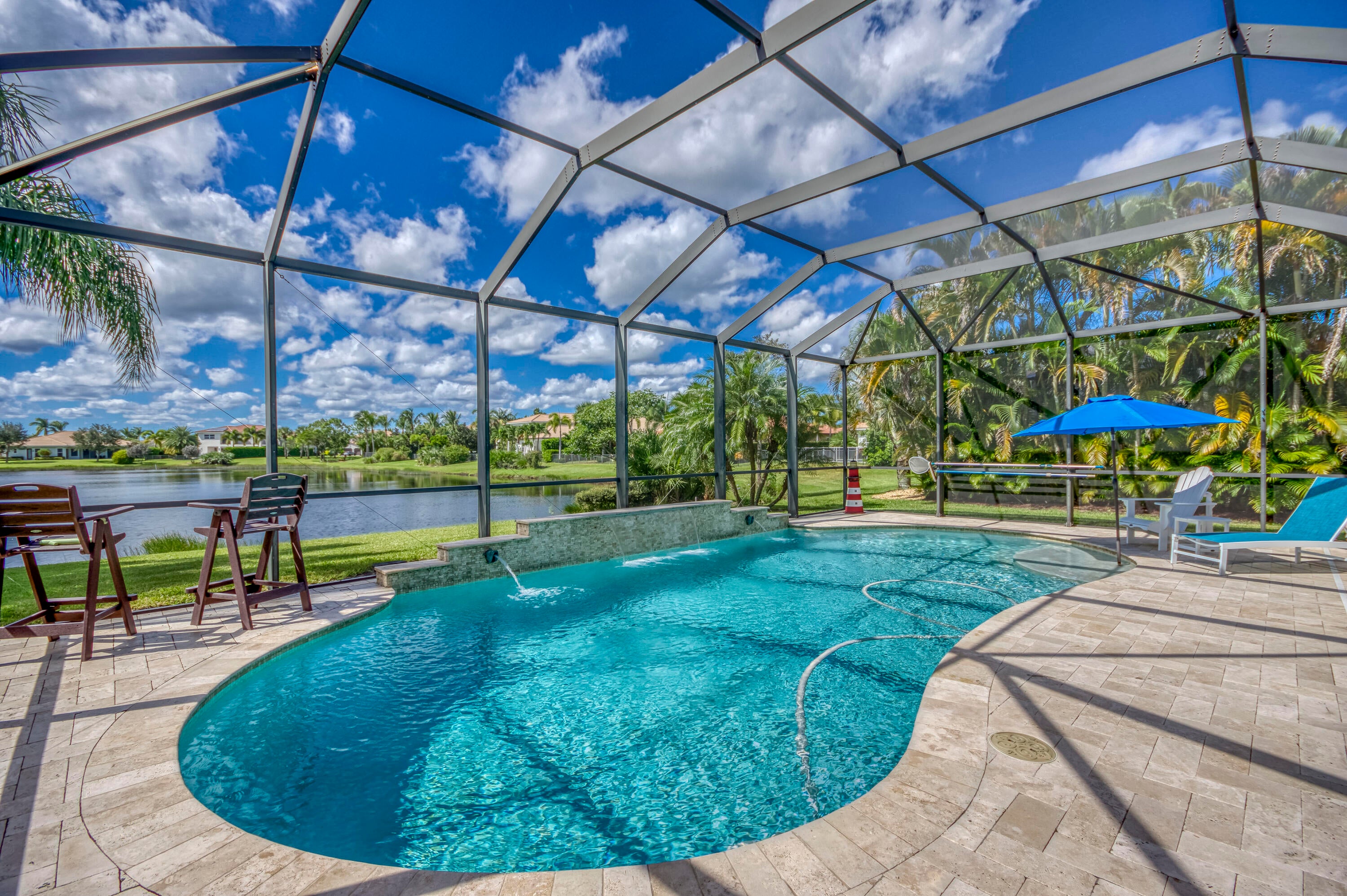 Spectacular lakefront living in Rialto! This prime location offers the WIDEST and LONGEST lake view in Rialto! Experience the best of Florida living with this stunning single-story Stockton model in the sought-after gated community of Rialto. With over 3,000 sq ft of living space, this one-story gem boasts 4 bedrooms + a den/office, 3 baths, a 3 car garage and a private backyard with a lake view that will sweep you off your feet! This popular open floor plan has generous living areas with volume ceilings and bedrooms perfectly located in each corner of the home. The expanded driveway and lush tropical landscaping welcome you home to this solid CBS home with impact glass windows. The beautiful upgrades include porcelain tile floors, granite countertops, tray ceilings, and stylish lightfixtures & ceiling fans. Immerse yourself in the ultimate outdoor oasis with the turquoise saltwater private pool & waterfalls surrounded by travertine pavers and lush tropical landscaping, with a full screen enclosure. It's the perfect setting for quiet sunsets or lively gatherings with friends and family. The expansive primary suite features large dual walk-in closets and sliding glass doors leading to the lanai. Luxuriate in the spa-like primary bath with expansive walk-in shower with dual shower heads, a whirlpool tub, double vanities with a makeup area, and a separate water closet for additional privacy. The kitchen is a chef's delight with ample countertop work space, granite countertops, stainless steel appliances, a center island and bar seating. Rialto is zoned for Jupiter's top rated schools and offers a plethora of amenities to enjoy your best life in Jupiter...including a clubhouse, fitness center, community pool & spa, kids splash zone, tennis, pickleball & basketball. The location is conveniently located near I-95, FL Turnpike, gorgeous beaches, parks, nature preserves, activities, dining & shopping. Sometimes a home just has it all...this is the one you've been waiting for!