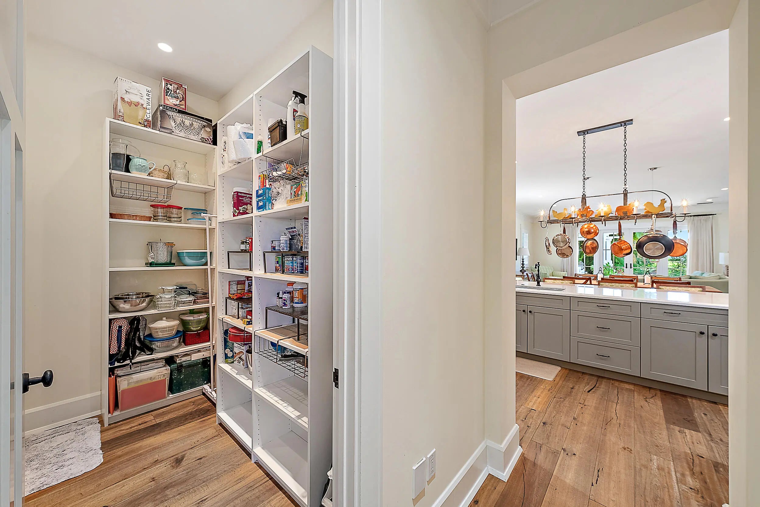 Built-in Shelves, Fireplace(s), Foyer, French Door, Kitchen Island, Pantry, Walk-in Closet