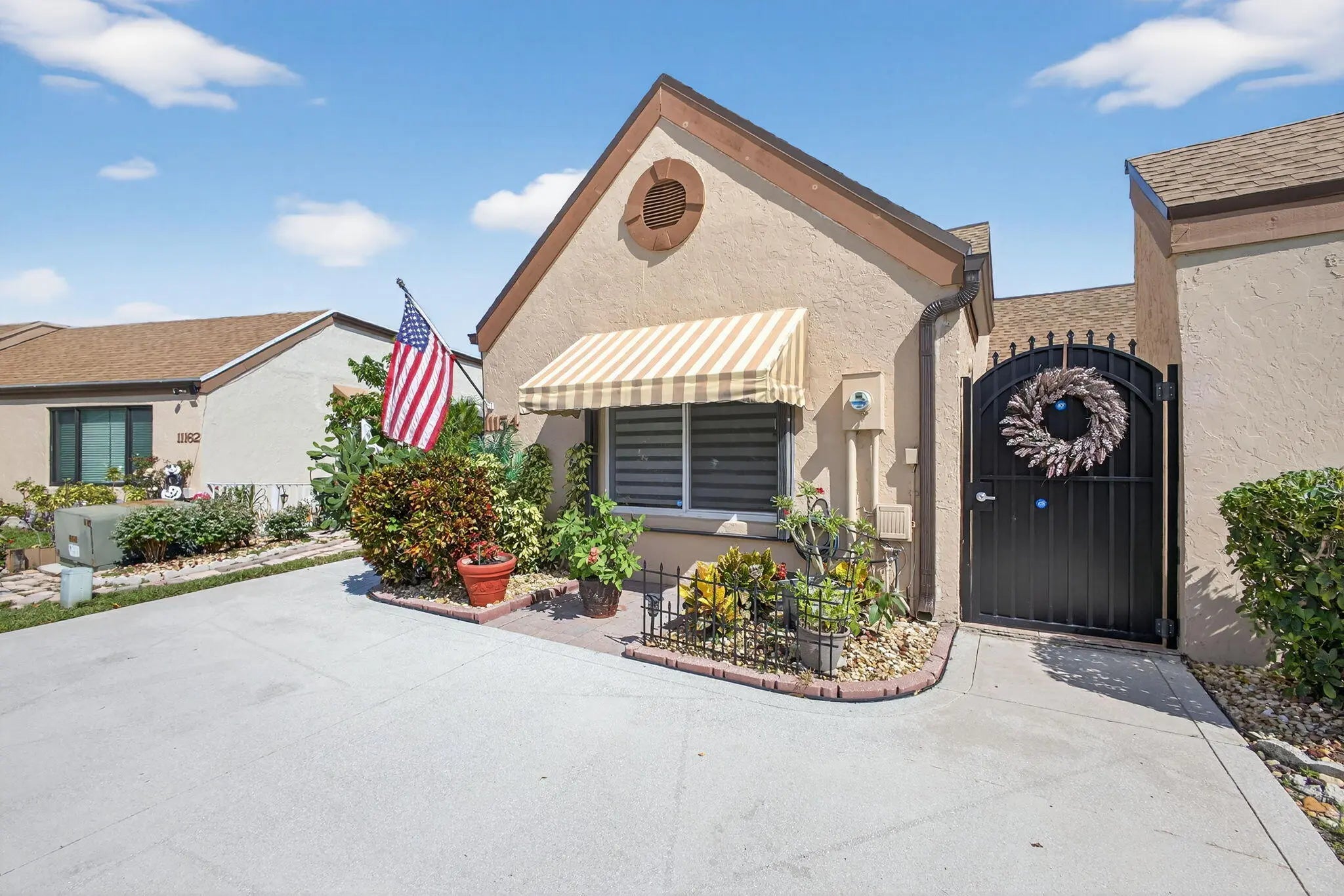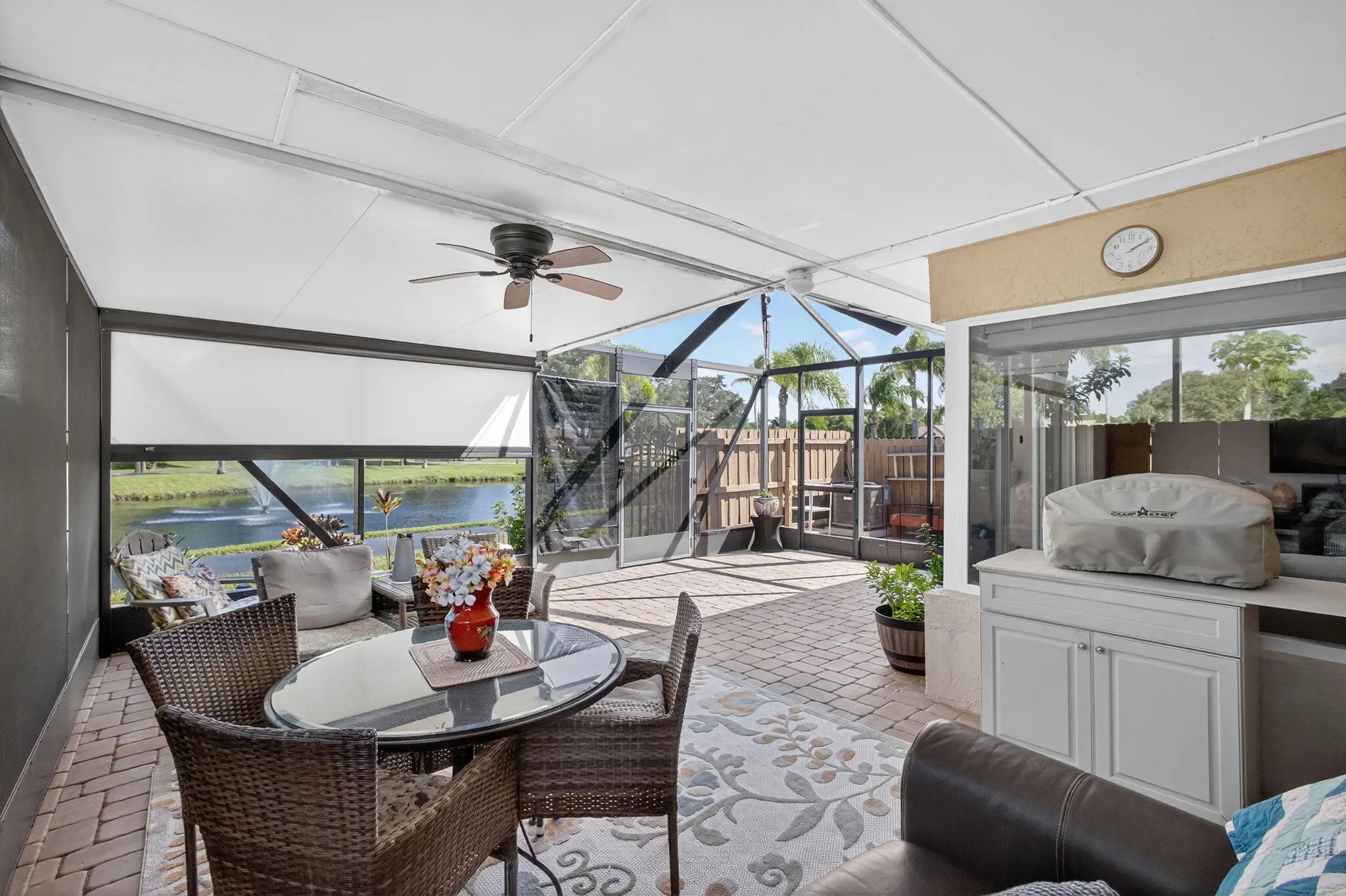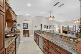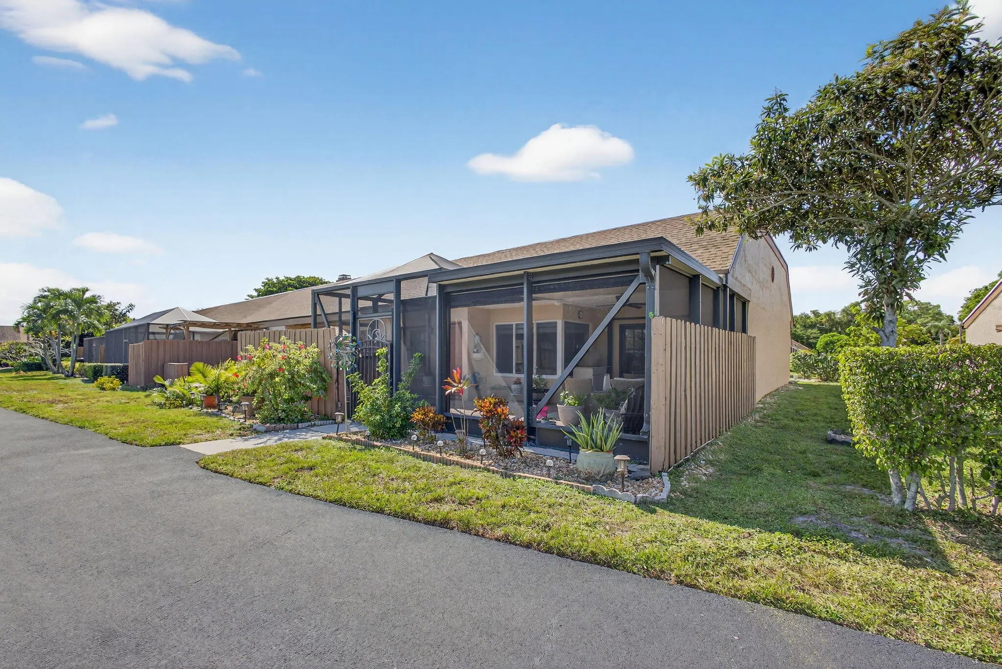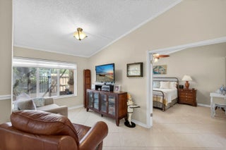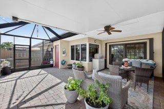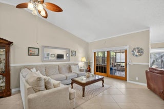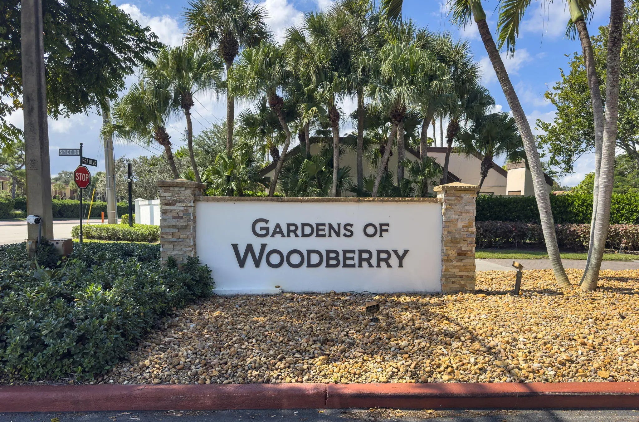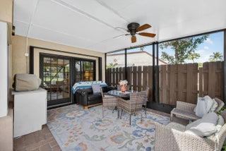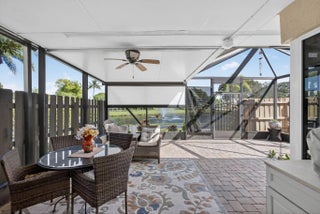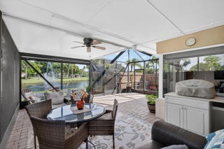 PRICE ADJUSTMENT! One of the nicest villas in the Gardens of Woodberry conveniently located off PGA Blvd W of I-95 & E of Turnpike. Meticulously maintained end unit where you will experience quality upgrades and renovations. Effortless move-in living. New 2025 Roof and gutters, impact windows and storm protection. Newer air conditioner, hw heater, new interior doors, freshly painted interior and exterior. Renovated Woodmode kitchen with granite counters features 2025 GE stainless steel appliances. No Carpet - all porcelain tile throughout. Relax on the screen enclosed patio and lanai with water view.. Screen room features a new remote electric sun/privacy shade. There is an additional private patio located off the kitchen with a storage room & new security gate. 3 car concrete driveway