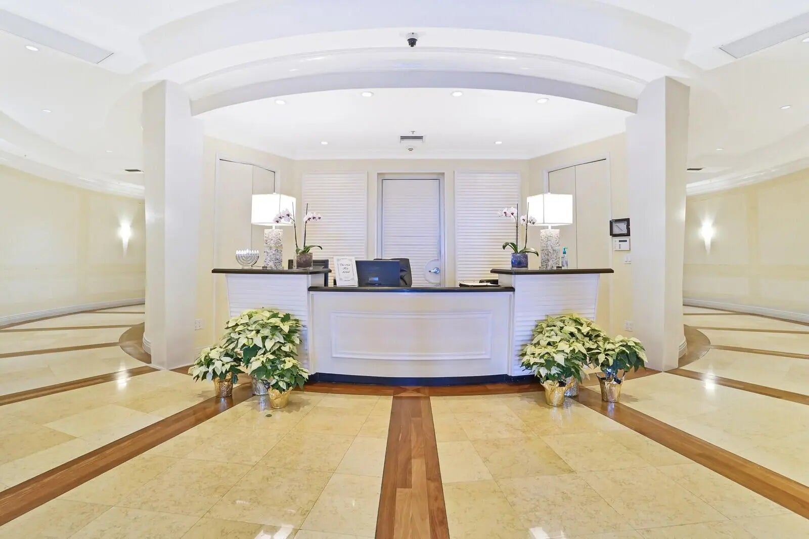 Furnished 2 bedroom 2.5 bath in a Class A Building. 10 ft ceilings, crown molding, che's kitchen with cherry cabinets, granite and stainless steel appliances. Private elevator. Foyer, garden terrace w/whirpool spa, fitness center, club room, 24 hr concierge, valet parking. This property boasts a tropical roof pool & gardens. Sky lounge. Stunning views of Intracoastal each to the ocean & Palm Beach.