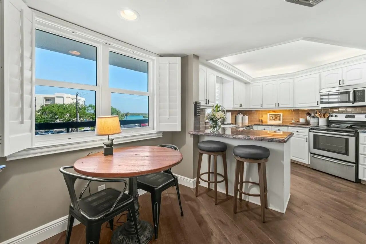 Indulge in the epitome of luxury coastal living with this meticulously renovated 2-bedroom, 2.5-bathroom condo at the prestigious Sandpointe Bay. This expansive 1,639 square foot condo & enclosed balcony retreat boasts breathtaking panoramas of the ''clearest waters in the south,'' a distinction celebrated by Southern Living. Complete with new impact windows, the condo's interior is adorned with wood floors, and plantation shutters. Designed for entertaining, the home includes a kitchen w/ intracoastal views, eat in kitchen, custom bar, and dining area. Both bathrooms have been completely transformed with custom cabinets, quartz countertops, & stylish new tile flooring, providing a spa-like retreat. Sandpointe Bay is a resort-style community that offers an array of amenities, including a