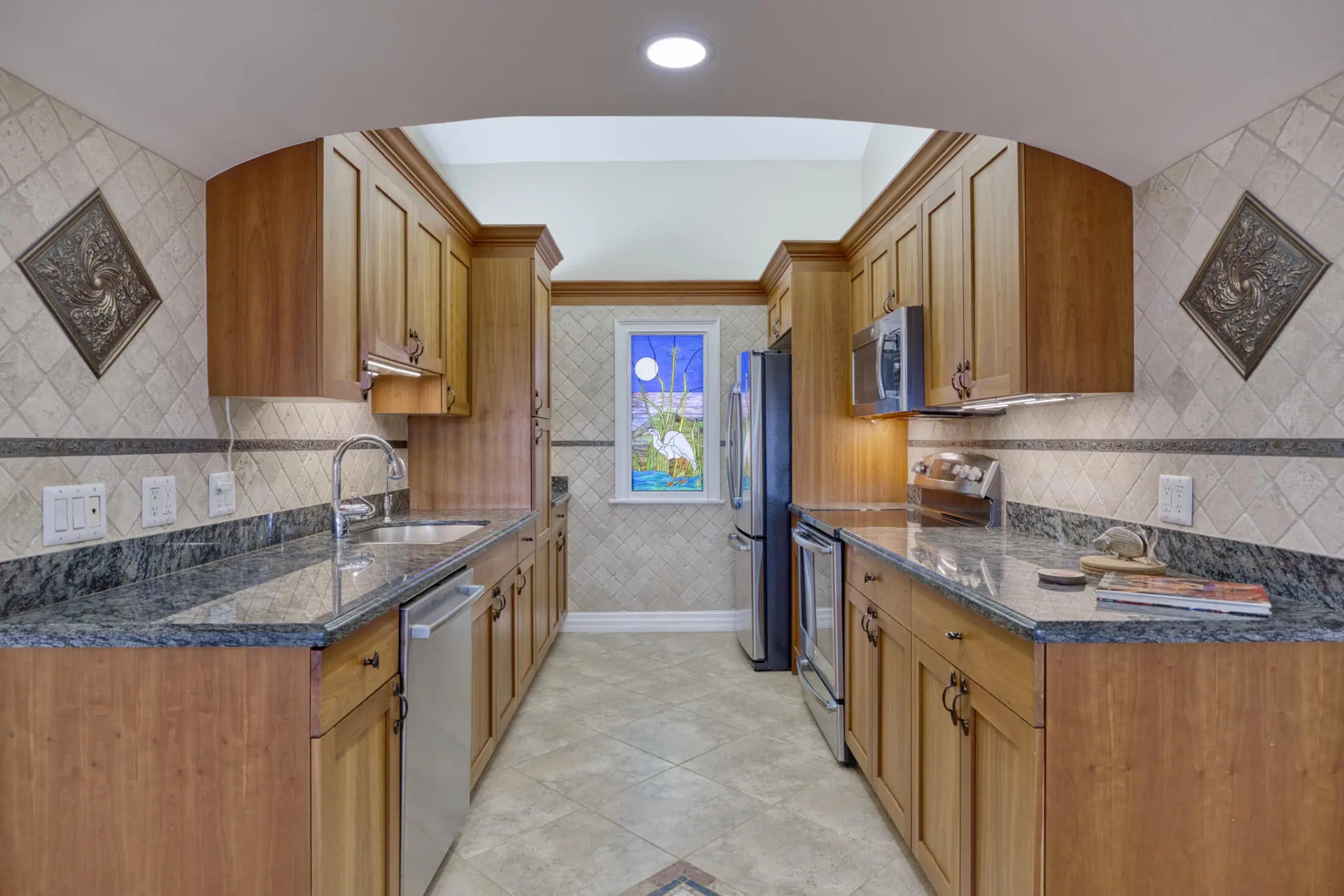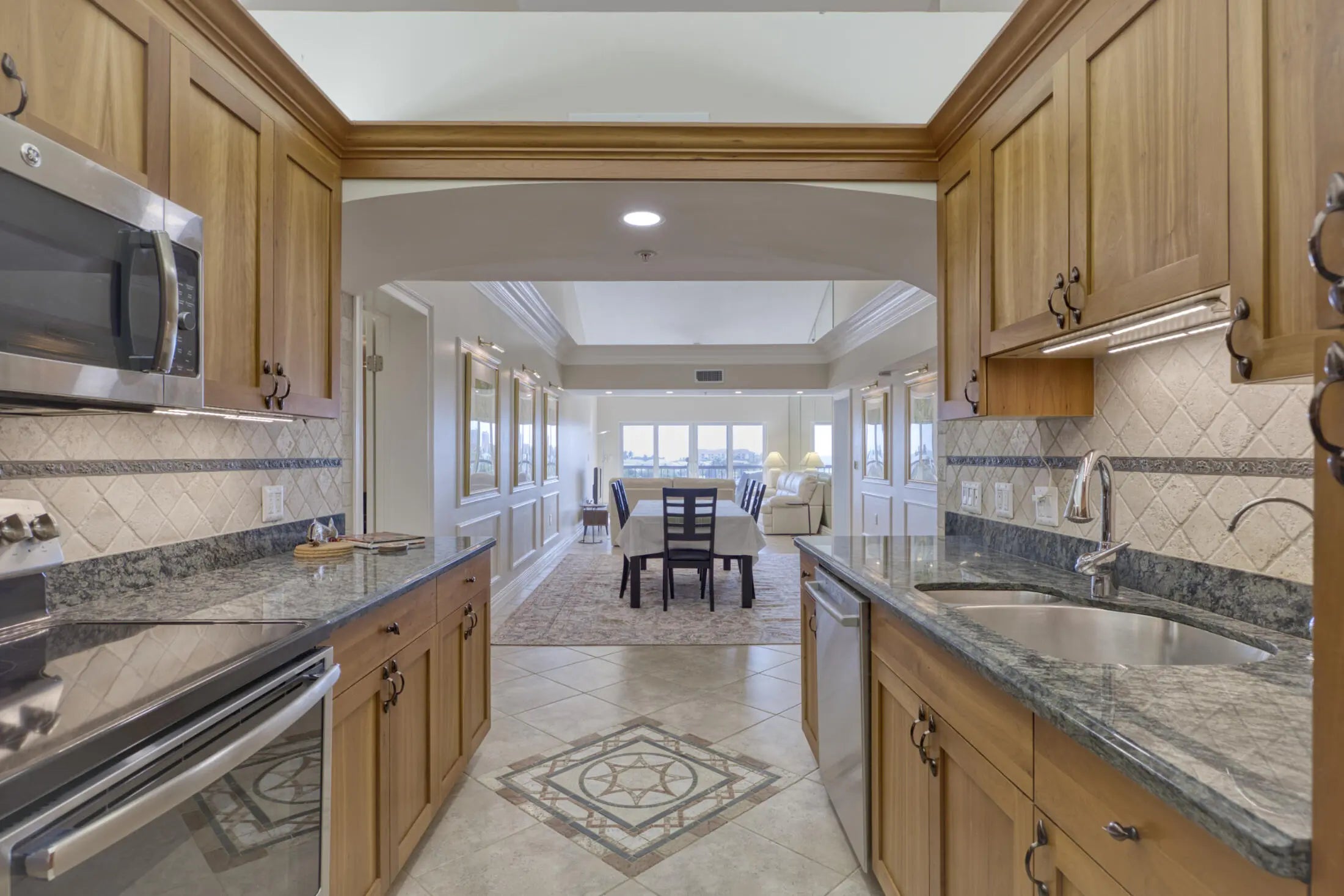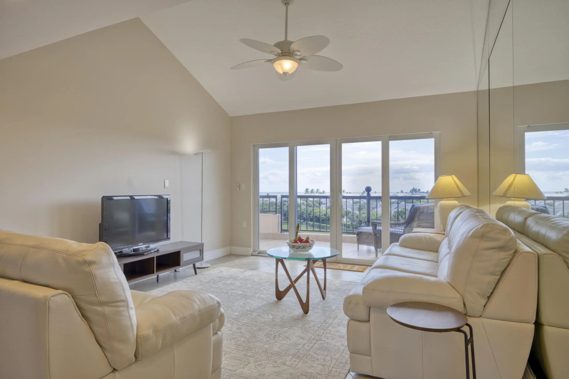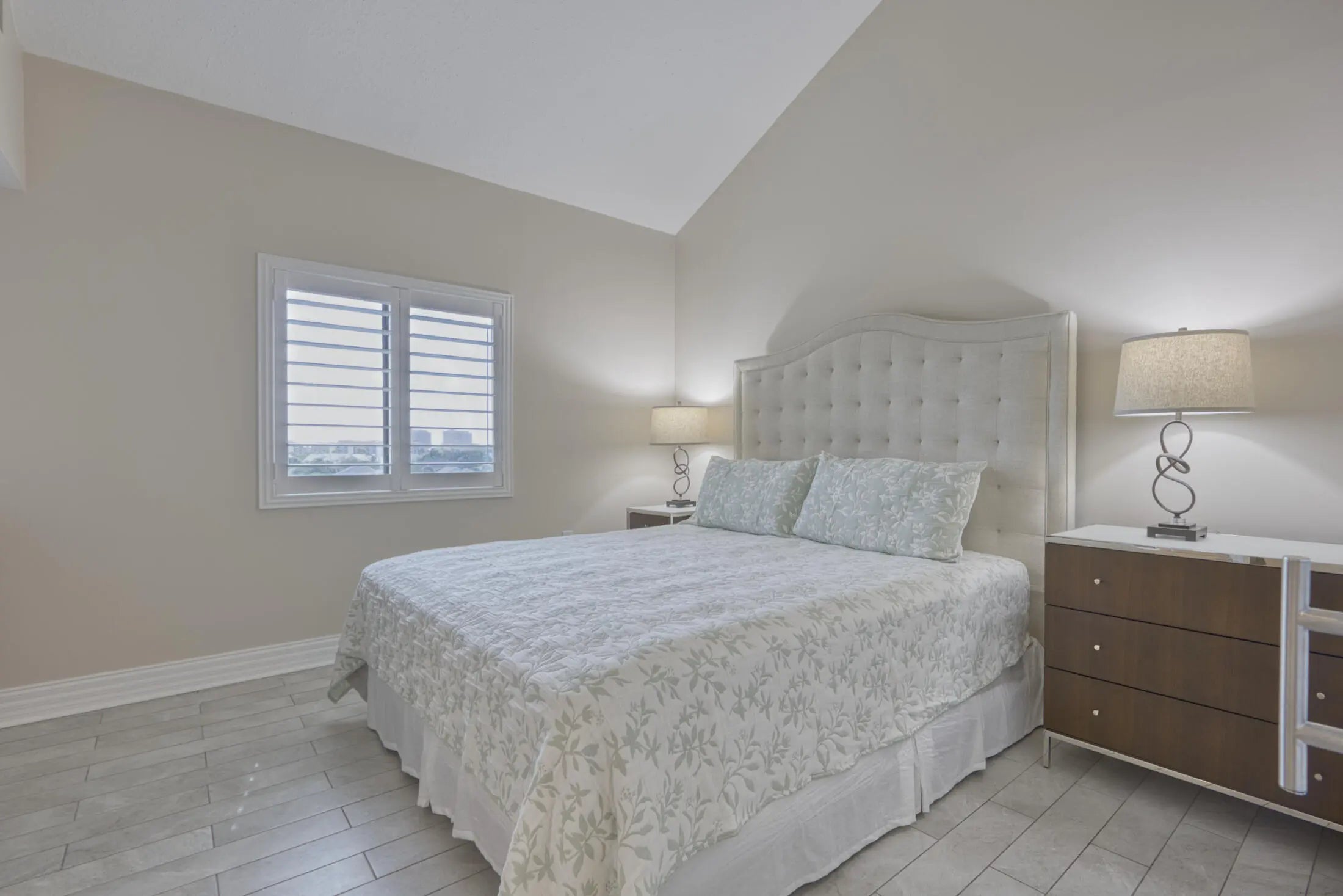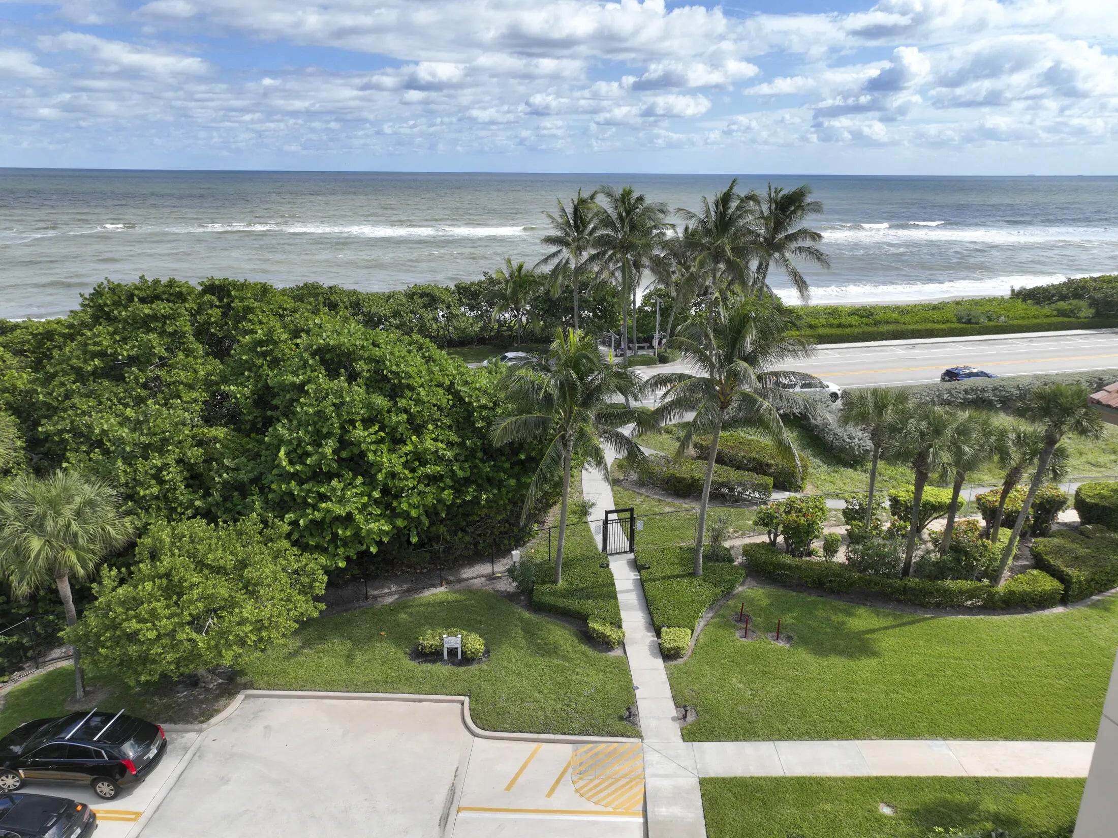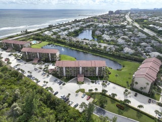 Welcome to paradise in this rarely available penthouse, offering stunning views of the ocean and lake. Featuring soaring 20-foot vaulted ceilings and an expansive open floor plan, enjoy serene views from the oversized balcony, complete with wood-look tile, hurricane-impact sliding doors, and an electric retractable awning, perfect for sunny Florida days. The gourmet kitchen is equipped with custom cabinetry, granite countertops, crown molding, and stainless-steel appliances. The spacious primary suite includes an updated en-suite bath and a walk-in closet with built-in shelves. A versatile laundry room with space for a home office or extra storage. The amenities included a heated pool, tennis, and pickleball courts. Enjoy the private gated walkway to the sand and surf.