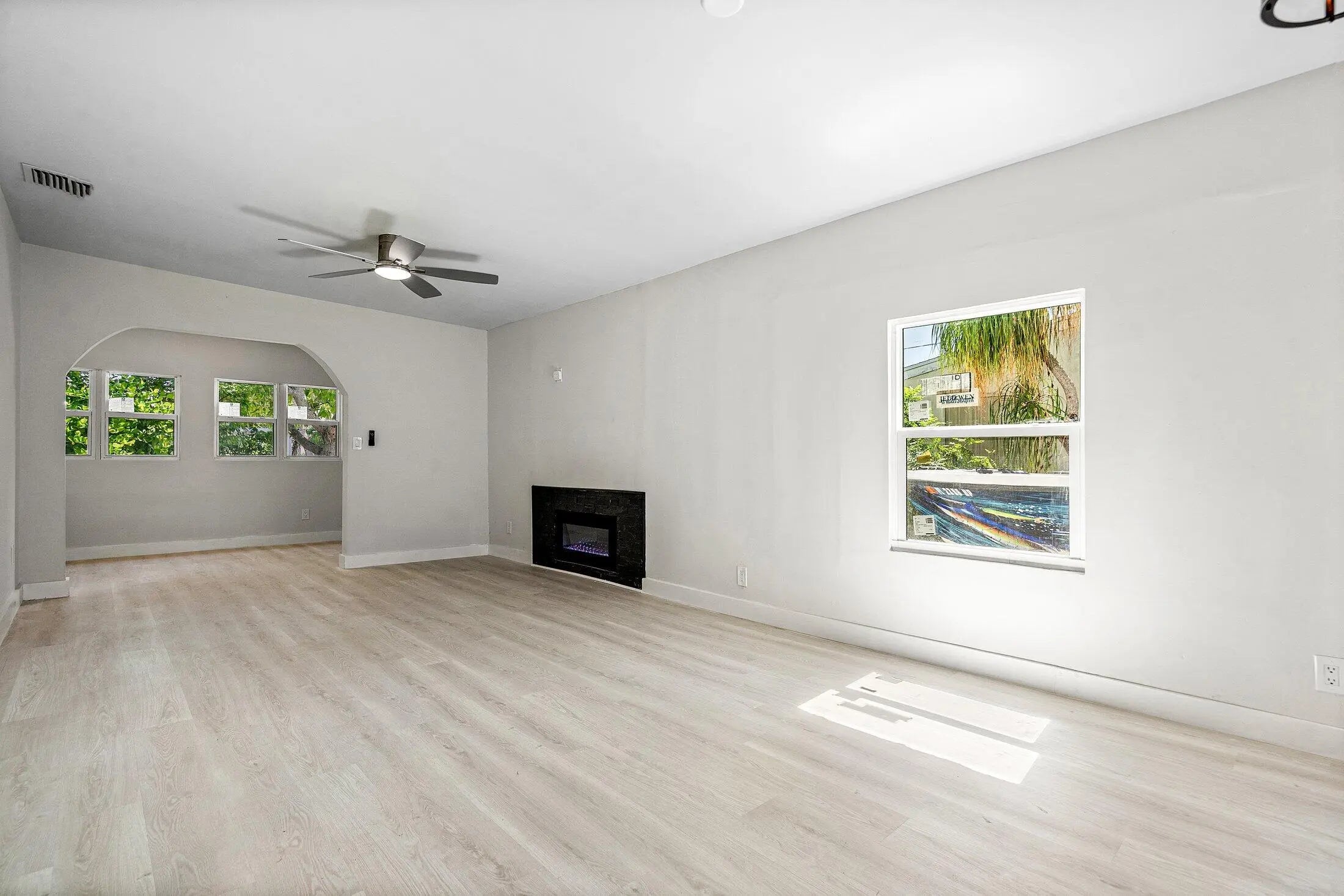 Step into your own private coastal sanctuary with this fully remodeled Spanish-style gem, perfectly positioned minutes from the Beach, I-95 and the vibrant energy of Downtown West Palm Beach. This turnkey residence masterfully blends historic charm with modern peace of mind, boasting impact windows, a sleek motorized driveway gate, and a secure carport. Inside, the home glows with high-end finishes, from the brand-new chef's kitchen and designer bathrooms to the cozy, character-rich fireplace.The sprawling, private backyard serves as a tropical oasis featuring a spacious shed for extra storage and plenty of room for outdoor entertaining.