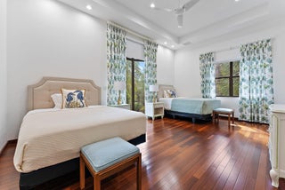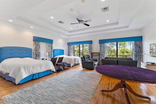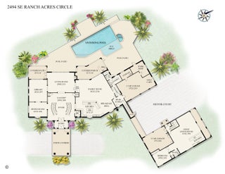 **JUPITER'S PREMIER RANCH ESTATE** Sited on 7.6 Acres of verdant grounds, this grand residence 'Eagle's Nest', has been meticulously + thoroughly RENOVATED to PERFECTION. A manned guard house welcomes you to RANCH COLONY, a private enclave offering Equestrian trails and 2 nearby Championship golf courses. An Owner's gate +350' driveway lead to the stately 11,402 sq. ft home. A grand entry foyer w/ 28' ceiling is graced by brilliant marble floors and a dramatic double staircase of Brazilian wood. Classic design elements incorporate timeless elegance + modern luxury. The interiors have been finely curated for an elevated living experience, offering a spacious + harmonious floor plan and abundant natural light. The main living areas are grand in size and epitomize tasteful elegance. The hugeopen kitchen is a Chef's dream, featuring a Wolf 8 burner gas range, triple ovens, bespoke marble countertops and a grand walk in pantry. Adjacent dining alcove + expansive family room are perfect for entertaining. The hub of the family room is the Bar, a stylish nod to fine living. Floor to ceiling sliders and covered loggia provide a seamless blend of indoor to outdoor living. The upper floor gallery leads to each of the 3 bedrooms + 2 additional 'flex space' rooms. A hallway with morning bar (w/ Sub Zero undercounter fridge) leads to the Owner's suite: this Primary bedroom suite offers 1500+ SF of sumptuous luxury, featuring classic wood floors, a fireplace, private gym + seating area and a spa-like bathroom w/ Roman tub and marble floors + countertops. A luxe private balcony showcases breathtaking views of lake + preserve. Two additional spacious bedrooms w/ ensuite baths complete the upper main house. A second floor breezeway leads to the Guest House, a stand alone residence featuring a great room living area w/ large kitchen and 4 generous ensuite bedrooms. Outdoor lanais complete the modern rustic ambiance. This property is truly unrivaled - blending exquisite scenic vistas w/ ultimate privacy, security + tranquility. There is a lake on property, stocked with fish. Lush greenery + highest end landscaping is enhanced by custom uplights throughout the property. A full Feature sheet is available detailing upgrades + mechanicals. A beautiful life awaits you in the magical community of Ranch Colony, located near the heart of Jupiter... yet surrounded by country roads, horse trails, low stone walls and the majesty of wildlife. A true 'legacy property'!