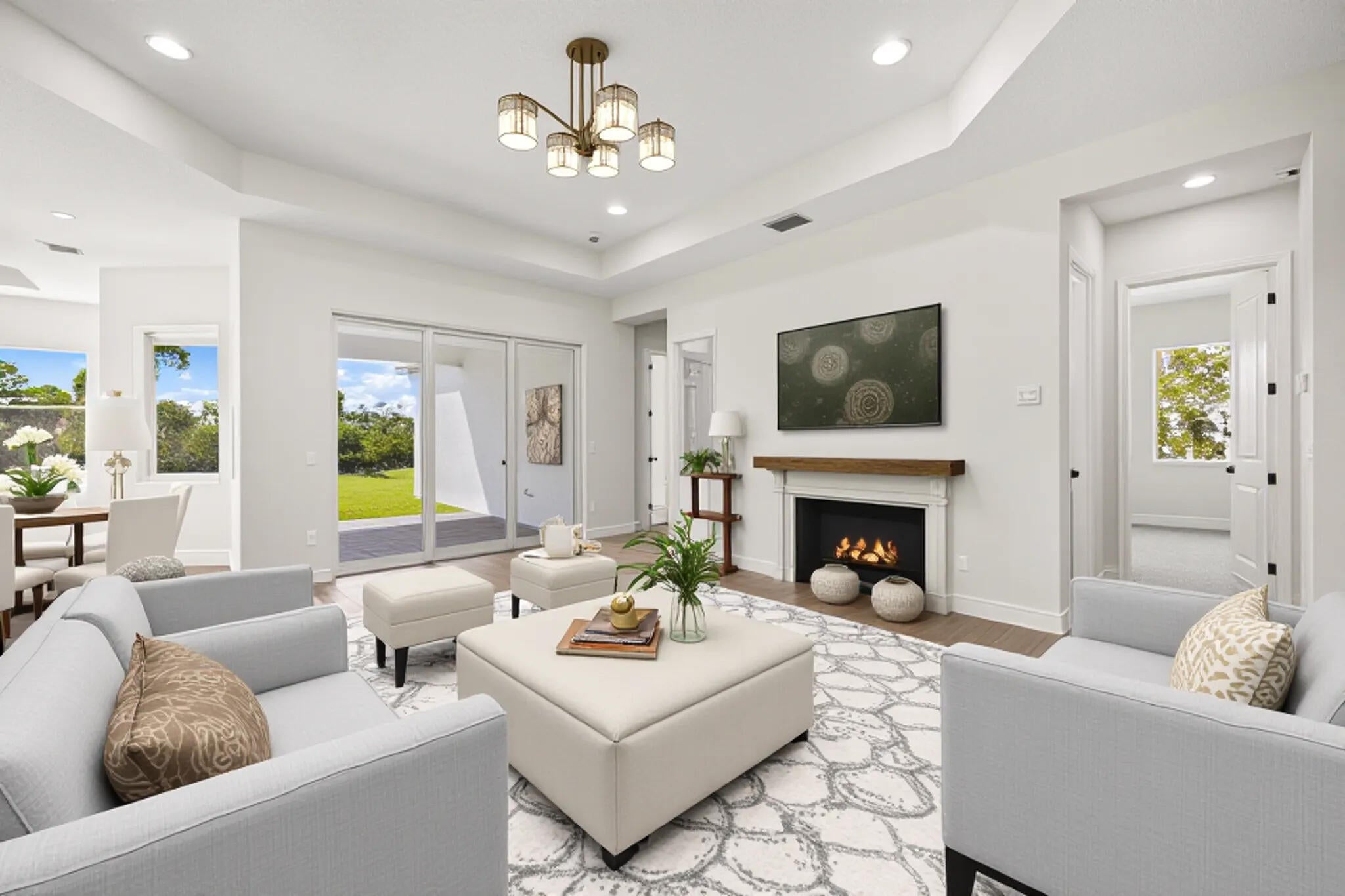 Discover luxury living in the heart of Westlake! Situated on an oversized cul-de-sac homesite in the acclaimed Pines of Westlake community, this stunning one-story residence offers 5 spacious bedrooms plus a hobby/bonus room, and 4 full baths all within a smart, open-floor footprint. The home features impact-resistant windows and doors for peace of mind, and a fully upgraded gourmet kitchen showcasing crisp white shaker cabinetry extending to the ceiling, sleek quartz countertops, premium built-in appliances and a large center island ideal for entertaining. Laminate flooring flows through the main living areas, creating a seamless, modern aesthetic.Outdoor living is elevated here, tucked away at the end of the cul-de-sac, your home sits on a private lot, offering quiet backyard space and great curb appeal. The community provides resort-style amenities including a clubhouse, pool, bocce and basketball courts, walking trails and dog-friendly areas, all managed with an HOA fee that includes recreation and reserve funds. Built in 2025, this home is truly turnkey and move-in ready offering the very best in new-construction finish and design without the wait. It's a rare opportunity to enjoy one level living, modern luxury and a premium lot in a master-planned Westlake community. If you're looking for a show-stopping home that blends style, functionality and community lifestyle this is it. Schedule a tour today and make it yours!