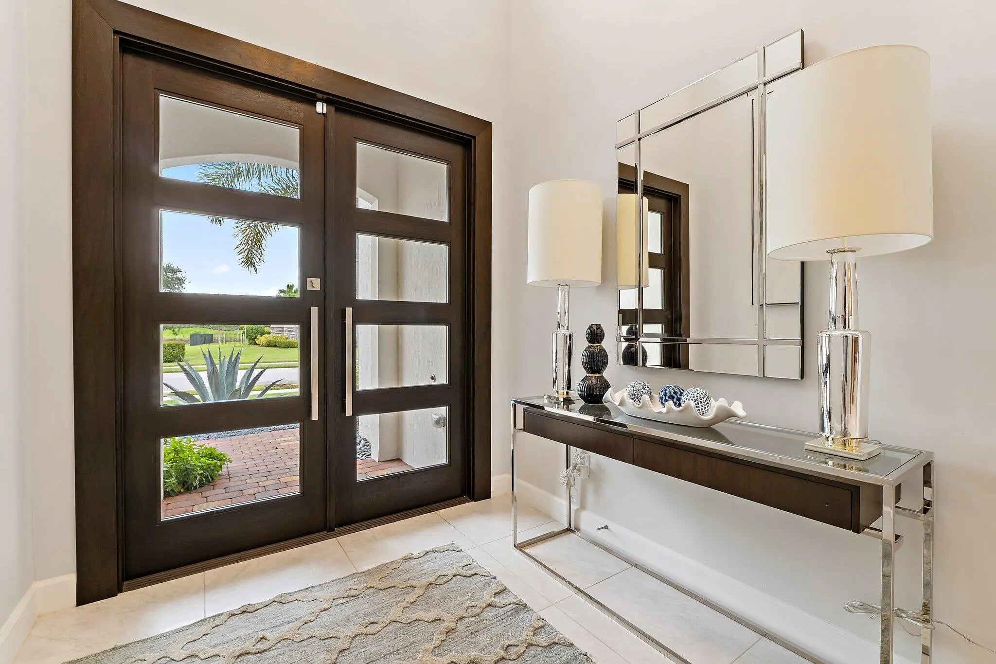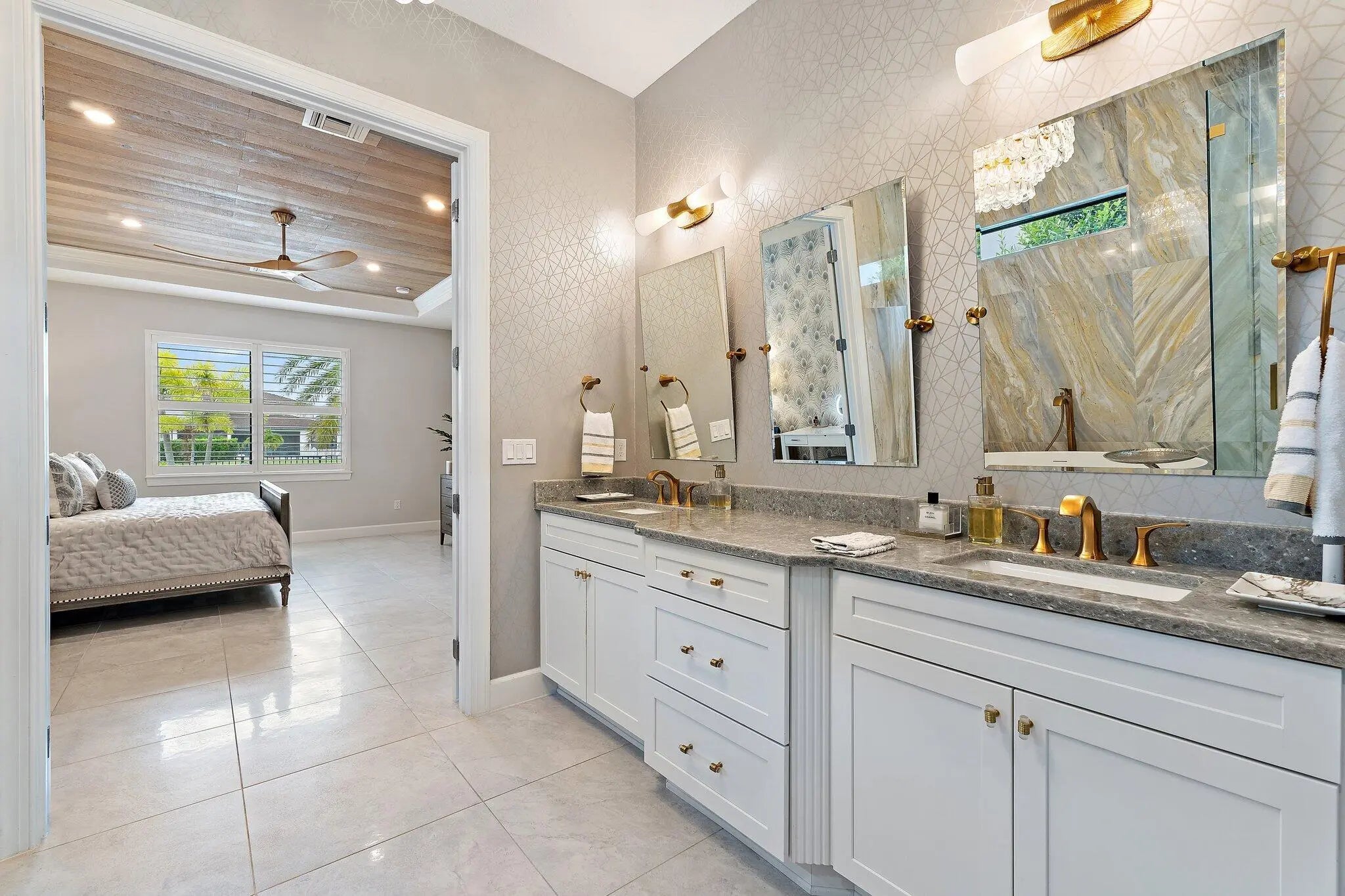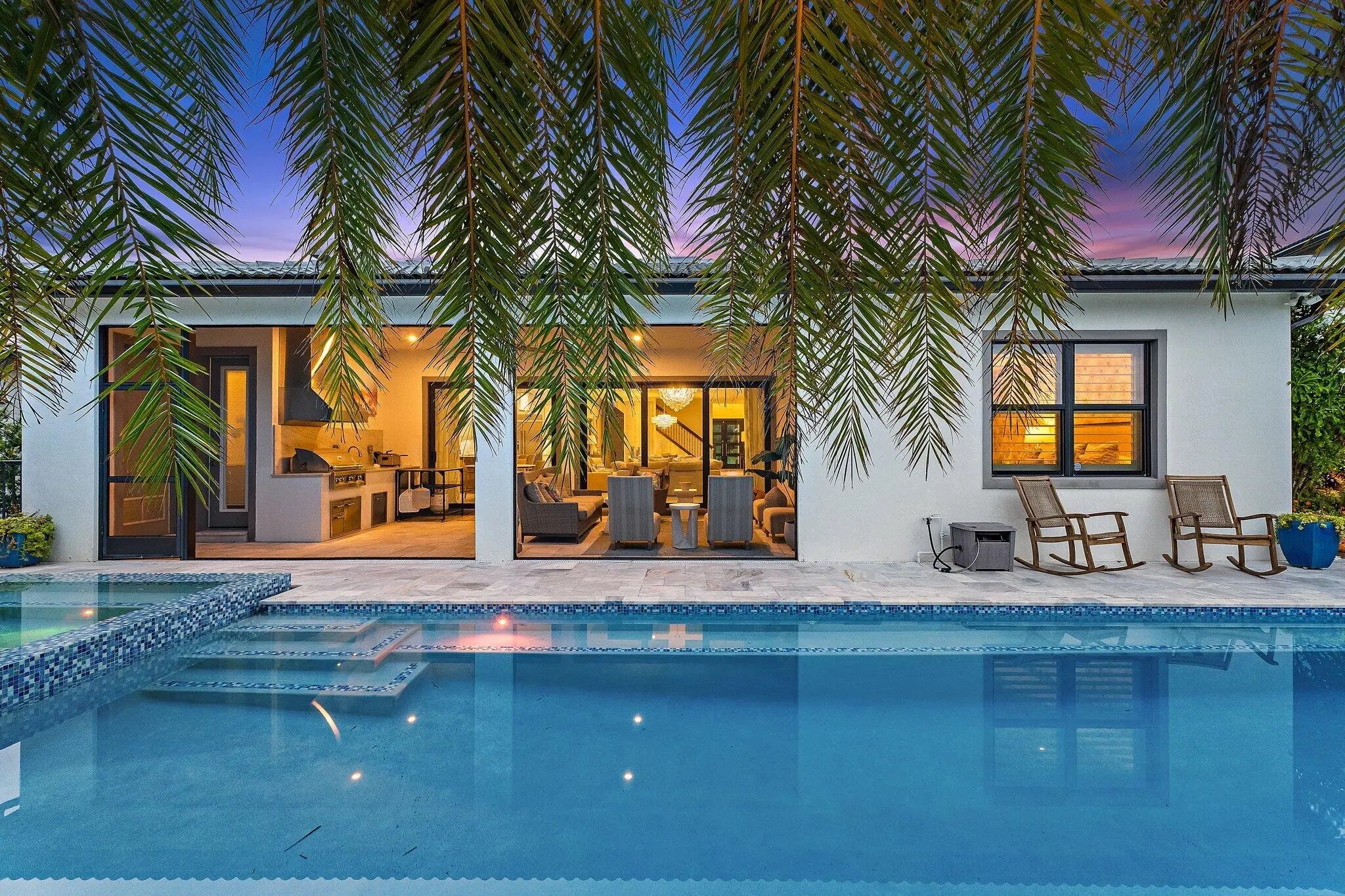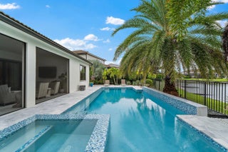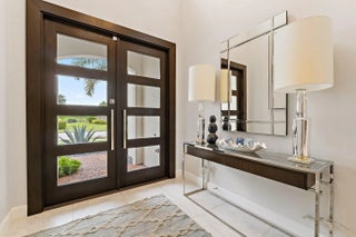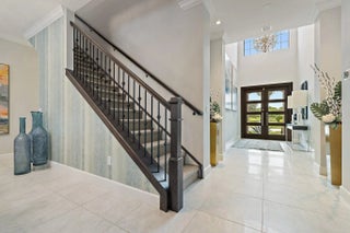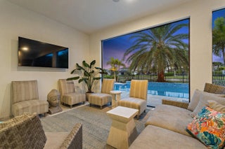 This 2-Story Stonewater model home has all the bells and whistles desired by the most sophisticated buyers. Mahogany and beveled glass, impact double entry doors; crystal chandeliers in the foyer, dining room and great room; Sea Pearl quartzite countertop at kitchen island; custom European wallcoverings in the great room, den, and primary suite; and full height marble primary bath wall with freestanding tub and custom plumbing fixtures are just a few examples of next level interior finishes. The outdoor spaces are amazing too with a custom glass tile, saltwater pool with infinity edge hot tub; textured marble sundeck; summer kitchen with Artisan gas grill, stainless full-height hood, kitchen sink, and Perlick beverage cooler. Oversized lush landscaping and LED landscape and pathway