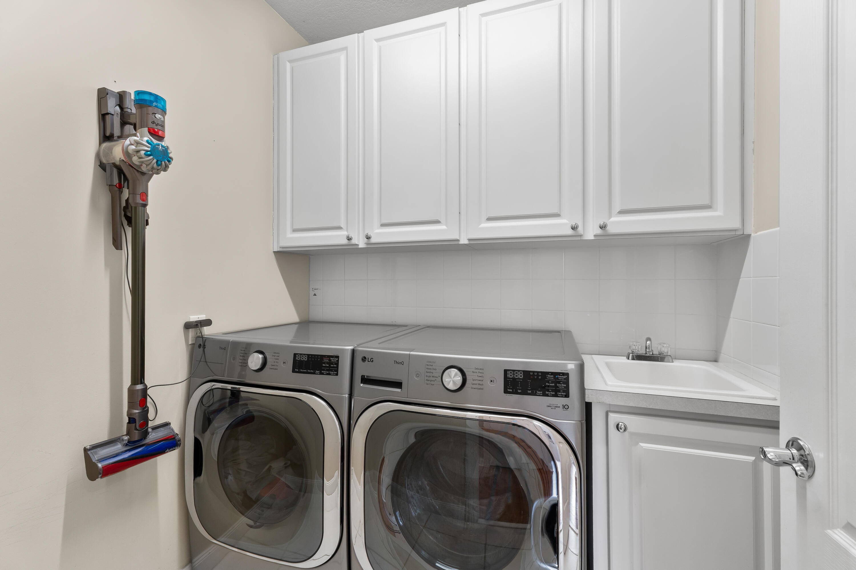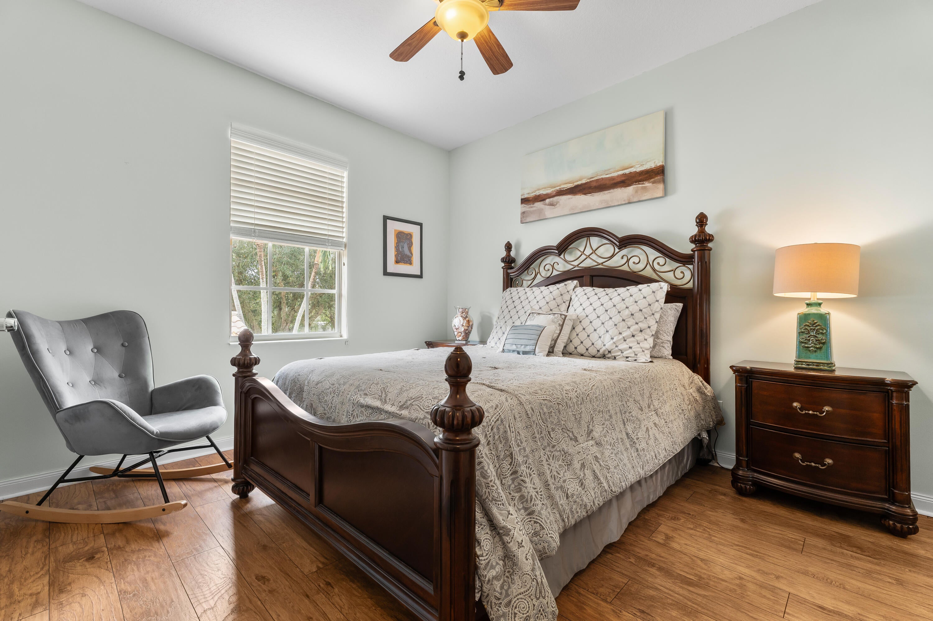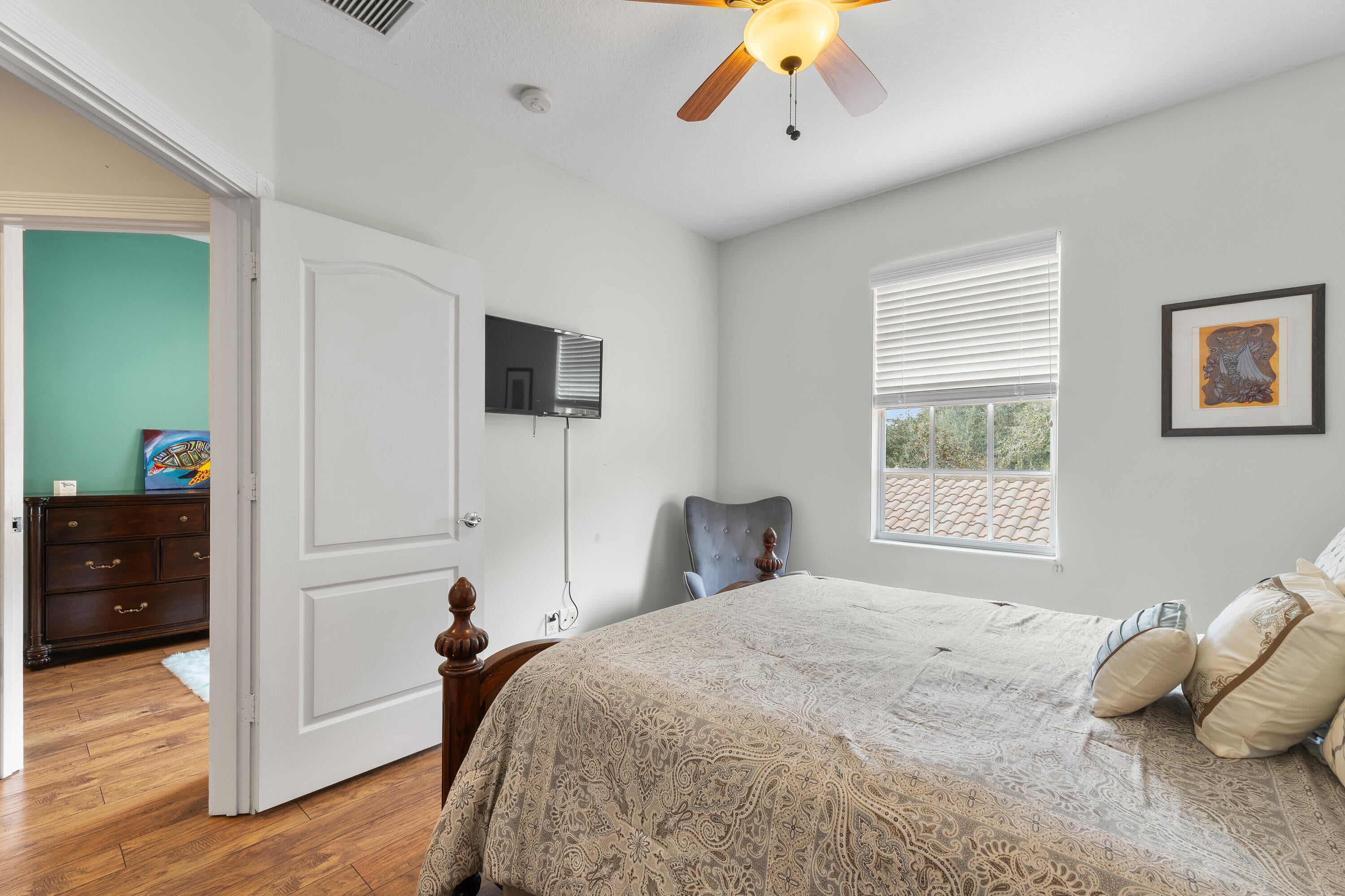Discover one of the most sought-after floor plans in Tuscany at Abacoa -- a beautifully maintained four-bedroom, three-bath townhome with a bedroom (and walk in closet) conveniently located on the first floor. This layout is rarely available in Abacoa, where most townhomes offer only three bedrooms all located on the second floor. The thoughtful design provides exceptional versatility for families, guests, or those seeking single-level living. Built by DiVosta, known locally for solid steel-reinforced concrete construction on both levels, this home provides exceptionally quiet living, long-lasting structural integrity, and true peace of mind during storms. Enjoy the benefit of a two-car detached garage that allows for a spacious private patio, ideal for entertaining or relaxingoutdoors. Inside, you'll find laminate wood plank flooring throughout living areas and bedrooms, a kitchen updated with granite countertops, and a renovated primary shower. Recent upgrades include a new LG washer & dryer, just installed LG refrigerator, and LG dishwasher for modern convenience. Step outside to one of this home's most remarkable features a wide-open green space just beyond your back patio, perfect for children to play or for enjoying time with pets. Few homes in Tuscany offer such a private and expansive setting, making this one truly stand out. The property is also located on a no-outage priority grid, meaning power is restored quickly and in many cases not lost at all during storms or area outages. The location is unmatched. This townhome is walking distance to the community's tennis courts, playground, skate park, and Jupiter Middle School, and just a short stroll to Roger Dean Stadium and Downtown Abacoa with its restaurants, shops, and mini golf. Here, you get the best of Abacoa living comfort, convenience, and incredible outdoor space all in one rare offering.