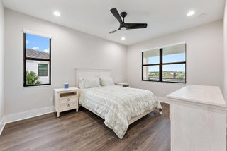 Built in 2023, this exceptional Vasari model is ideally situated on a rare long-lakefront homesite, offering some of the most desirable and expansive water views in the community. This spacious floor plan features 5 bedrooms, 5 and a half bathrooms, a 3-car garage, a club room, a large loft, and an additional office/craft room on the second floor, providing incredible flexibility for today's lifestyle needs.Thoughtfully upgraded, the home showcases designer finishes including custom wallpaper, curated lighting, and enhanced ceiling fans. The open-concept kitchen designed flows seamlessly into the great room and casual dining area, with a formal dining room nearby for gatherings and entertaining.The first floor includes the primary suite with serene lake views and direct patio access, plus a guest bedroom and full bath, offering convenience and comfort for visitors or multi-generational living. Upstairs, the layout includes three en-suite bedrooms, a spacious loft, and a dedicated office/craft room. Outdoor living is a highlight, featuring a covered travertine patio, a private pool and spa with outdoor kitchen, and a large second-floor balcony overlooking the long lake, creating an impressive backdrop for entertaining and everyday enjoyment. Additional features include impact windows and doors, a three-car garage, fenced in backyard and an easement on the west side for added privacy and green space. Located in highly desirable "Artistry" built by Kolter, this manned-gated community offers resort-style amenities Incuding a state-of-the-art clubhouse, fitness center, gorgeous community pool, sports courts, and walking paths. This residence offers an unmatched combination of modern luxury and premier lakefront living in Palm Beach Gardens just short drive to highways, turnpike and South Florida beautiful beaches!