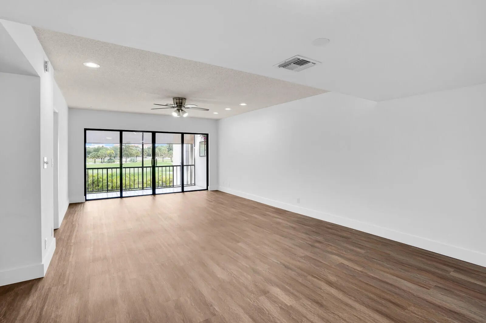 Welcome to 1701 Presidential Way, a beautifully renovated 2-bedroom, 2-bathroom condo in the highly desirable Lands of the President community in West Palm Beach. This spacious residence offers stunning golf course views from the oversized screened patio and features brand-new premium vinyl wood plank flooring, fresh interior paint, and upgraded ductwork. The open layout includes a generous primary bedroom with peaceful sunset views and a convenient in-unit washer and dryer. Recent updates include A/C in 2018 and a new roof in 2017. The well-maintained community offers a secure, gated entrance and a host of amenities, with the monthly HOA covering cable, internet, water, pest control, and access to community pools.