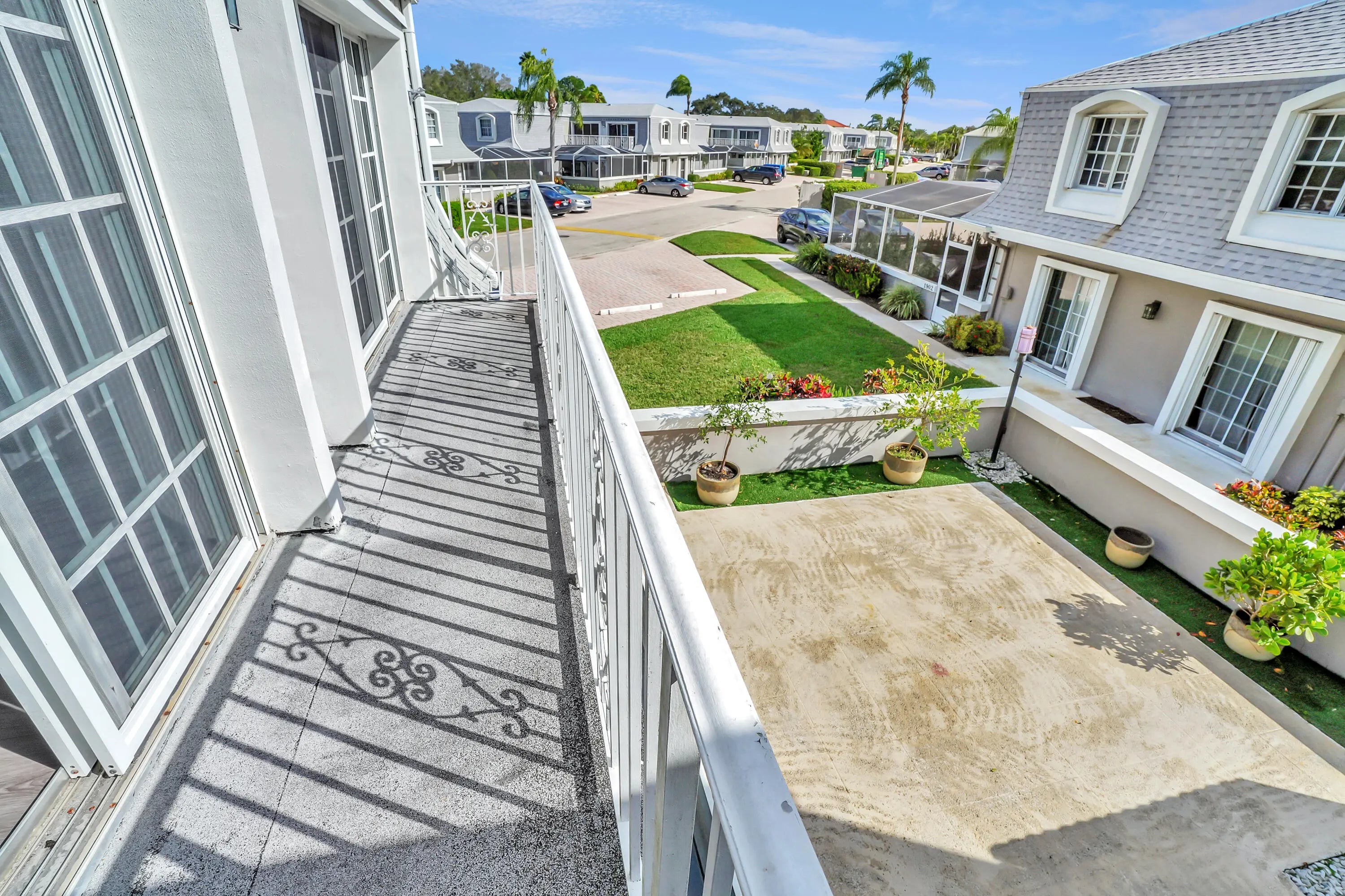 3BD/2.5BA CBS TOWHNOME in PRIME PBG locale across from Green Market & backing to golf course! This1850sf corner-unit features IMPACT Glass (2nd Flr), '22 AC & wood-look flooring thru-out. Enter via spacious patio to a sun-drenched Great Room flexible enough to host any size celebration or provide a 4th bedroom. Kitchen dazzles w/ shaker cabinets, granite tops, Whirlpool Appliance Suite & pantry. Dining flows to wet bar w/ 30-bottle cooler & half bath around the corner. Upstairs: find an updated full bath serving 2 guest rooms. Next, a HUGE Master Suite: S. facing balcony, dream custom closet & bath w/ dual vanities & glass shower, LG ThinQ Laundry & LED lights. HOA includes Cable/Int., Landscaping & Heated Pool. Hidden enclave mins to Gardens Mall/Beach/PBIA. This checks ALL the boxes!