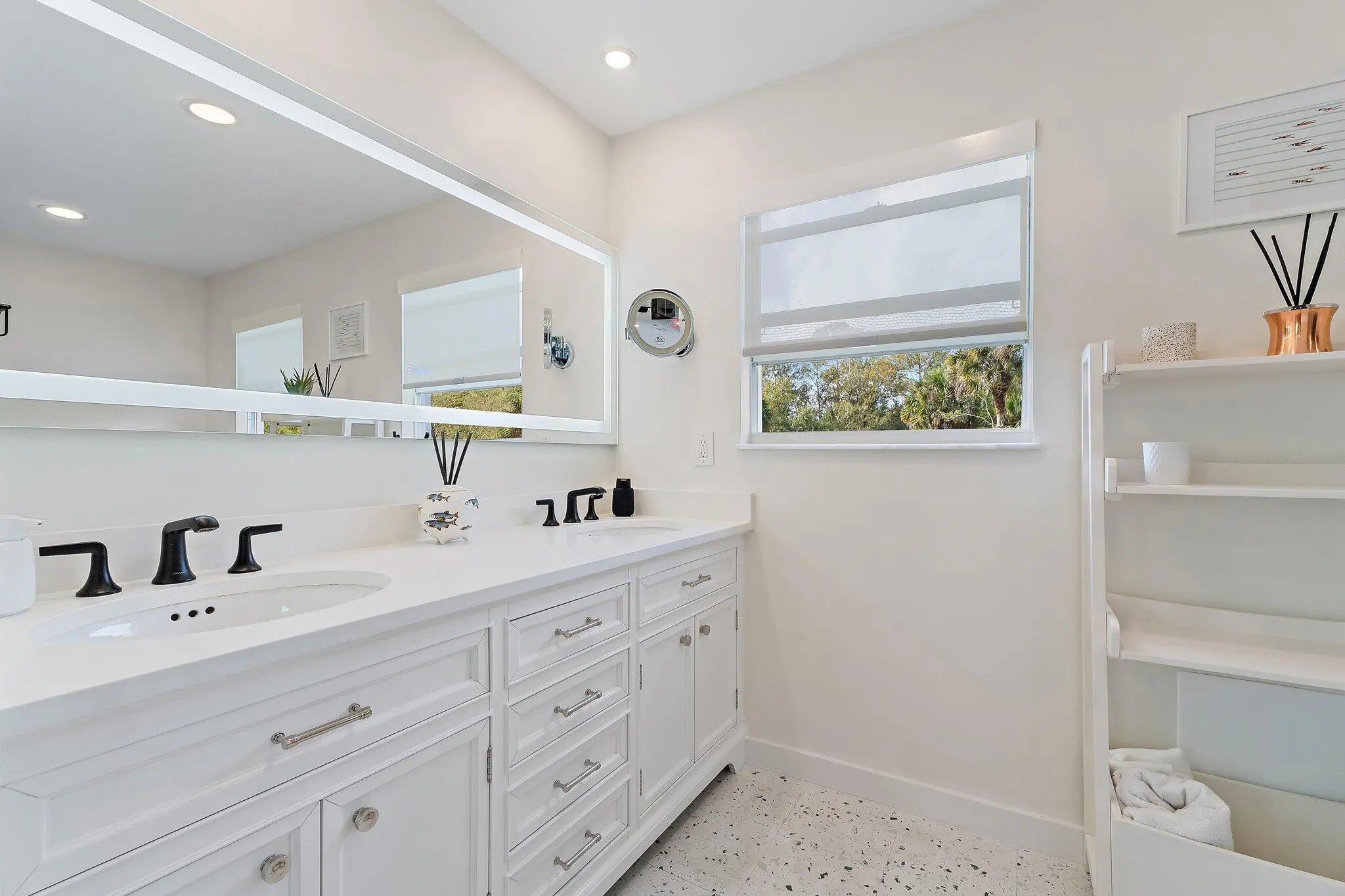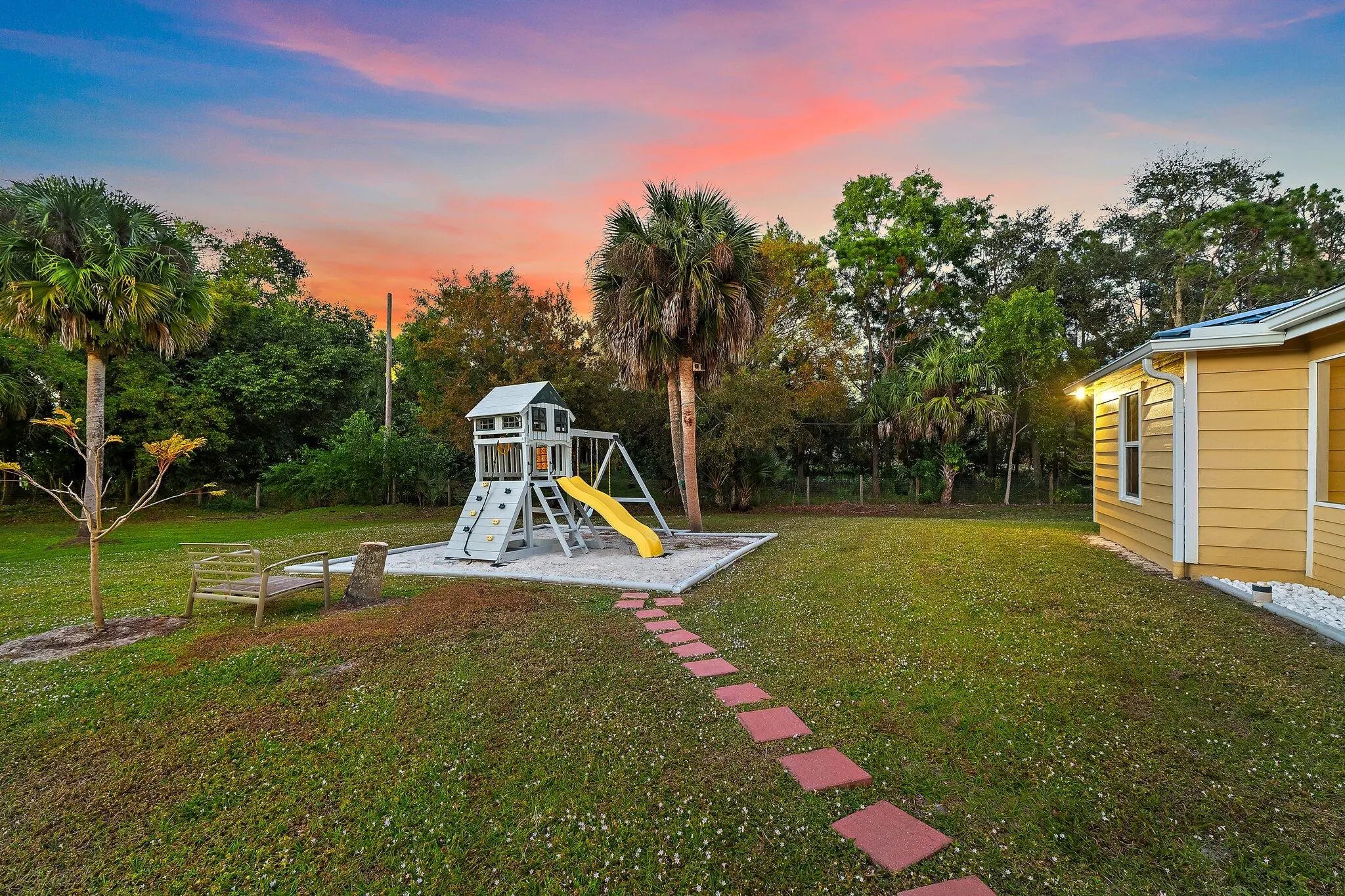 Experience the very best of Florida living in this fully remodeled estate home set on over 2.5 private, fenced acres at the end of a quiet street in Jupiter Farms. Surrounded by mature fruit trees and nature, this move in ready residence offers exceptional privacy, freedom, and room to grow with no HOA and no lakes. From peaceful mornings to starlit evenings, the expansive wraparound front porch sets the tone for relaxed luxury and country living with modern comforts.Completely renovated in 2025, this home showcases quality craftsmanship and thoughtful upgrades throughout. Highlights include a new metal roof, new gutters, hurricane impact doors and windows with UV protection, updated lighting, and new flooring throughout. The heart of the home is the brand new kitchen,