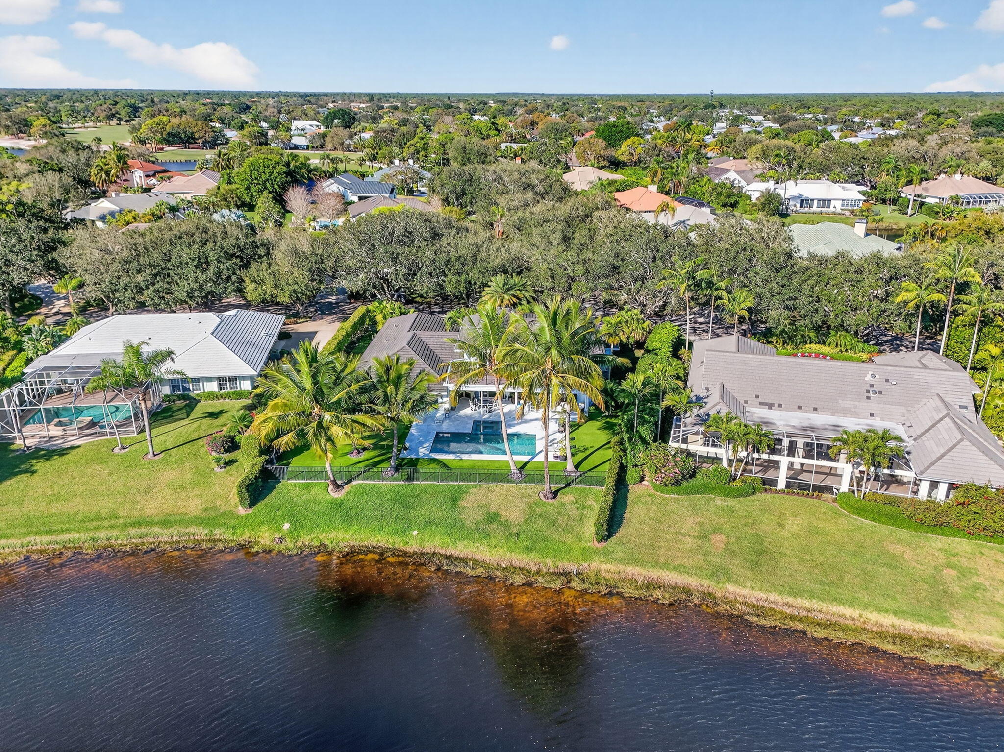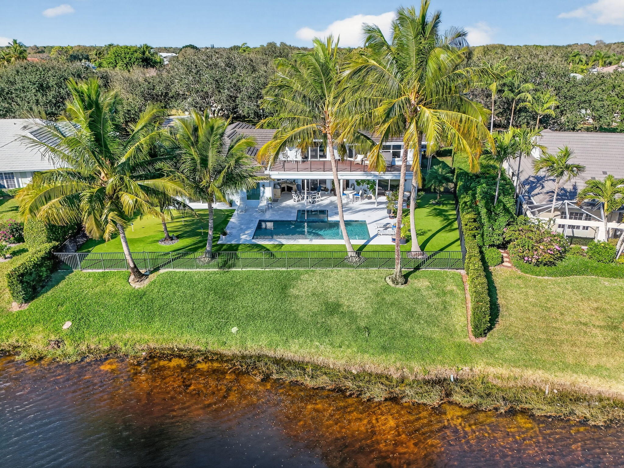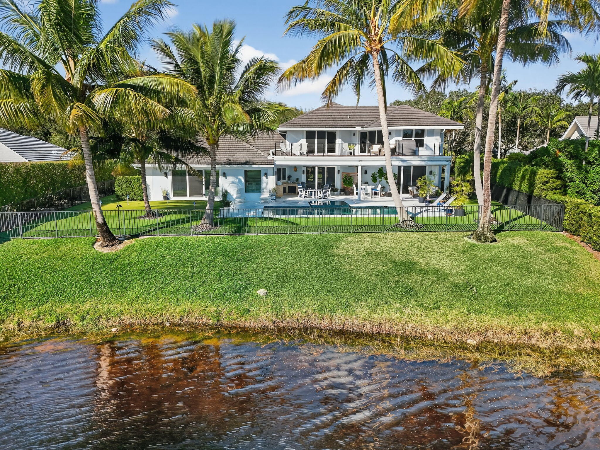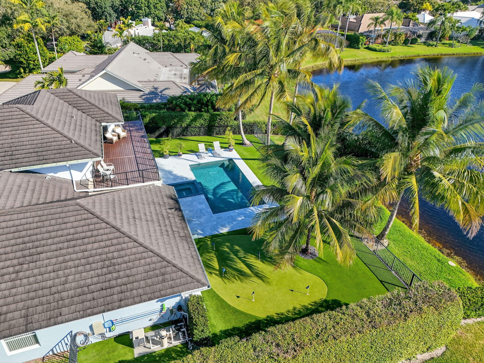 Breathtaking lakefront home in Heritage Oaks with Eastern exposure. Sanded marble pool deck and turf backyard with a putting green. Lovingly renovated by the current owners with high end finishes that include solid 8 foot interior doors, wide plank oak floors, gas appliances that include Dacor and Sub zero, Icynene insulation, 2 4-ton A/C units ( 2024 and 2020 ), RJ6 (cable TV ), Cat 6 Ethernet., and a full house 24k generator. Solid CBS construction, Impact windows and doors and retractable hurricane rated Magna Track screens ( 2025 ) give added piece of mind. 2 primary bedrooms ( one on main level and one with a massive deck). 3 garage spaces and air compressors for all of your toys. Heritage Oaks is a gate guarded community that has oak tree canopied roads and 6 tennis court