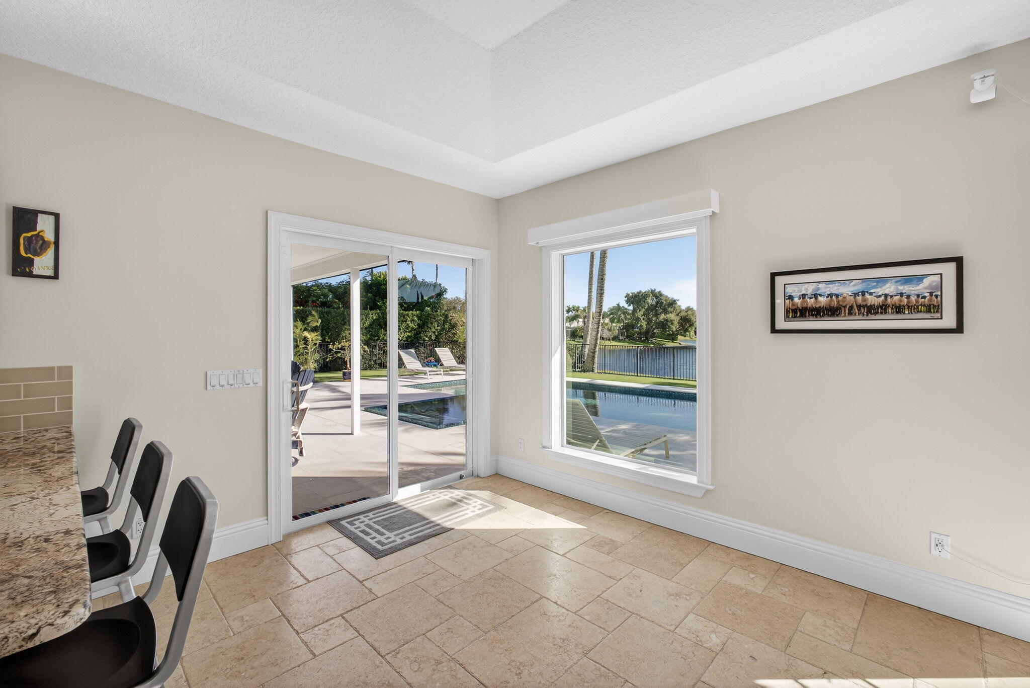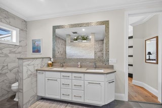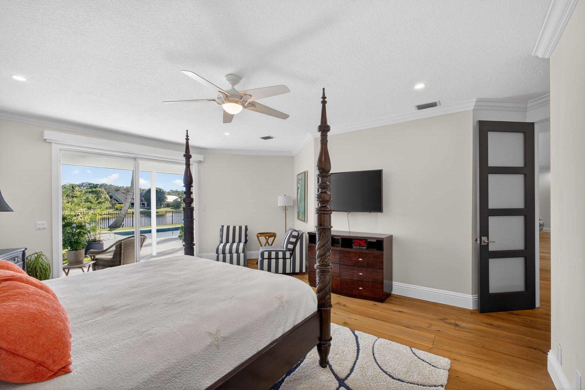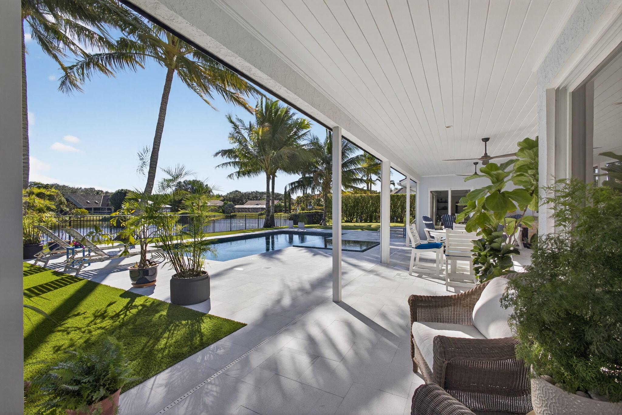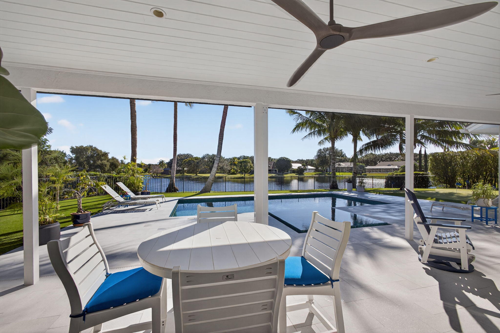 Breathtaking lakefront home in Heritage Oaks with Eastern exposure. Sanded marble pool deck and turf backyard with a putting green. Lovingly renovated by the current owners with high end finishes that include solid 8 foot interior doors, wide plank oak floors, gas appliances that include Dacor and Sub zero, Icynene insulation, 2 4-ton A/C units ( 2024 and 2020 ), RJ6 (cable TV ), Cat 6 Ethernet., and a full house 24k generator. Solid CBS construction, Impact windows and doors and retractable hurricane rated Magna Track screens ( 2025 ) give added piece of mind. 2 primary bedrooms ( one on main level and one with a massive deck). 3 garage spaces and air compressors for all of your toys. Heritage Oaks is a gate guarded community that has oak tree canopied roads and 6 tennis court