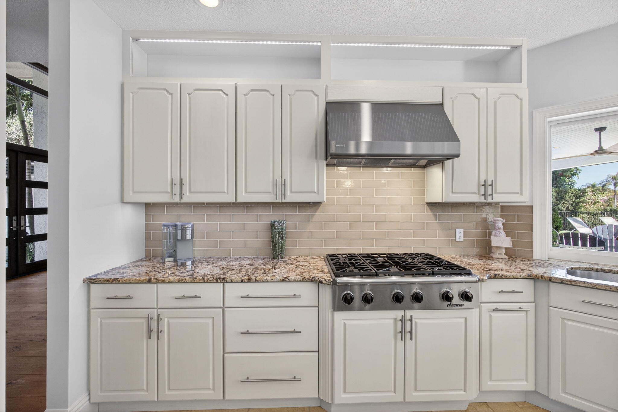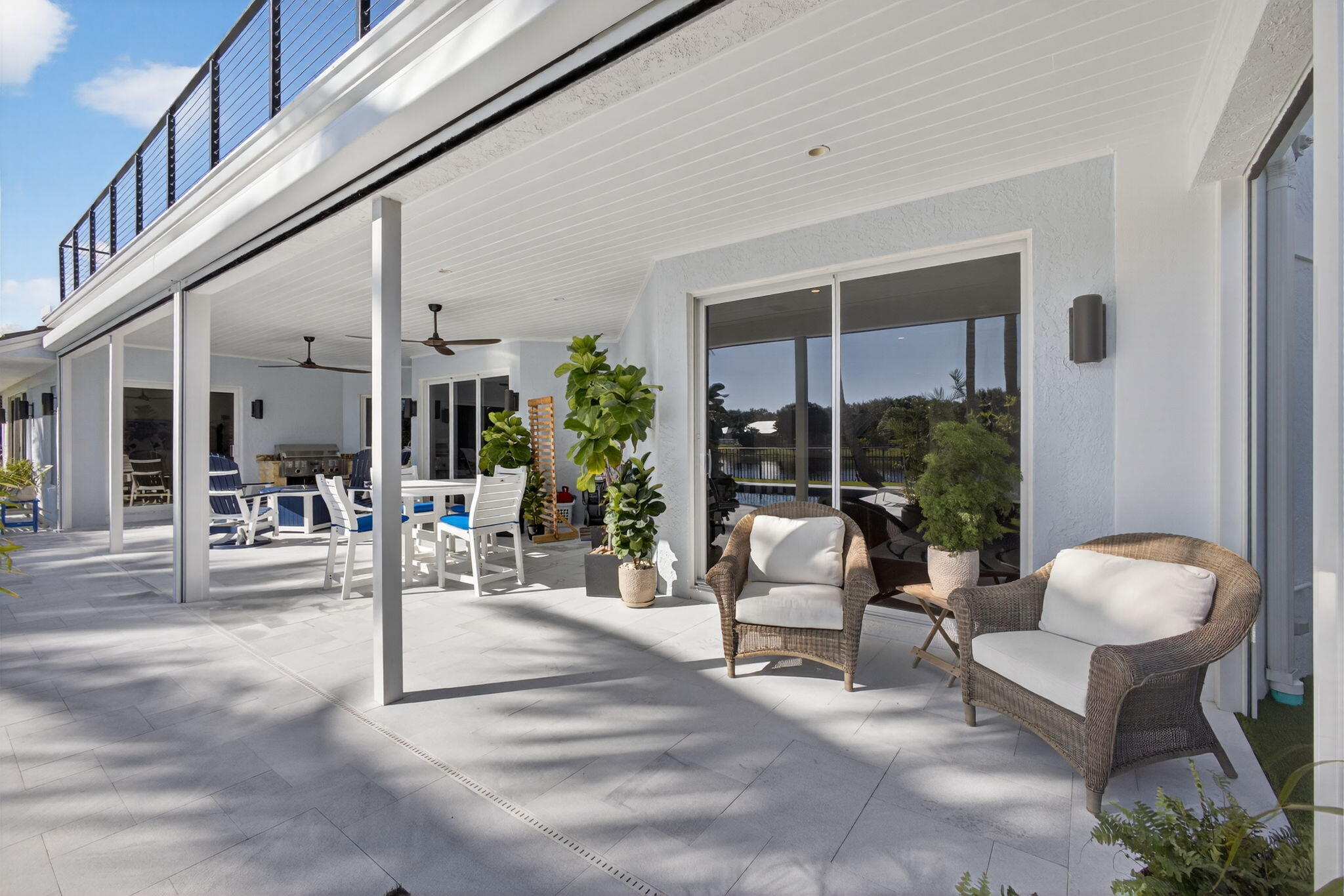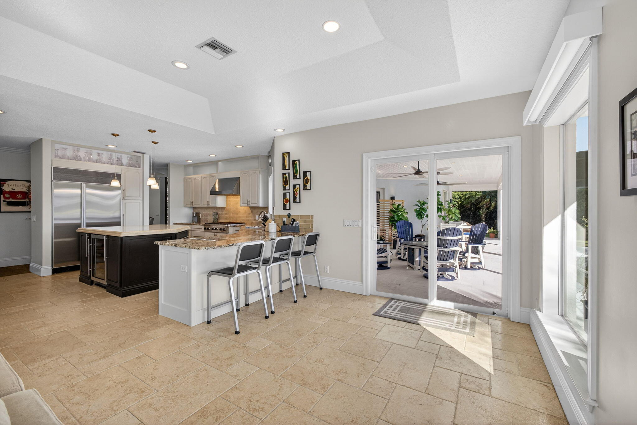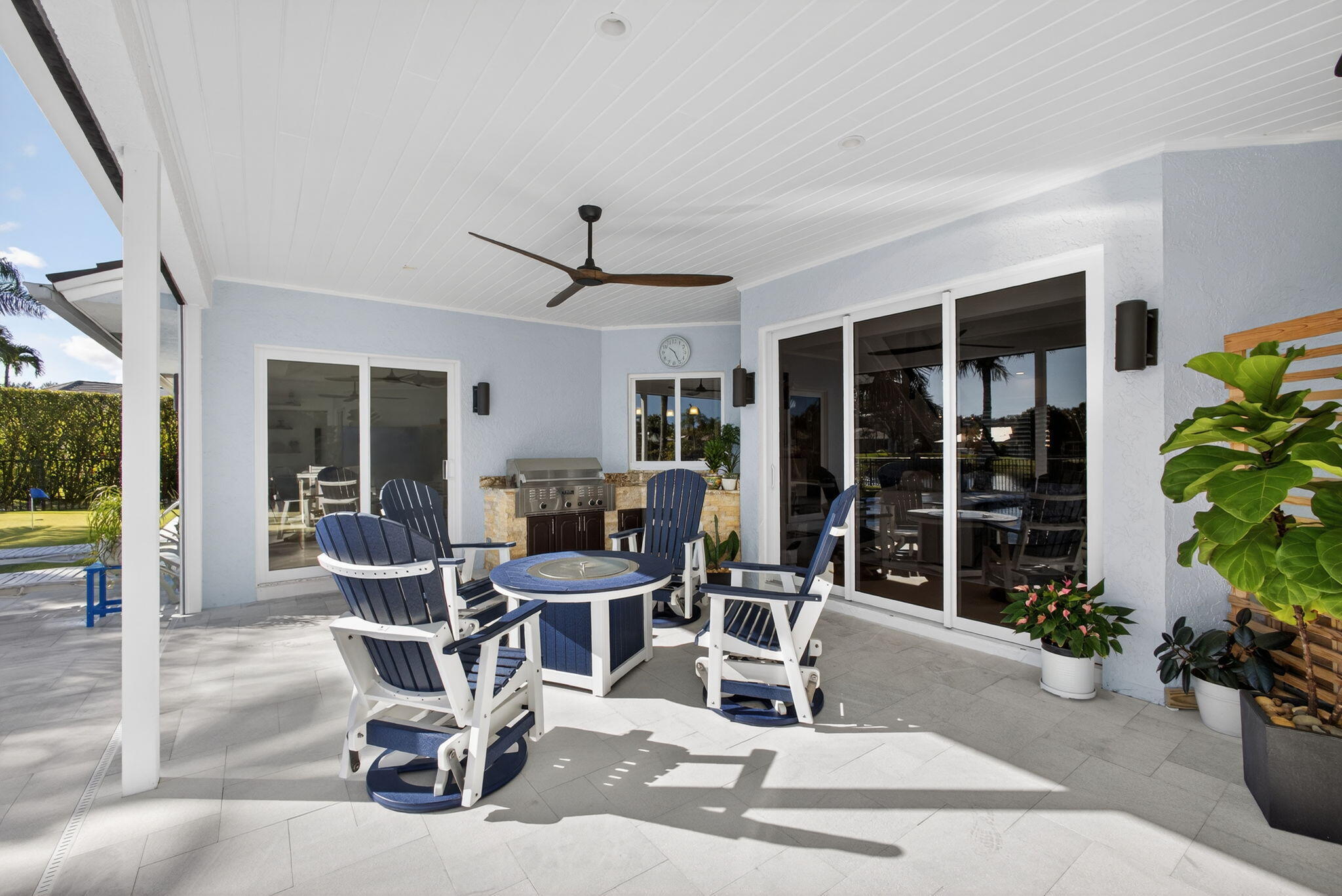 Breathtaking lakefront home in Heritage Oaks with Eastern exposure. Sanded marble pool deck and turf backyard with a putting green. Lovingly renovated by the current owners with high end finishes that include solid 8 foot interior doors, wide plank oak floors, gas appliances that include Dacor and Sub zero, Icynene insulation, 2 4-ton A/C units ( 2024 and 2020 ), RJ6 (cable TV ), Cat 6 Ethernet., and a full house 24k generator. Solid CBS construction, Impact windows and doors and retractable hurricane rated Magna Track screens ( 2025 ) give added piece of mind. 2 primary bedrooms ( one on main level and one with a massive deck). 3 garage spaces and air compressors for all of your toys. Heritage Oaks is a gate guarded community that has oak tree canopied roads and 6 tennis court