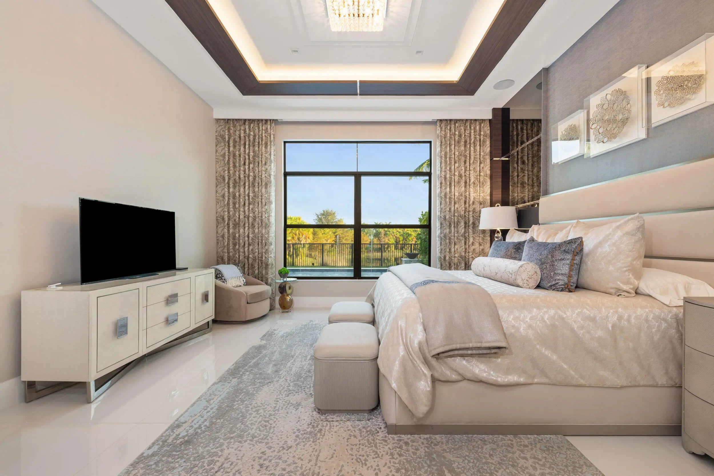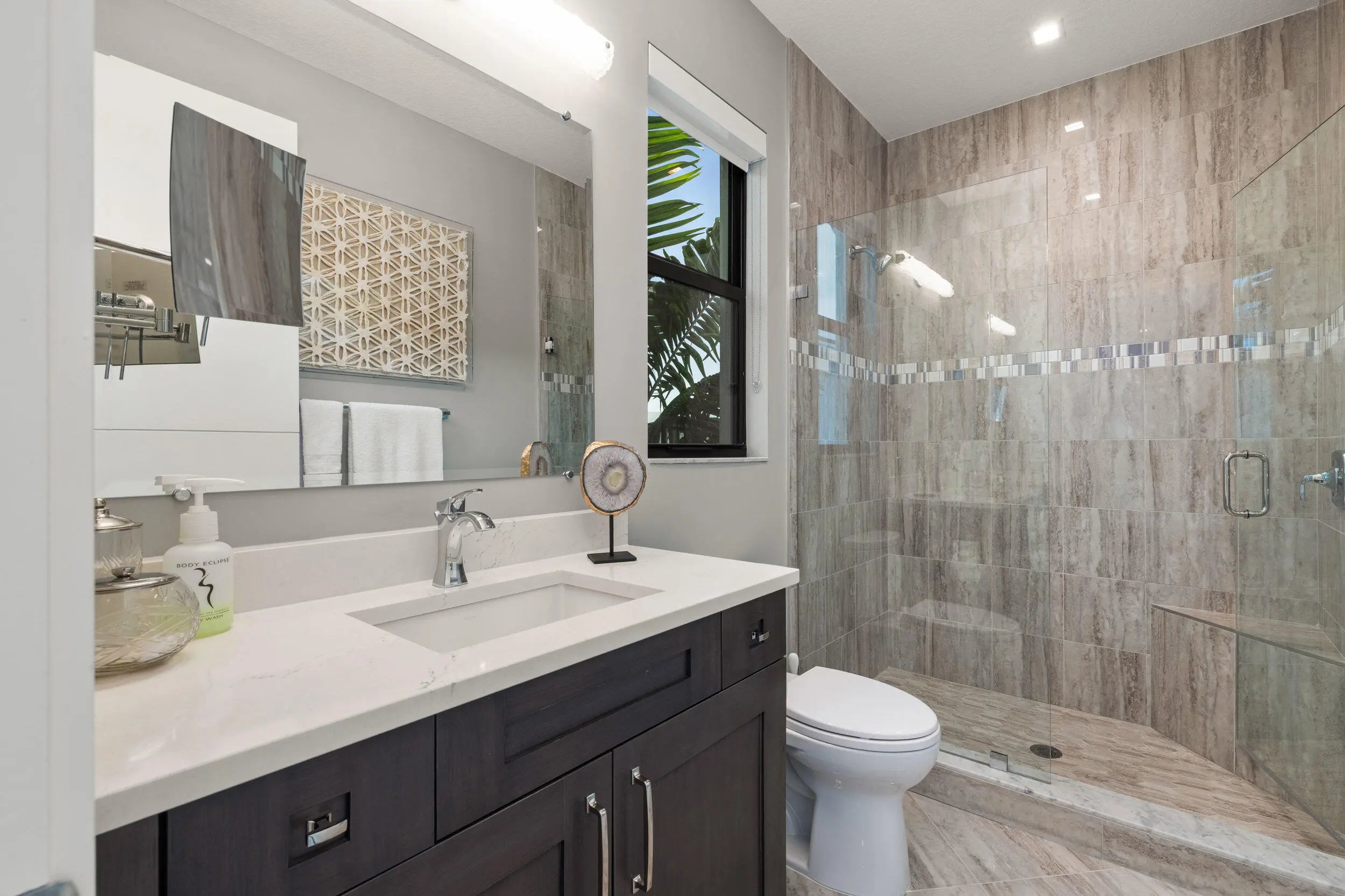 Stunning modern waterfront residence in Palm Beach Gardens offering 4 bedroom and 4 1/2 baths, fully furnished and impeccably decorated. Designed for effortless luxury living, this home features a resort-style pool and spa, expansive outdoor entertaining with a built-in bbq, and serene water views. Equipped with state-of-the-art technology including Lutron lighting, mutltiple TVs, expansive family/game room upstairs and smart home automation throughout. Clean architectural lines, upscale finishes, and turnkey convenience combine to create a rare opportunity for sophisticated Florida living.