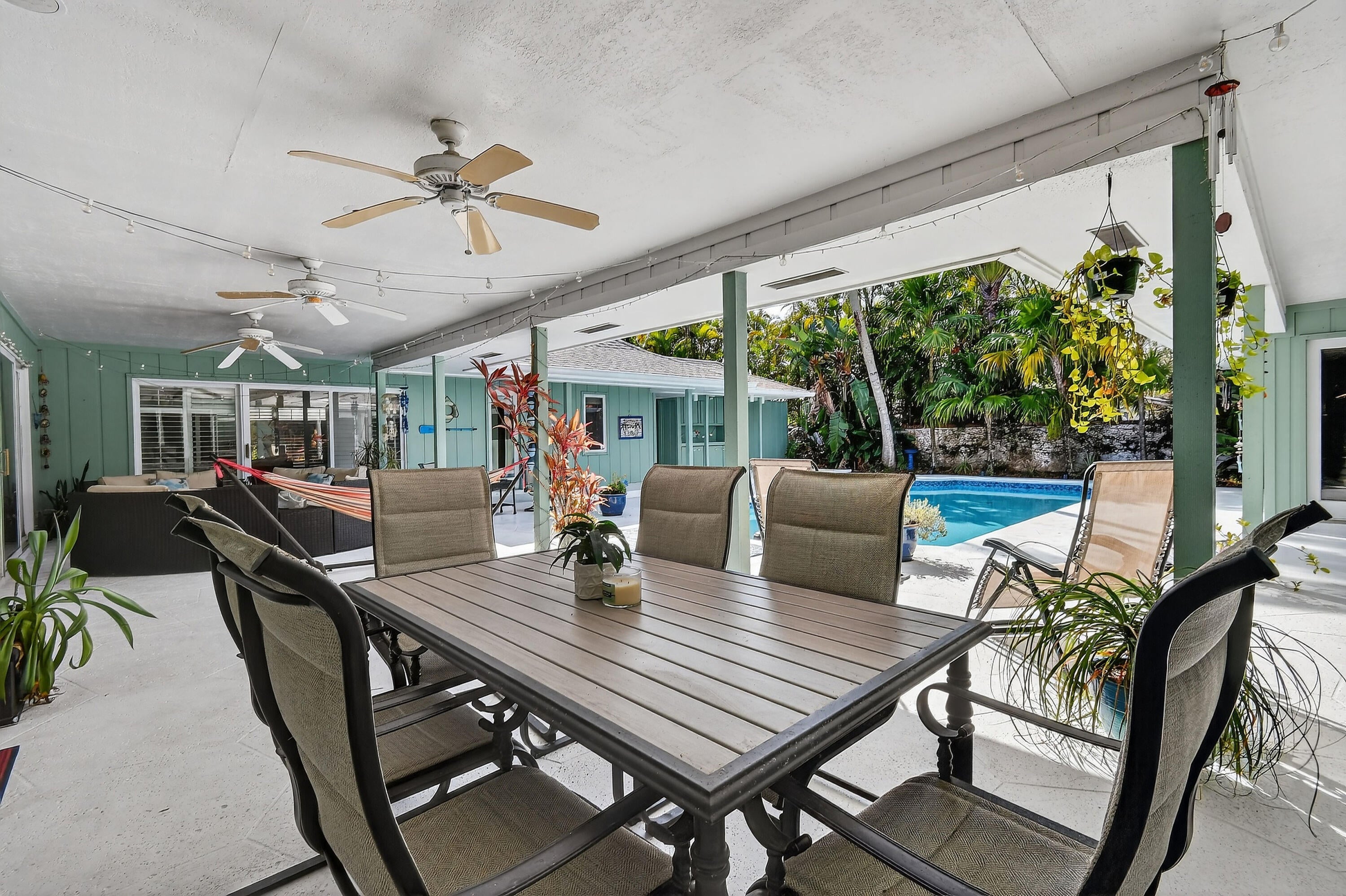 Nestled on an over-sized corner lot in the exclusive Tequesta Country Club Community, this custom built home boasts over 3,700 square feet of living space. Views of an expansive saltwater pool and covered patio are available from throughout the interior of the home. Lush palms create a private backyard oasis that invites poolside tranquility or year-round entertaining. The home also boasts a 56' long garage, perfect for your boat, RV, cars or any other toys that your lifestyle requires. The home's interior is bathed in an abundance of natural light. The open concept kitchen features a spacious center island with an extra sink and ample counter space. Other features include; a master suite with separate his and hers bathrooms, a family room with a wood-burning fireplace, built-in shelvesand wet bar, and a generous sized living room with a volume tray ceiling. The home is located just a short distance from Tequesta Country Club's two riverfront parks and the community's boat ramp and day dock. All are situated along the 'Wild & Scenic' designated Loxahatchee River. Water enthusiasts will not be disappointed, while the golfer in the family has unlimited opportunities in the region. Tequesta Country Club Community residents are also offered a wealth of dining, shopping and beach options in the area.