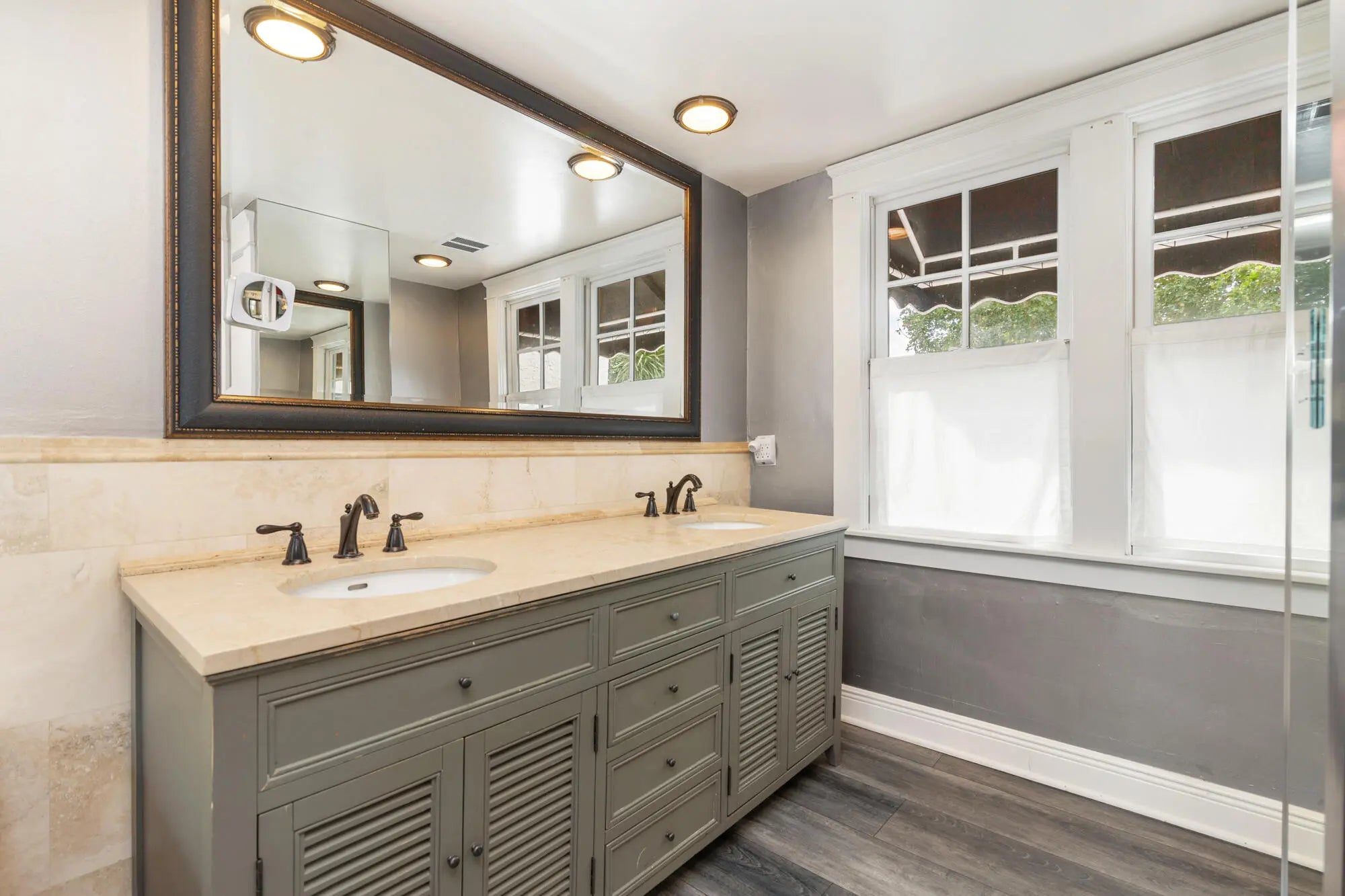 Two-story recently renovated Spanish style 2BR/2.5BTH* home on the coveted Hill Block of Historic Flamingo Park. All impact windows and refinished Miami Dade pine floors throughout. The exterior was just painted (white) and awnings replaced (black). Pecky Cypress front door opens to a large, light-filled living room with coved ceilings and working fireplace. Double archway to Florida room with cypress ceiling and three window walls. A cypress-beamed ceiling in the study* that can convert to a third bedroom, galley kitchen with granite countertops, plenty of cabinet space and gas range. Plus, a large laundry room that could convert to a breakfast room. Upstairs the primary bedroom has an ensuite bath with dual vanities, spa tub and separate shower with extensive Travertine.
