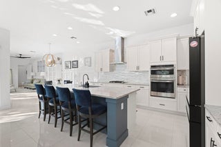 Just under 4,000 square feet of beautifully designed living space in this light-filled Alton residence, ideally positioned overlooking peaceful green space with front balconies on both levels. Thoughtful design details throughout include elegant wainscoting and stylish wallpaper accent walls, adding warmth and character. The open-concept 1st floor is bright and well-designed, with easy flow between the living room, kitchen and sunroom --all opening to a private, landscaped backyard with turf patio, perfect for entertaining and outdoor living, with outdoor powder room. The chef's kitchen has a large island and tasteful backsplash, offering style and functionality. A 1st floor bedroom provides flexibility for guests or home office. Upstairs are 3 bedrooms, including the spacious primarysuite with large closet and bathroom, along with a conveniently located laundry room. Tile flooring runs throughout the main level, with carpet upstairs. Modern efficiencies include a tankless water heater and dual-zone air conditioning for comfort and energy efficiency. A fully finished 3-car garage is topped by a private casita with a full bathroomideal for guests, a gym, studio or work-from-home space. Located in the highly sought-after Alton community, residents enjoy a resort-style clubhouse with pool and cabanas, fitness center, club room, basketball, tennis, and pickleball courts, all just minutes from Alton Town Center's shops and dining. This home offers the perfect blend of space, privacy, flexibility, and lifestyle.