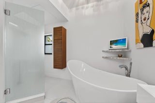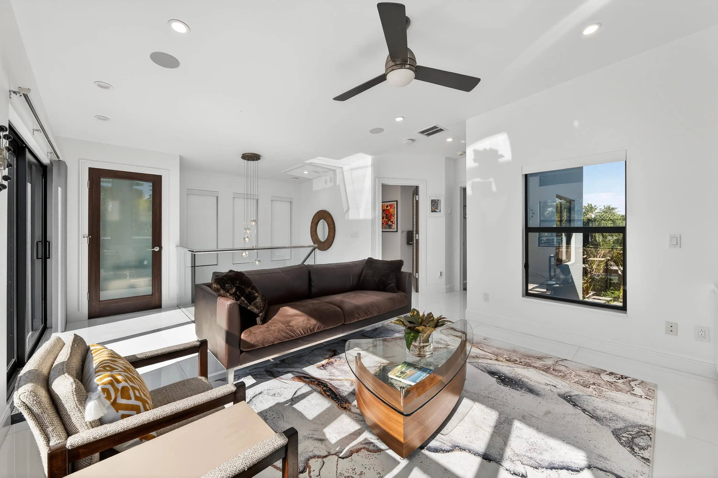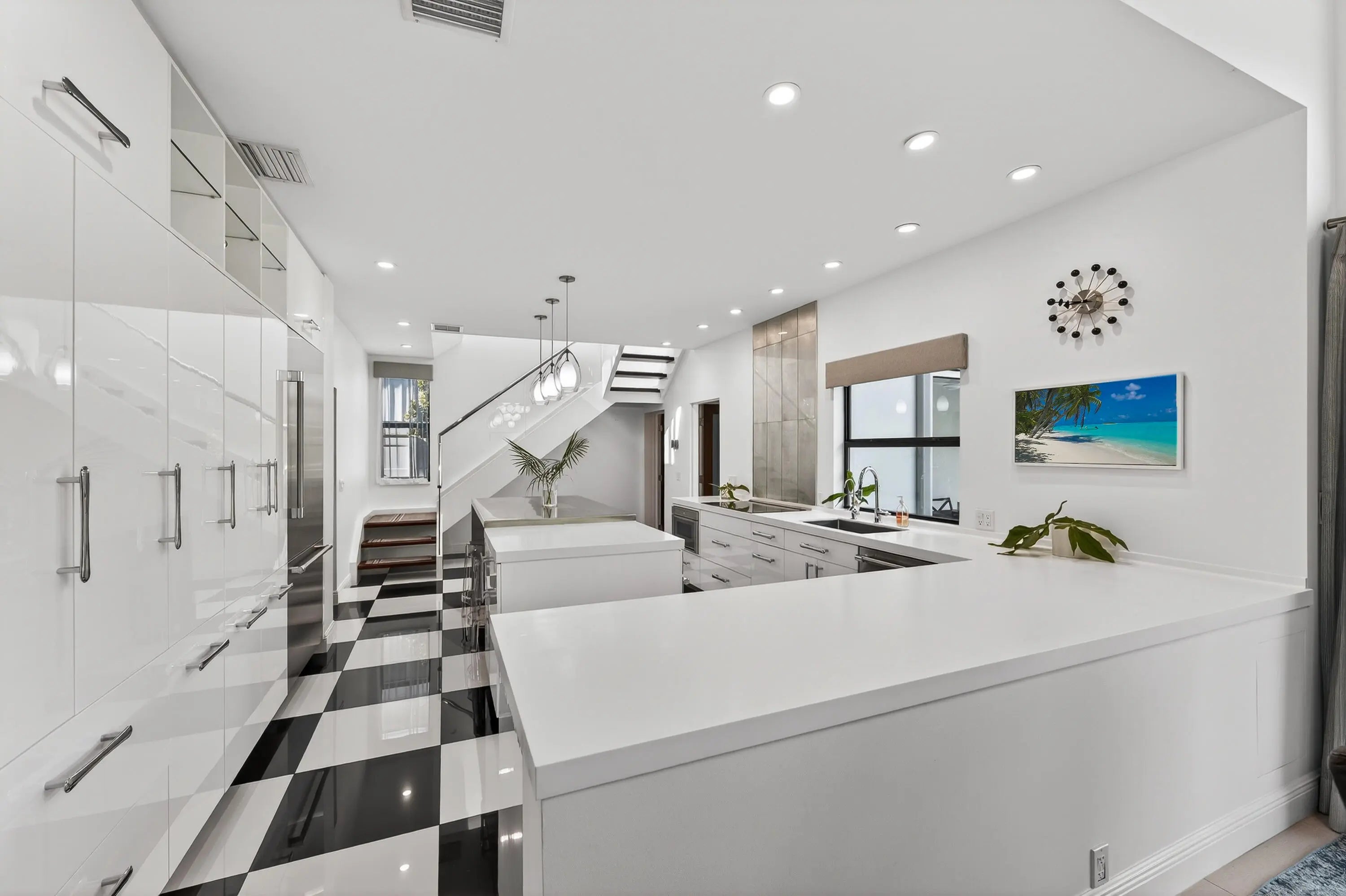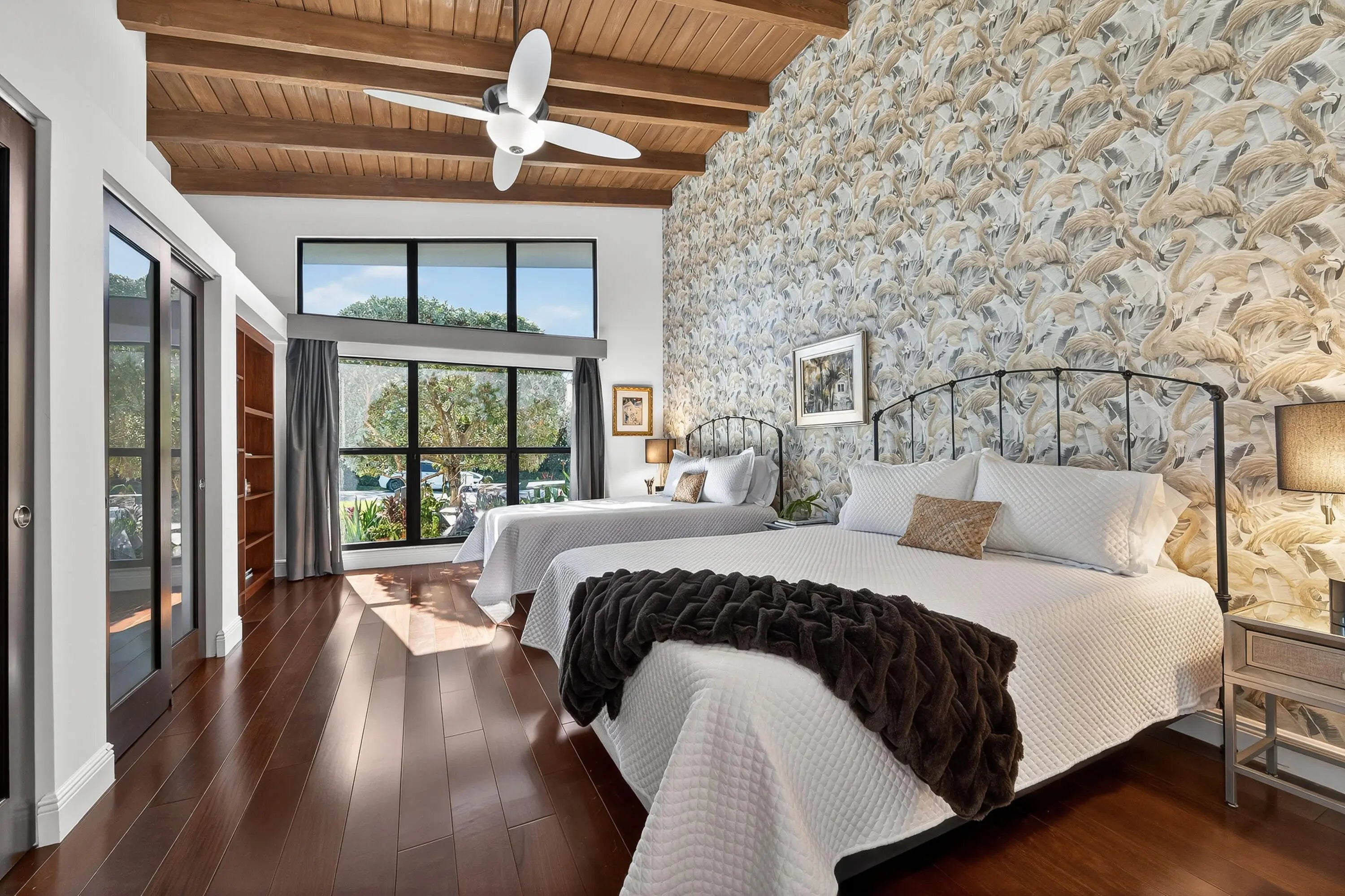 Located in the exclusive seaside community of Jupiter Inlet Colony, this rare midcentury modern home sits on a desirable interior corner lot at the southern tip of Jupiter Island, offering beautiful views of both the Atlantic Ocean and the Jupiter Inlet. Just steps from the community beach access and across from the private beach club, the setting delivers an effortless coastal lifestyle with exceptional privacy and security.The furnished three-bedroom, three-bath residence has been thoughtfully remodeled and meticulously maintained. Interior highlights include volume ceilings with exposed beams, impact windows and doors, custom lighting, Brazilian walnut and porcelain floors, and a modern kitchen equipped with Thermador appliances. The spacious primary suite features a large bedroom