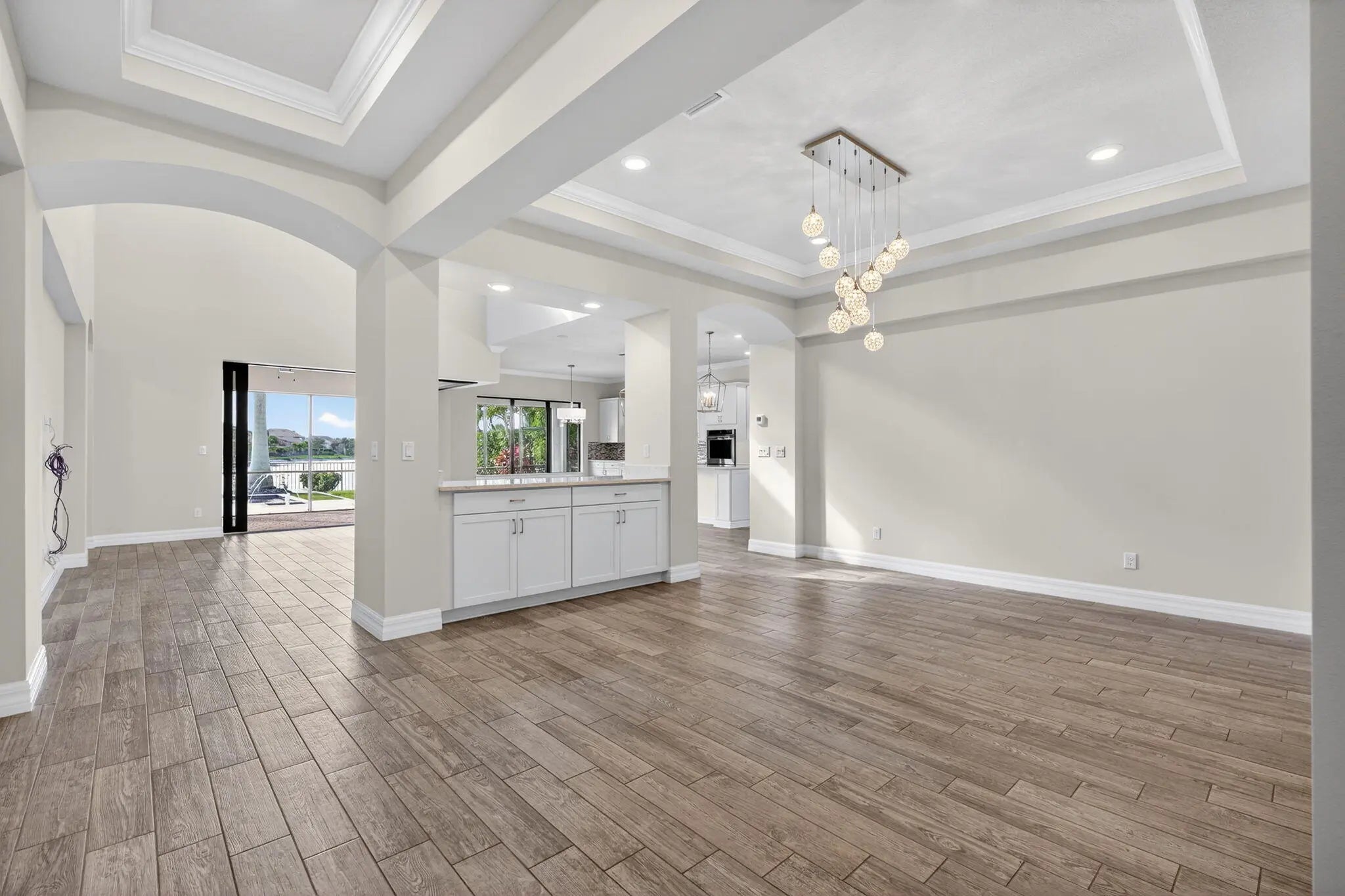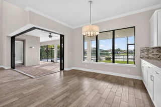 Experience true Jupiter living with beautiful lake views in this gorgeous upgraded 5-bedroom, 5.5-bath residence set on a premium long-lake lot within one of the area's most desirable gated communities. Designed for relaxed coastal living and year-round entertaining, this home captures the best of Florida lifestyle with serene water views, premium outdoor amenities, and thoughtful custom enhancements throughout.Step inside to find a bright, open floor plan with impact pocketing sliders that blend indoor and outdoor spaces seamlessly. The gourmet kitchen features extended cabinetry, upgraded quartz countertops, a designer backsplash, natural gas range, and a spacious eat-in dining area connected to the formal dining room. A flexible office space completes the main level.