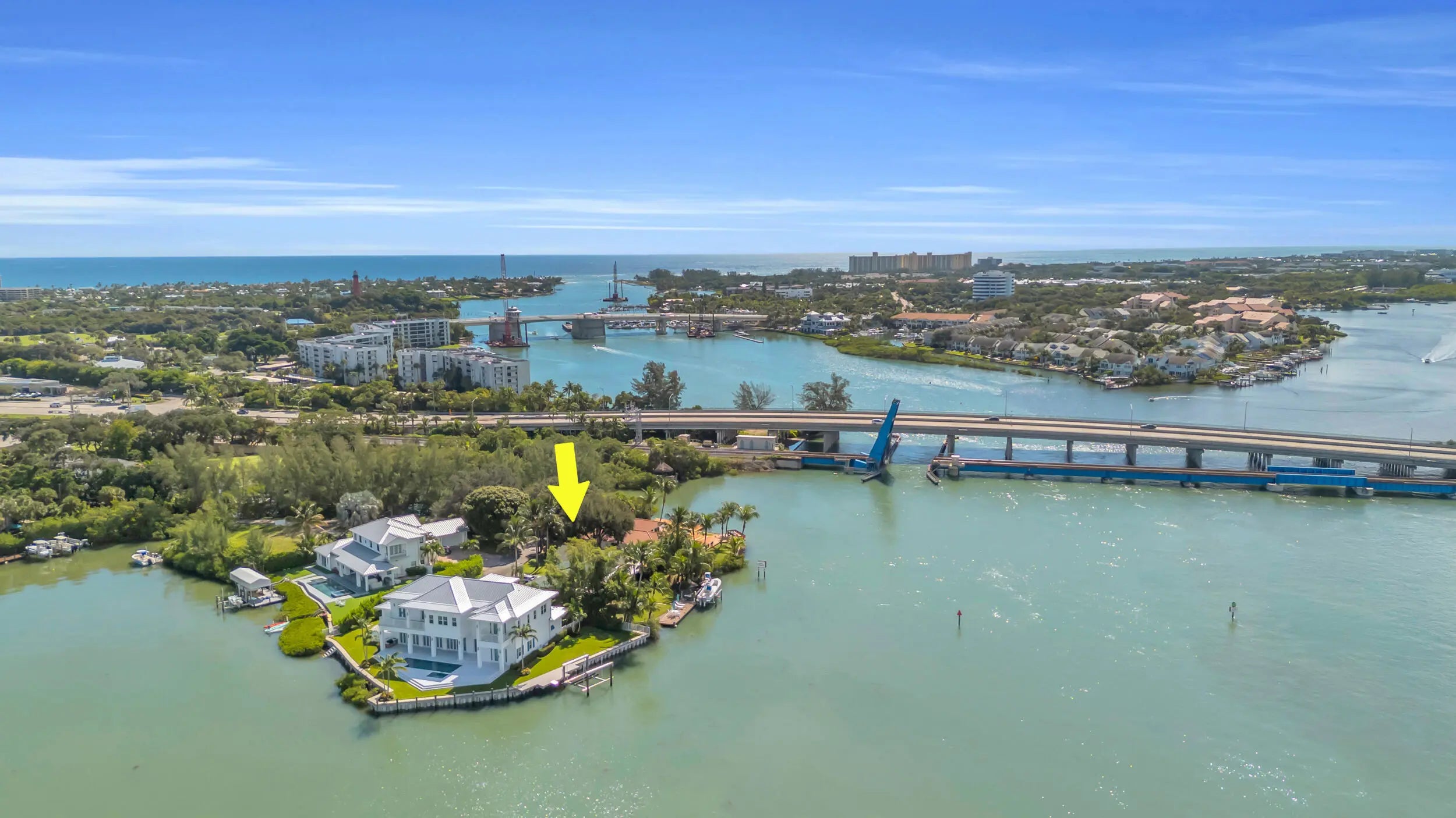 Big Water Hidden Paradise! ~115' of Riverfront tucked away just south off Riverside. Old Florida Entrance to (4) residences located on the point of Peninsular. This home is move in ready. Take your time and decide what renovations or new floor plan takes best advantage of panoramic river views. Built in 1976, this home's interior is charming. En Suite Bedroom on main floor. Primary Suite on 2nd floor with 3rd bedroom. 2 Car Garage has a FULL BATH and Kitchenette in case you need a guest quarters. Tropical Yard w/Multiple Palm Trees. Roof 2003 Comp Shingle. Dock is 2008 with lift holding a 35' Contender. Seawall w/ Cap