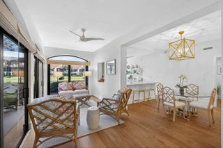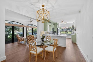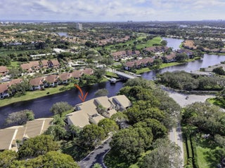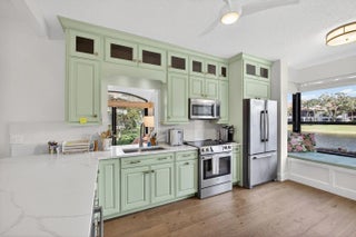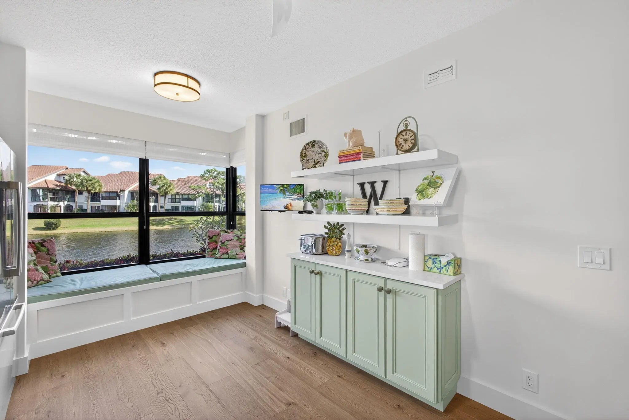 Welcome to Jonathan's Landing, where this stunning lakefront condo is ideally located in the highly sought-after West Bay community. Rarely available, this **first-floor two-bedroom residence with a den--easily converted to a third bedroom--**offers breathtaking lake views and effortless one-level living.This beautifully appointed home features two bedrooms, a den, and two full baths, with hardwood floors throughout and a freshly painted interior. The renovated kitchen is a standout, complete with elegant finishes and a custom-built window seat overlooking serene lake views.Tastefully decorated with refined details, the den provides flexible use as a third bedroom, home office, or bonus room. Additional upgrades include complete impact windows and a new AC unit. (SEE MORE)
