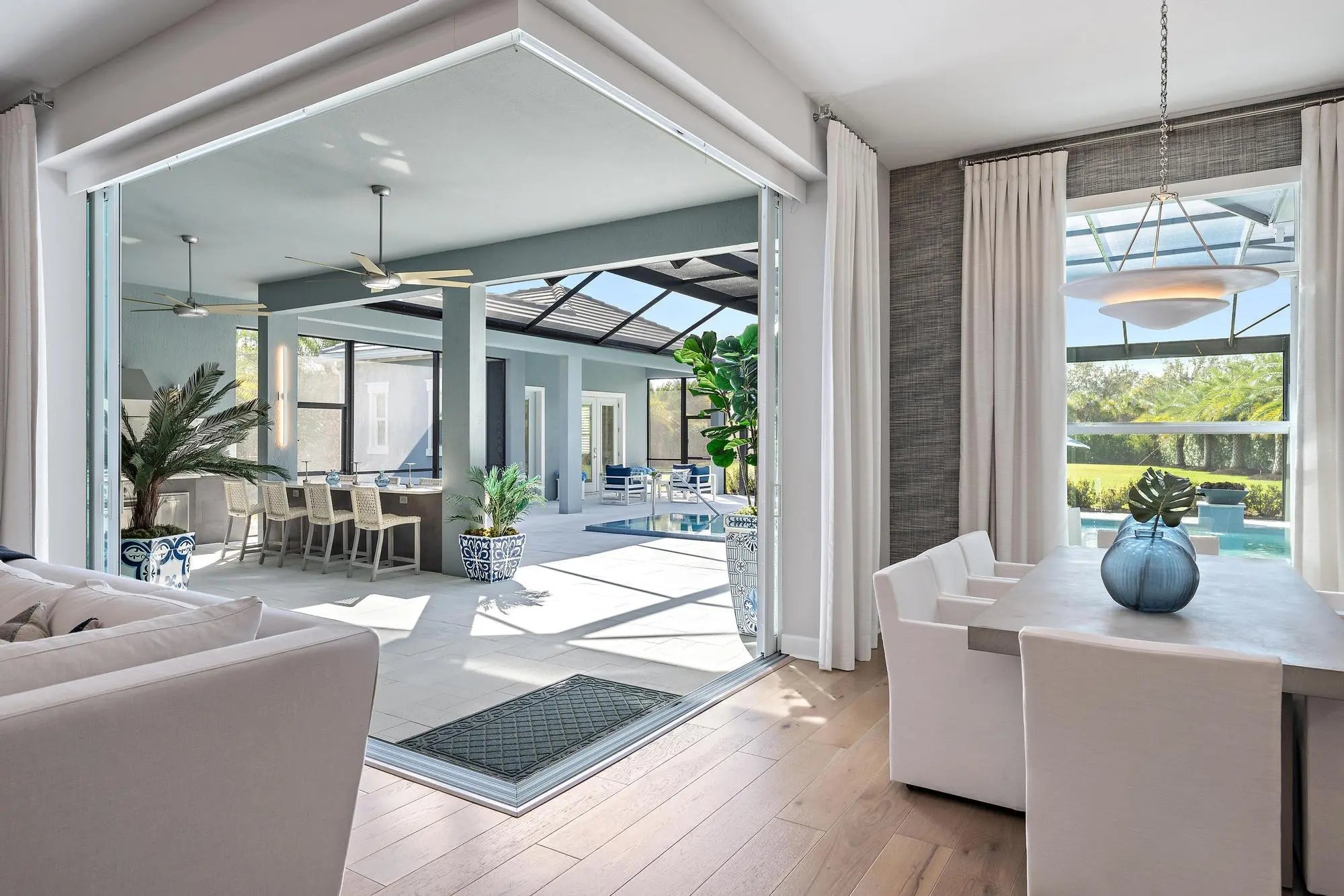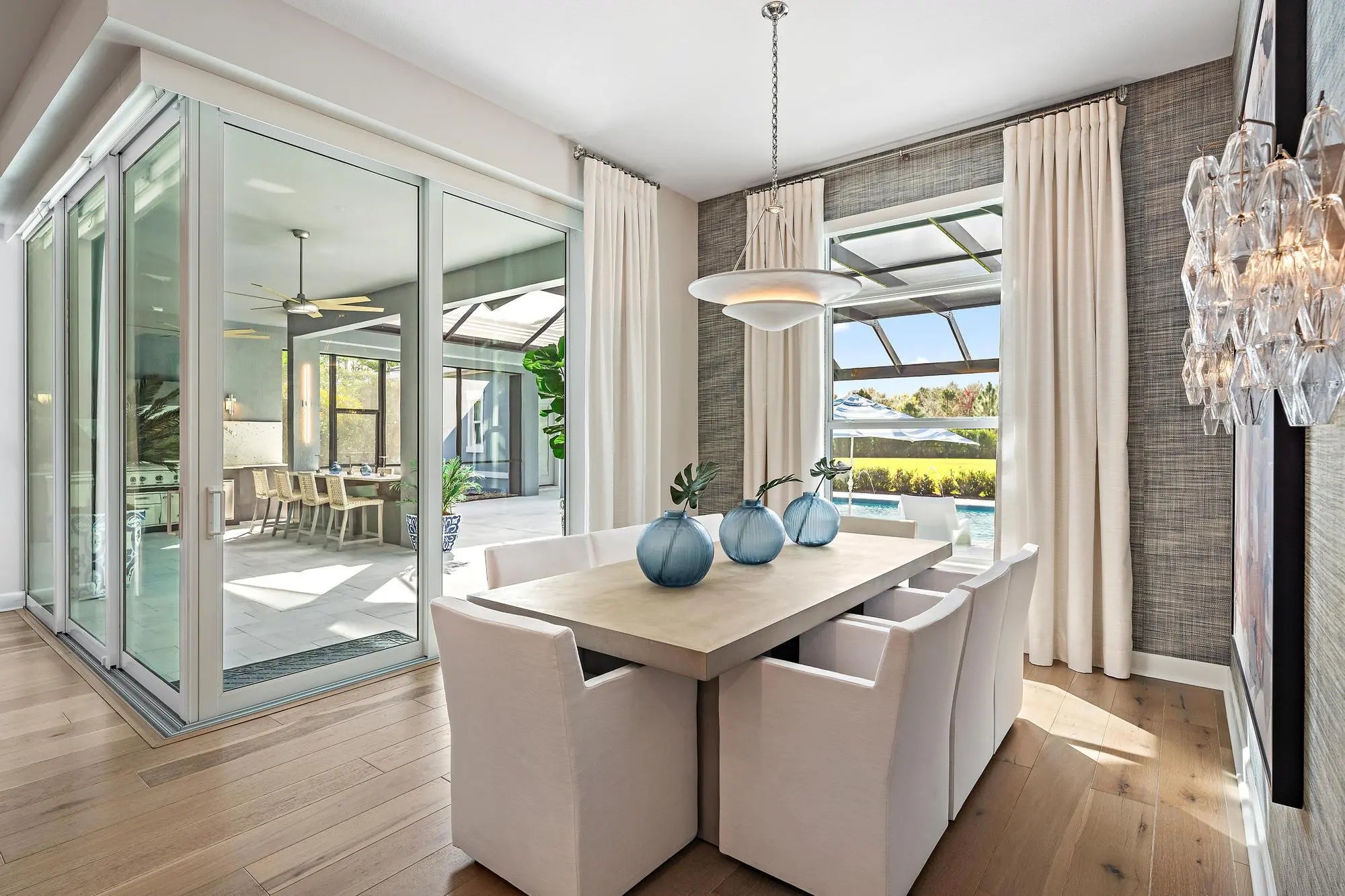 Look no further for your custom designed and professionally decorated home with a separate guest house/casita sitting on 0.95 acres. This late 2022 build is offered fully furnished with Restoration Hardware furniture. Main house is 4 bedrooms, 3 baths plus an office and an air conditioned 3-car garage with epoxy floor and an EV charger. Separate guest house/casita offers total privacy with its own bathroom and walk- in closet. Enjoy indoor/outdoor living and seamless outdoor entertaining with the great room's zero-edge sliding glass door opening to the designer summer kitchen with a custom 8 seat island for dining, salt water pool and spa with fire bowls, lanai and fully-fenced in backyard with built-in fence screens.