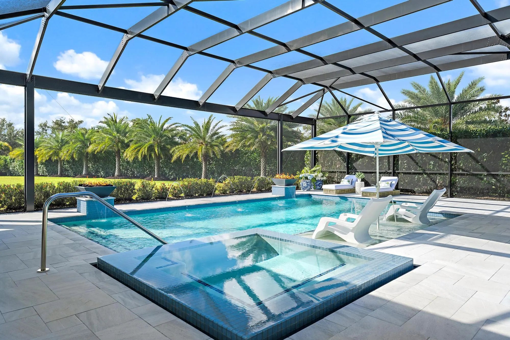 Gunite, Inground, Salt Chlorination, Screened, Spa