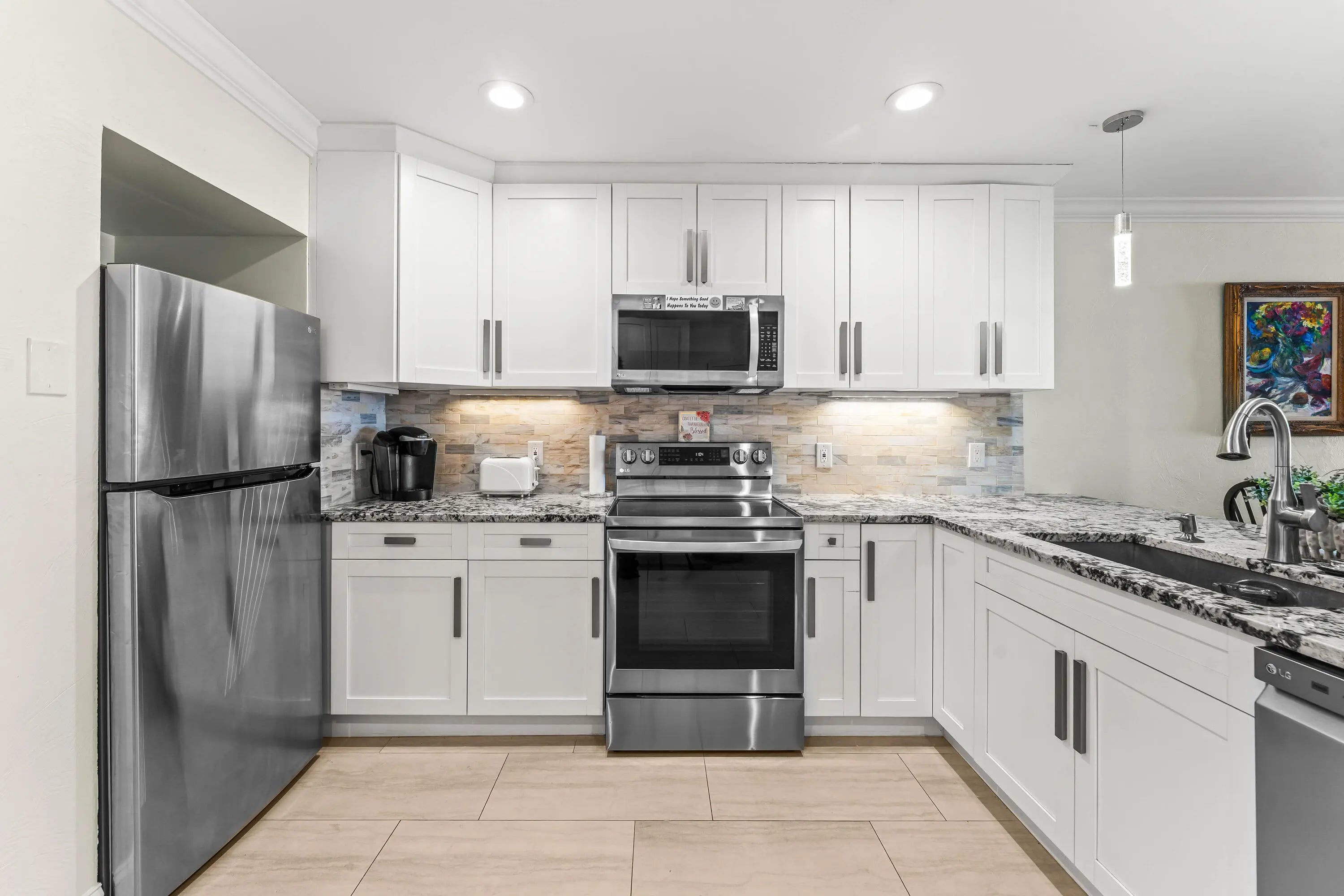 Fantastic 3/2 CBS townhome in Palm Beach Gardens with no HOA! Totally redone, from floor to ceiling. New roof 2025, new AC 2025, tankless water heater, new appliances, new ceiling fans, new high-hat lighting, impact windows and doors, new spray insulation, new screening in large, screened room, artificial turf in back yard. Huge parking area. Centrally located and close to everything! Did I mention no HOA?