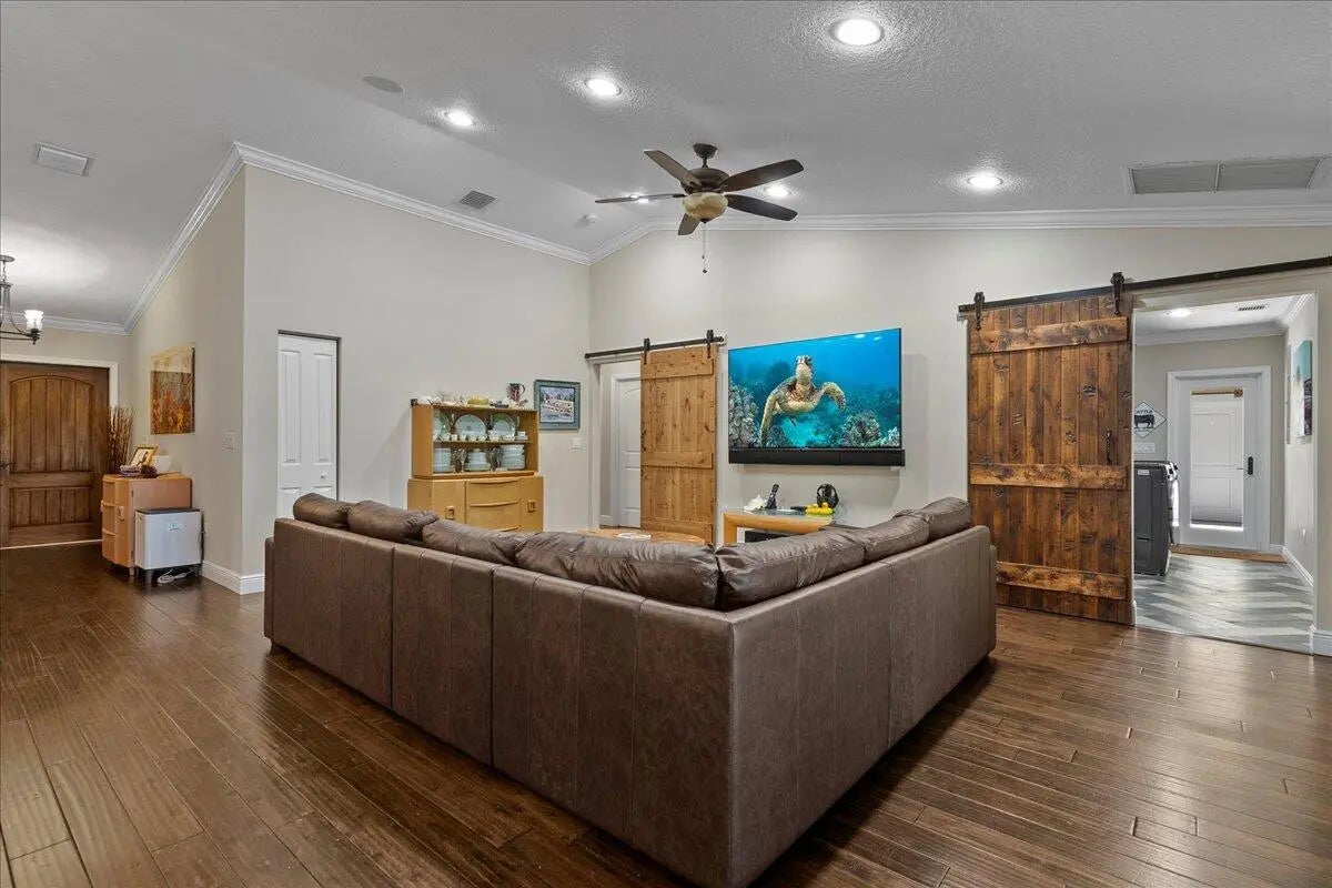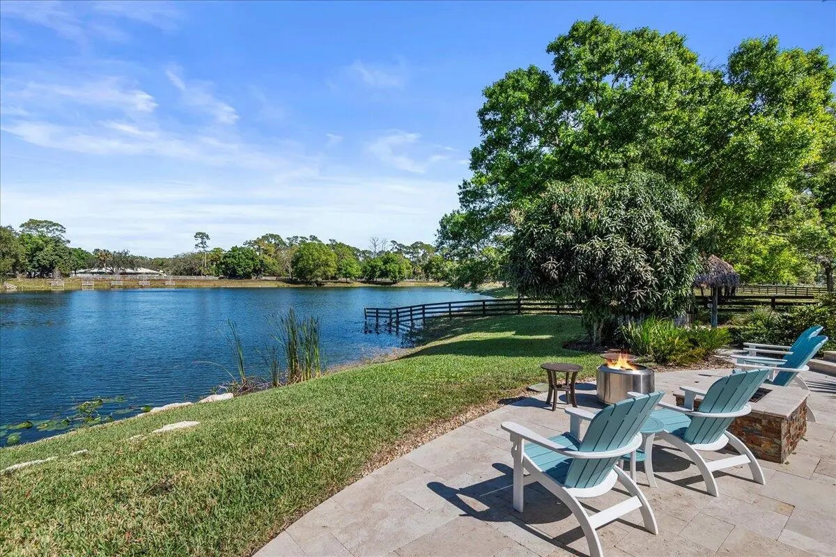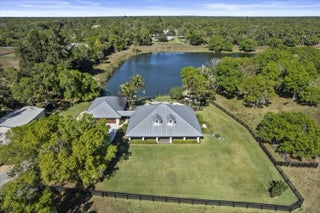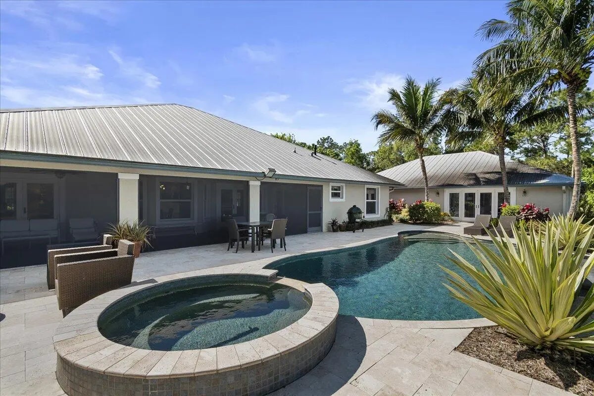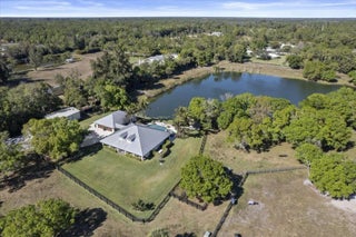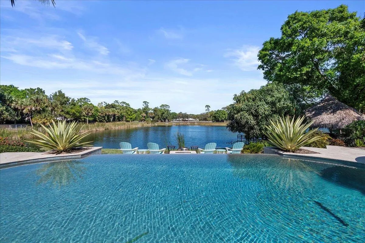 A rare 12-acre private estate offering exceptional luxury and tranquility just minutes from Jupiter's beaches. The custom residence features 5 bedrooms plus office and 3 full baths, overlooking a serene spring-fed lake and resort-style infinity pool. A separate 1BR/1BA guest house provides ideal accommodations. Complete impact glass, underground FPL electric, full-house generator (excluding shop), whole house water filtration system, upgraded electrical throughout, septic and well. Entertain in style with a tiki bar and summer kitchen. A climate-controlled shop with hot/cold water accommodates up to 10 vehicles, plus additional parking. New fencing and landscaping, gated entry, upgraded irrigation from pond water. A truly one-of-a-kind Jupiter estate!
